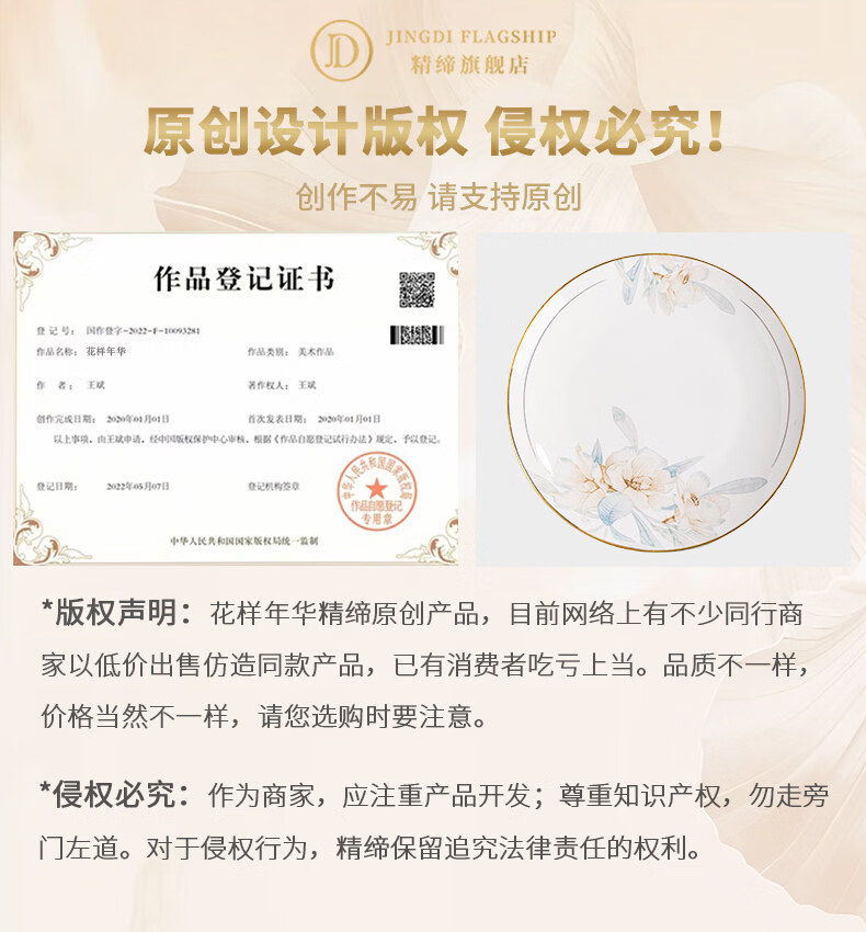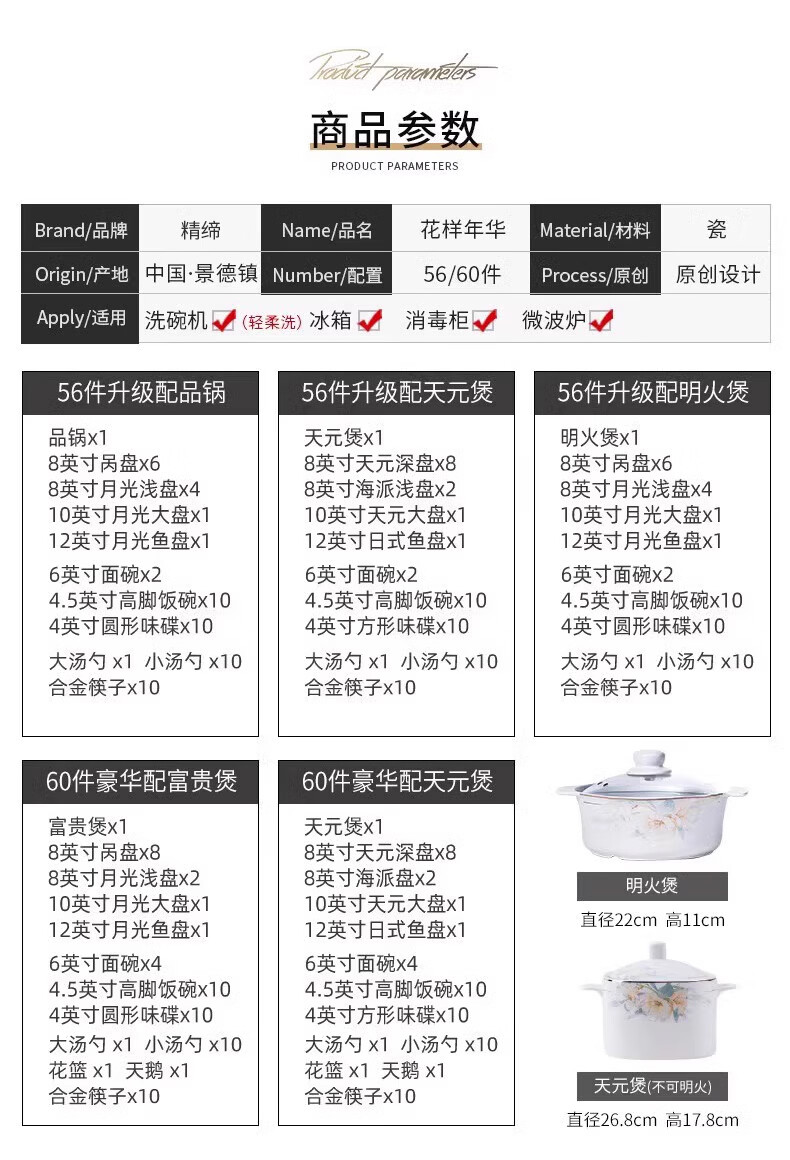 精缔陶瓷JINGDI碗家用2026新款景德镇轻奢高温碗盘陶瓷餐具套装乔迁碗碟套装家用 【景德镇高温烧制】冰清玉洁 升级66件配富贵煲