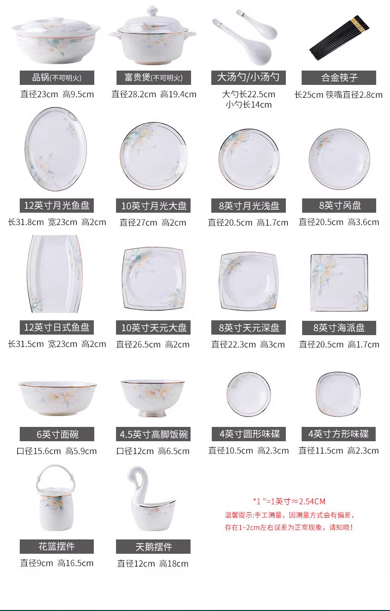 精缔陶瓷JINGDI 碗盘餐具整套景德镇高档中式骨瓷餐具套装陶瓷碗盘碟筷整套送礼 圆形标准配大汤碗 66件套