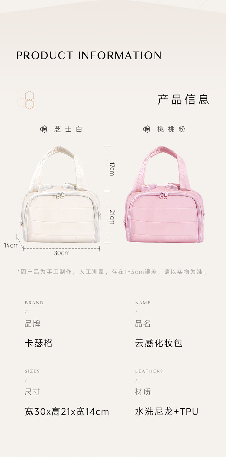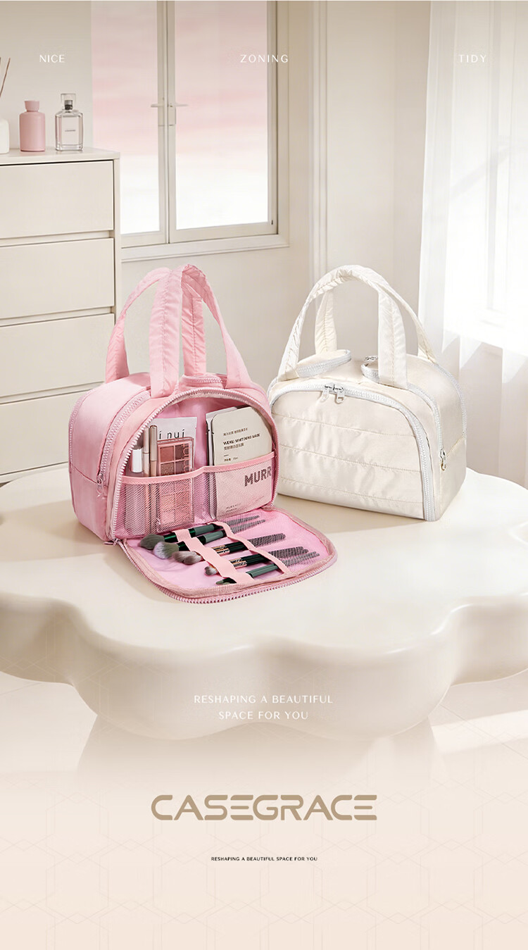 卡瑟格旅行防水护肤洗漱品高端化妆收纳包外出便携大容量分区收纳 桃桃粉【收纳控福音 防水防潮】