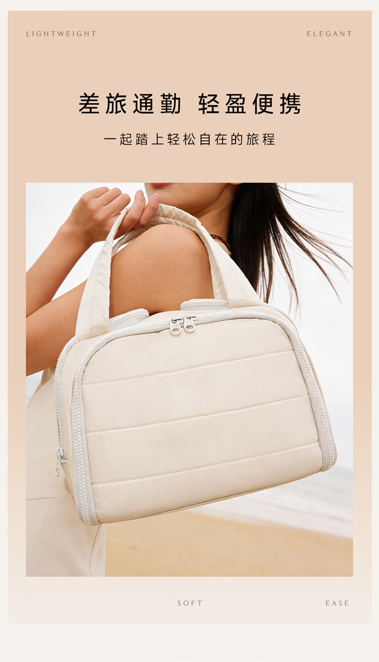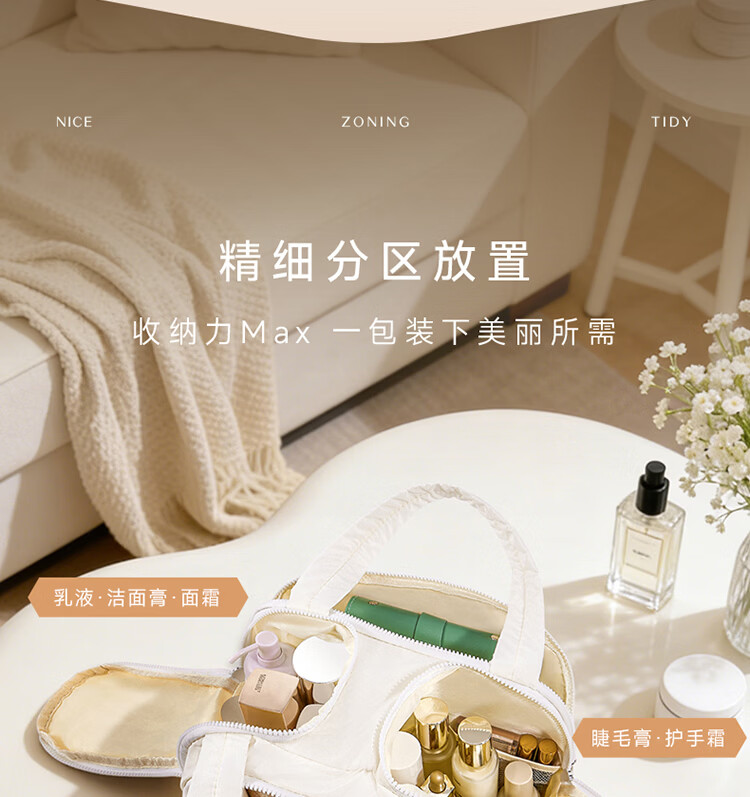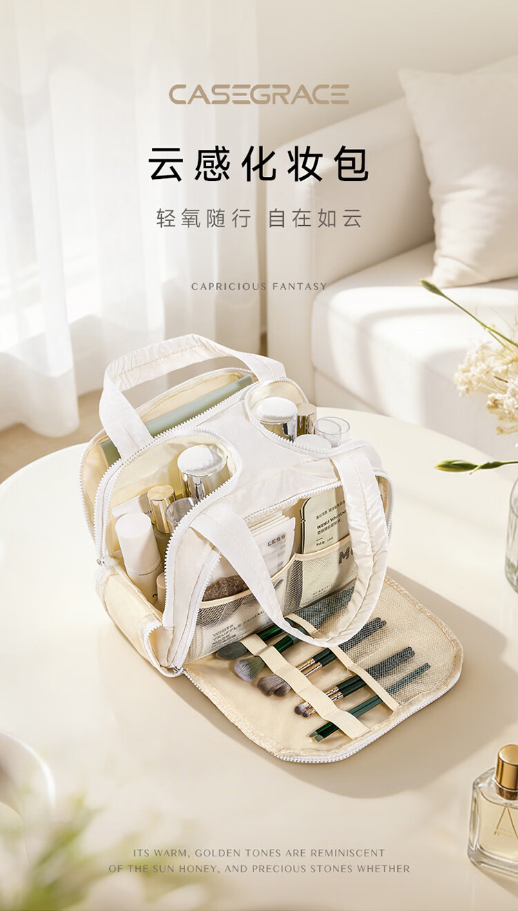 卡瑟格防水化妆包旅行立式收纳女外出便携大容量分区收纳轻奢高级 小方砖立式化妆包-奶油杏【防水耐脏】