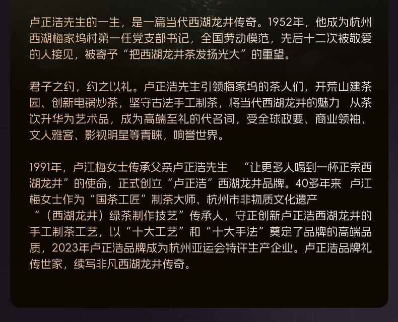 卢正浩绿茶西湖龙井茶特级100g2026新茶预售明前茶叶礼盒梅家坞源头直发