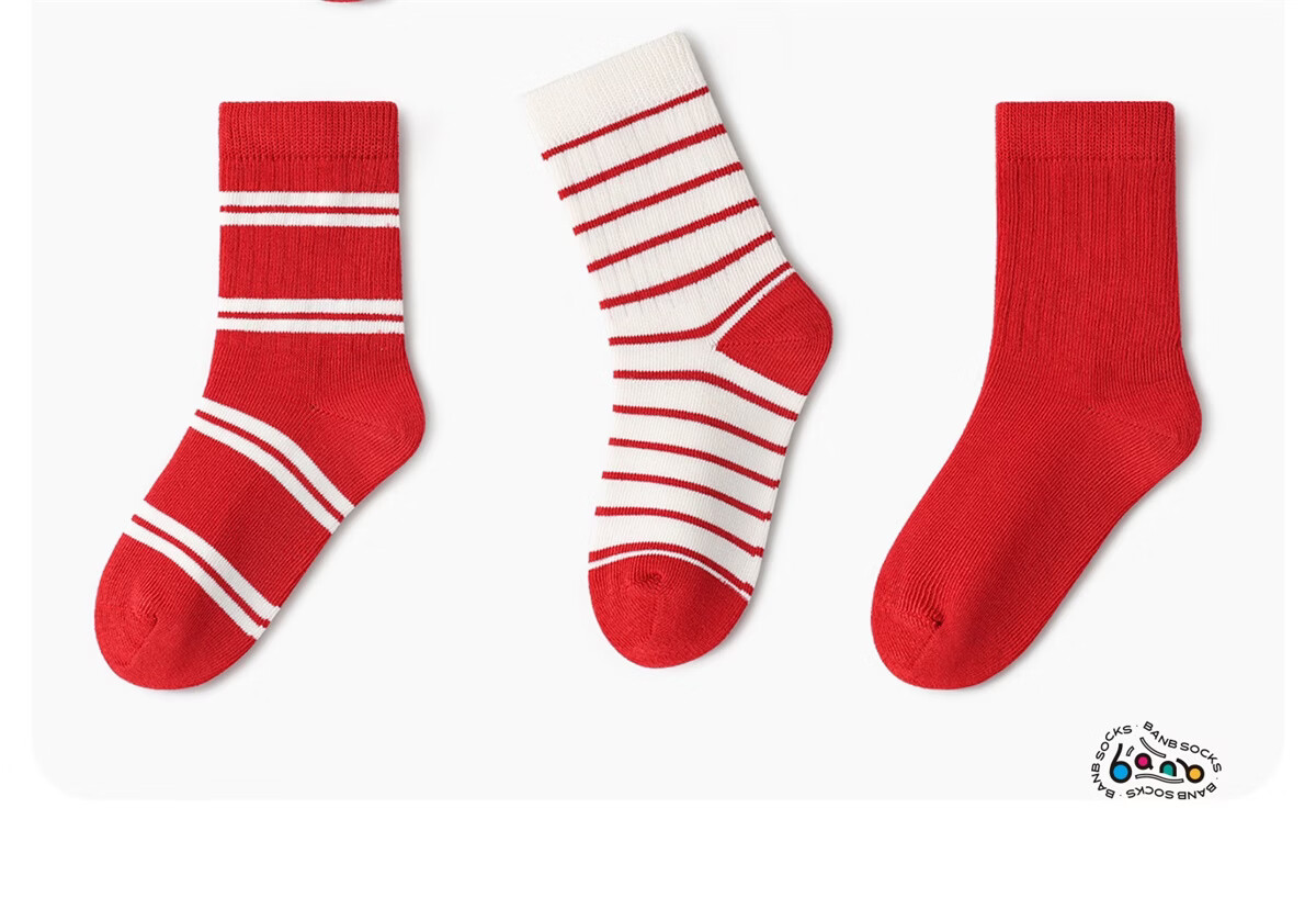 斑比童袜儿童新年红袜子秋冬季棉袜宝宝男女春秋款童中筒袜 BB23538 新年款儿童红袜子 5双 3-5岁 建议脚码21-26码【16-18】