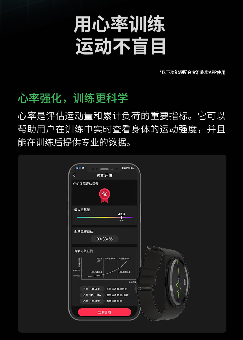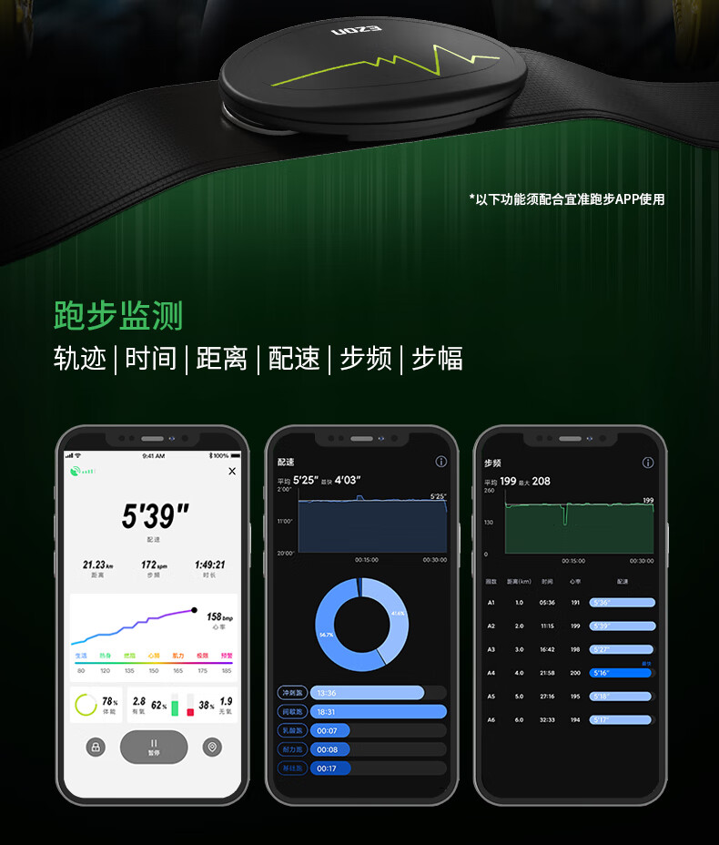 宜准(EZON)心率带心跳带胸带跑步健身骑行马拉松运动心率监测蓝牙 C009