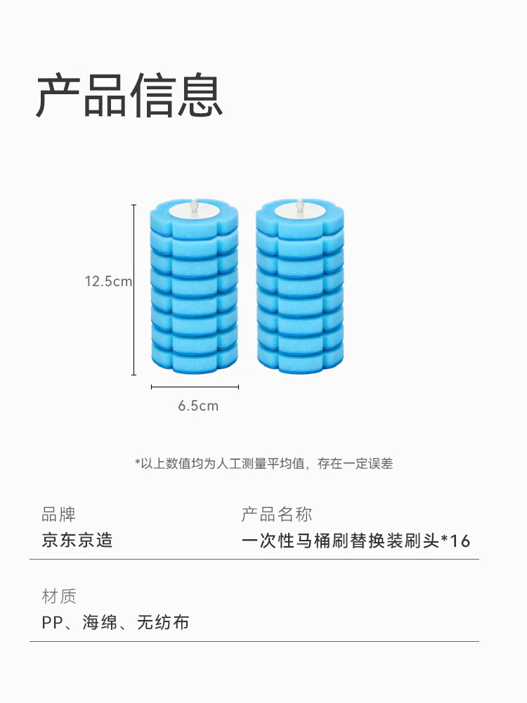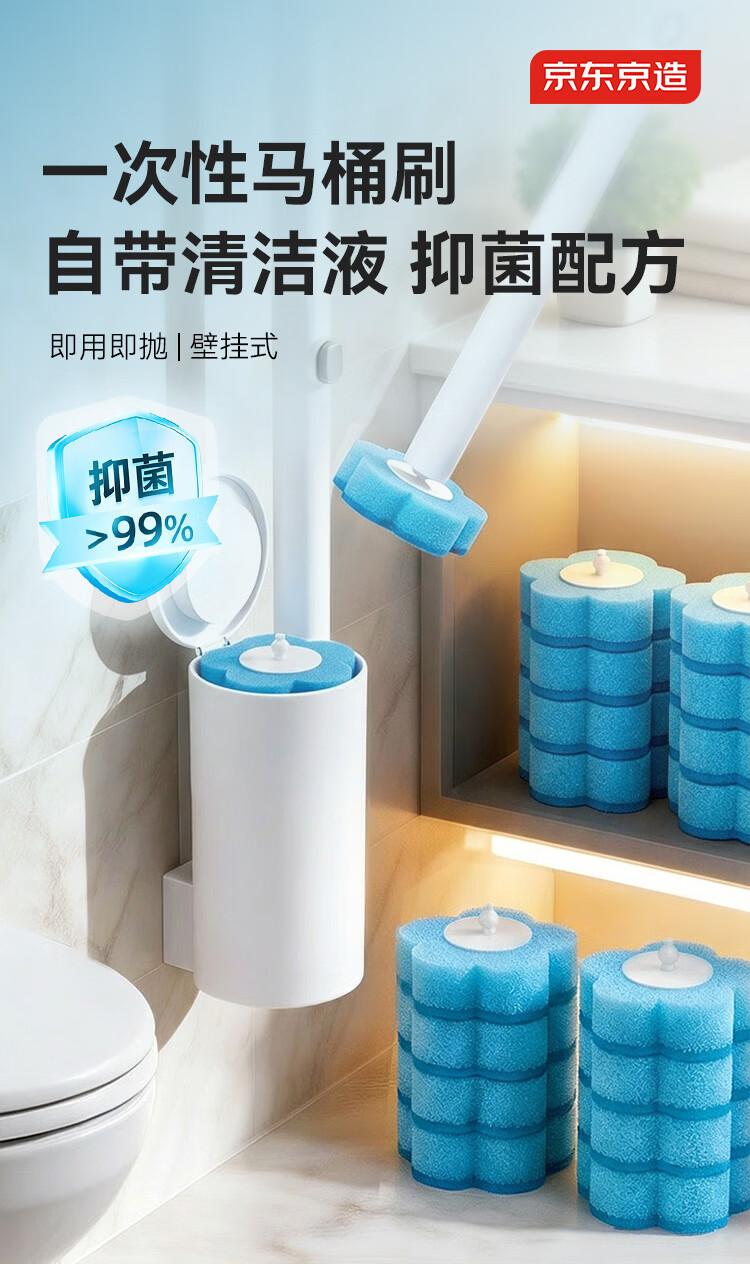 京东京造一次性马桶刷替换刷头16只 卫生间自带清洁液可抛式清洁厕所刷