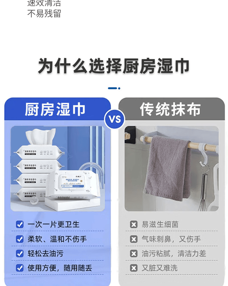 ⭐去油神器⭐湿巾强力去油污加大加厚吸油烟机清洁一次性懒人抹布 120抽/2包