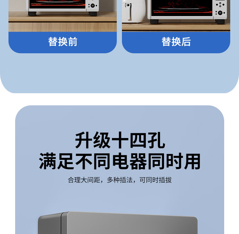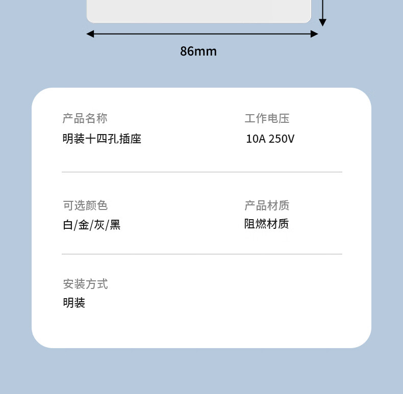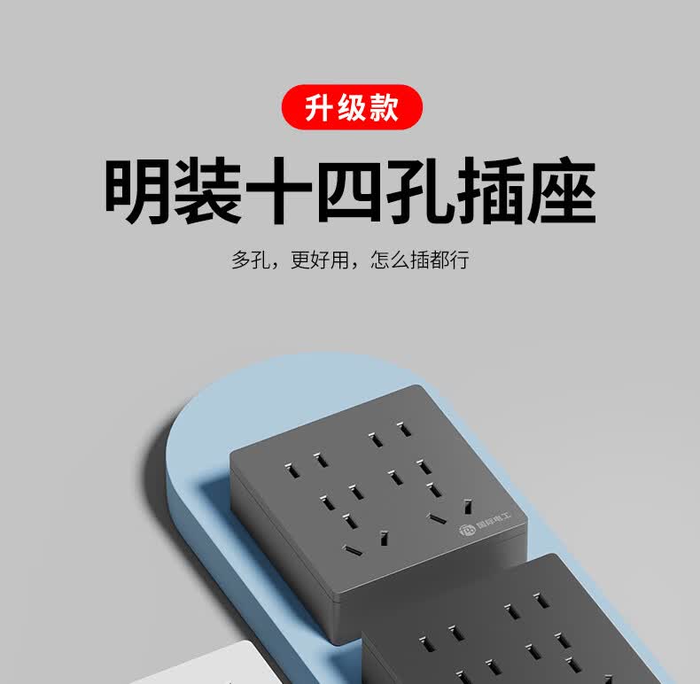 国际电工(FDD)86型明装十四孔开关插座面板家用多孔墙壁电源厨房多位二三孔插板 明装十四孔【白色】