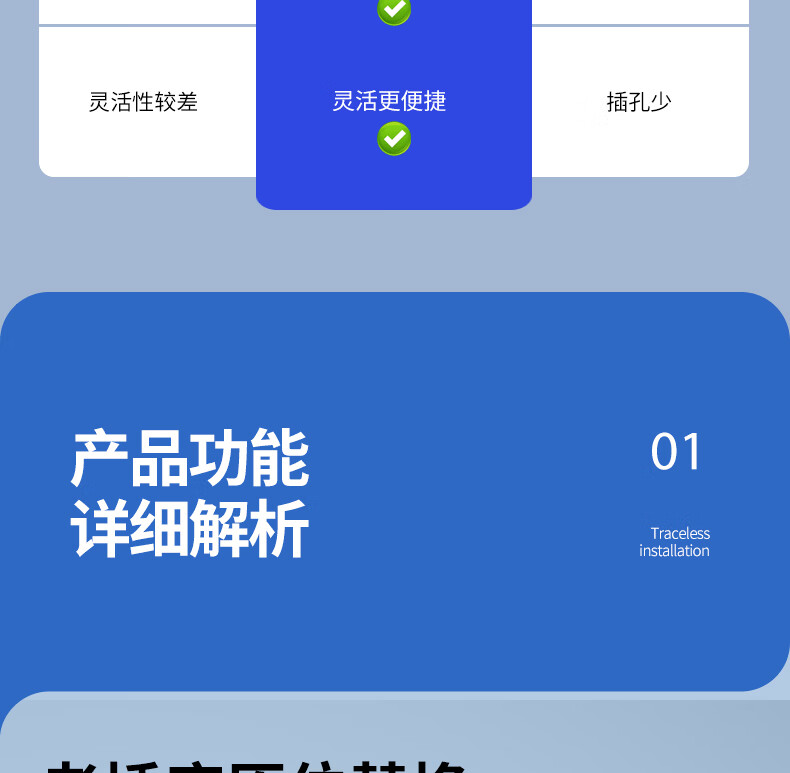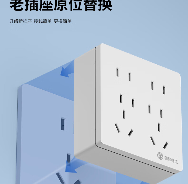国际电工(FDD)原位扩展插座86型家用厨房分控带开关插排多功能USB快充拓展排插 白色带USB-三开21孔-向左扩展(2.1A)