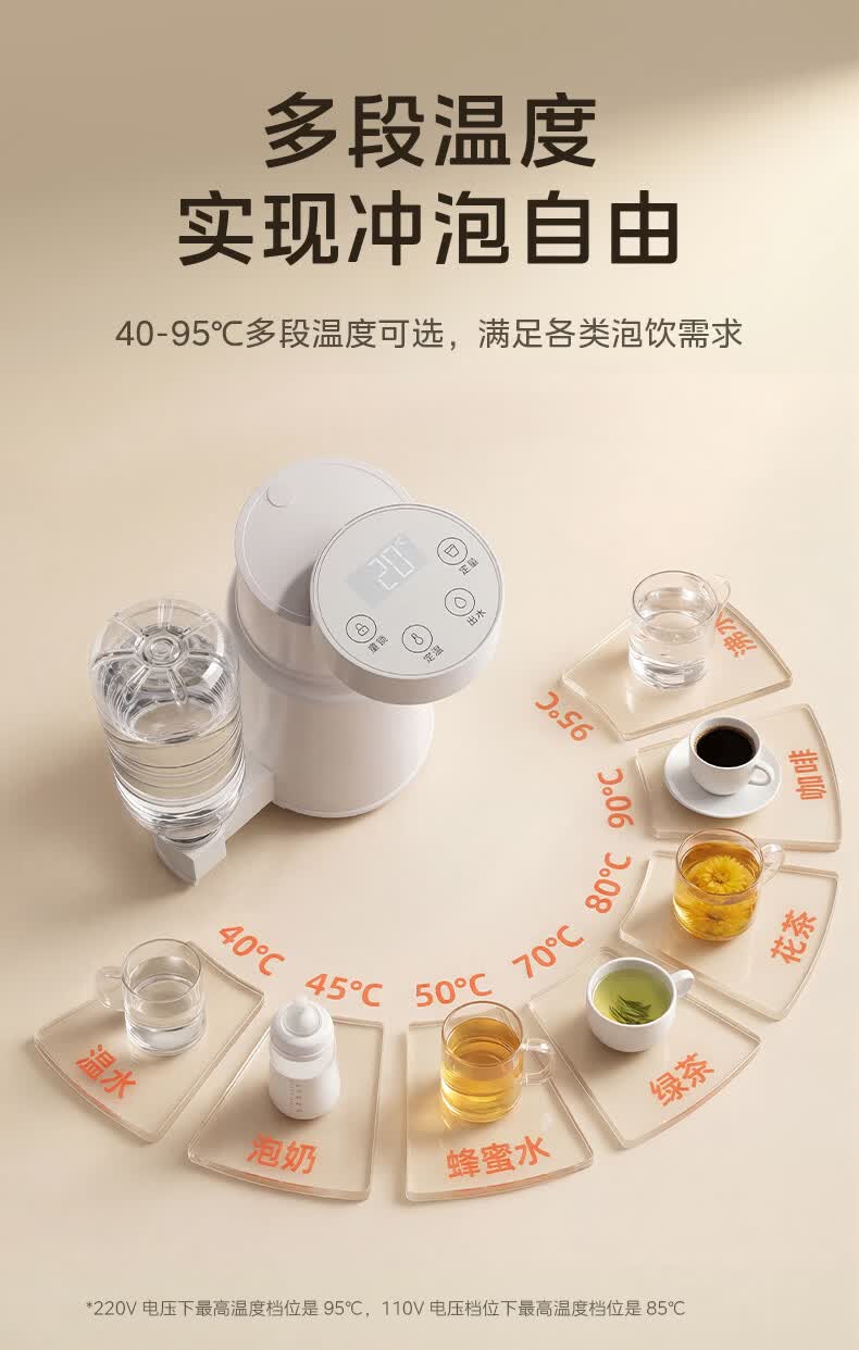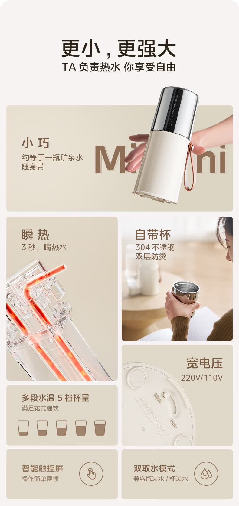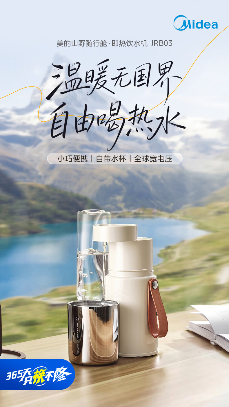 美的(Midea)即热式便携饮水机小型家用即热烧水壶旅行免安装折叠便携电热水壶智能触控式速热全球电压