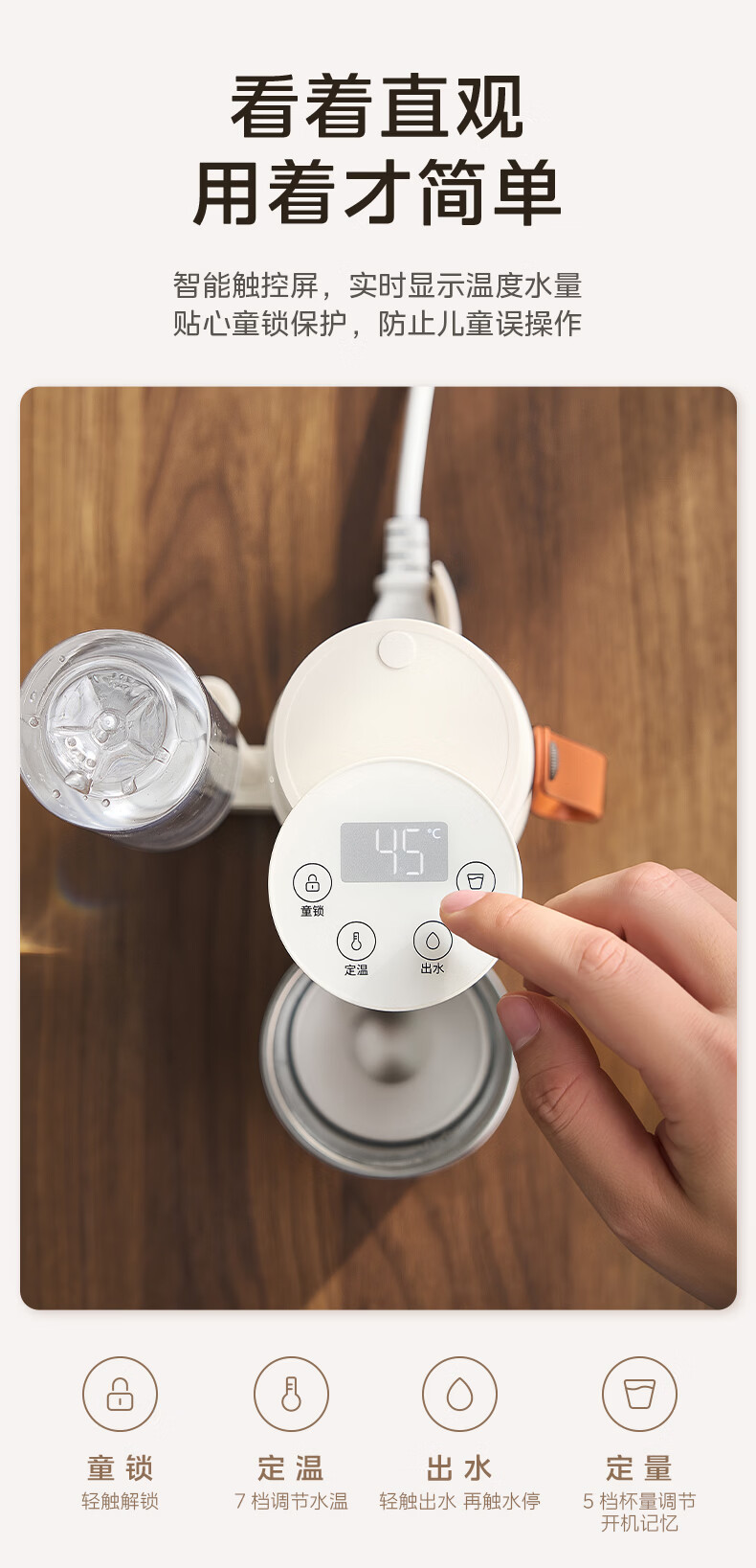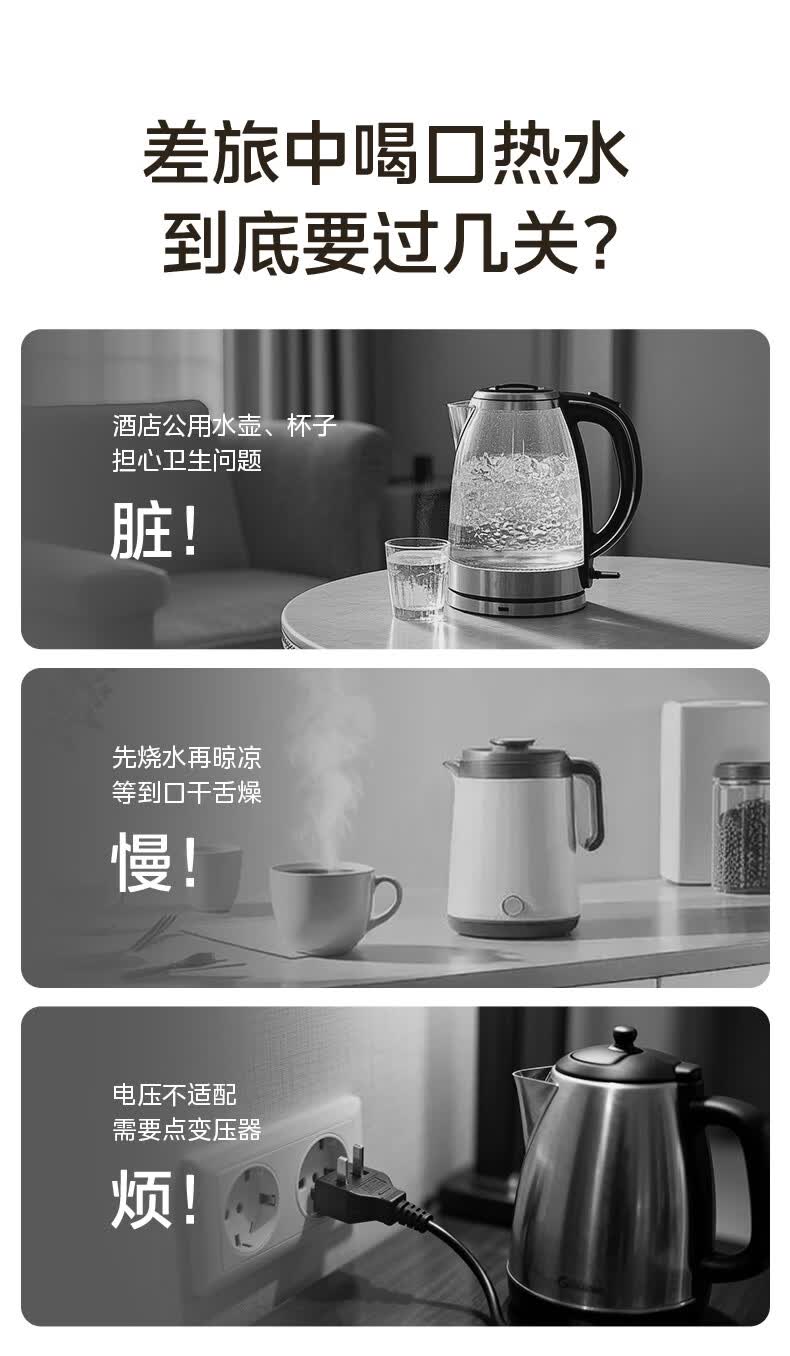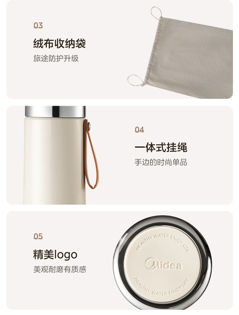 美的(Midea)即热式便携饮水机小型家用即热烧水壶旅行免安装折叠便携电热水壶智能触控式速热全球电压