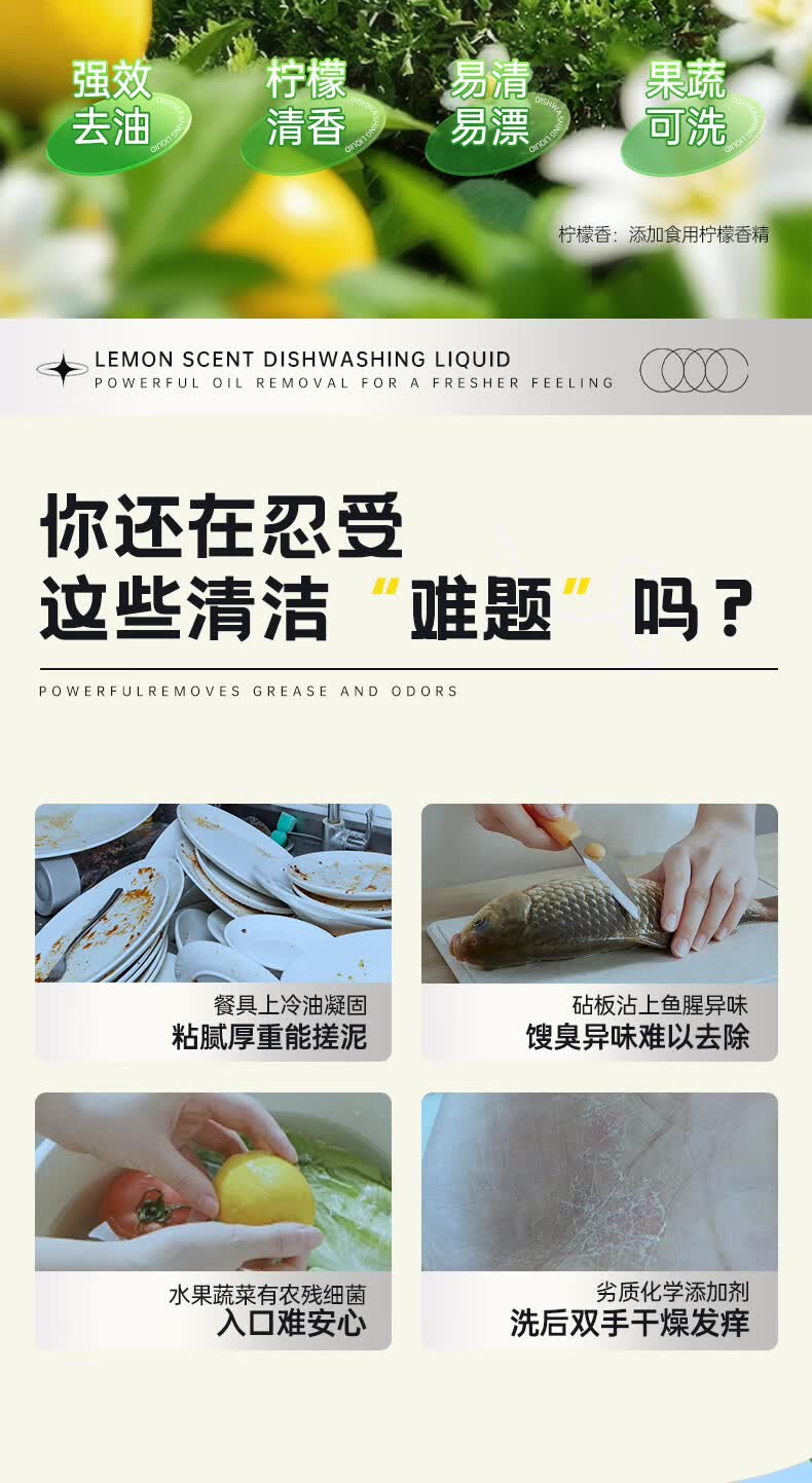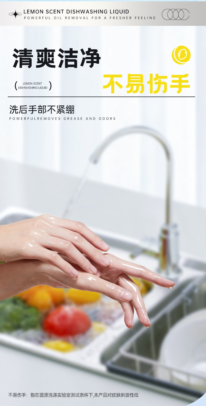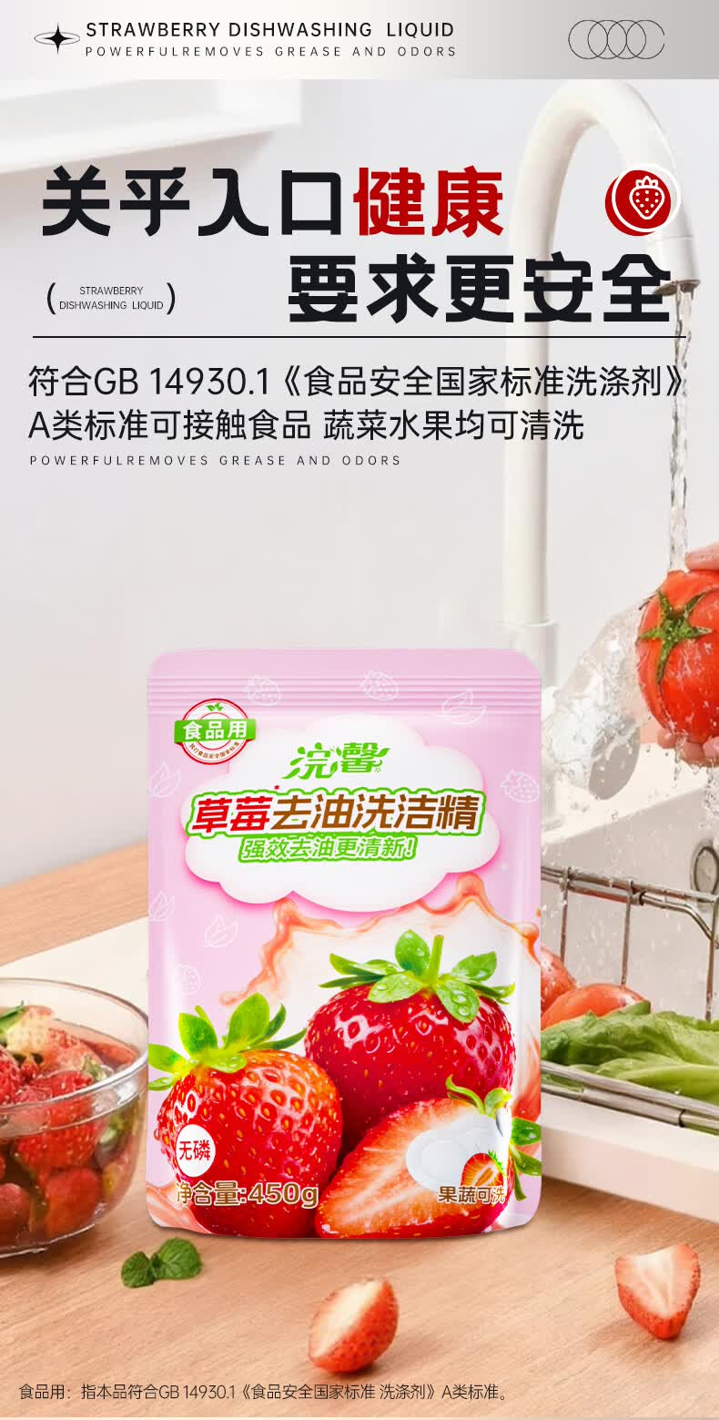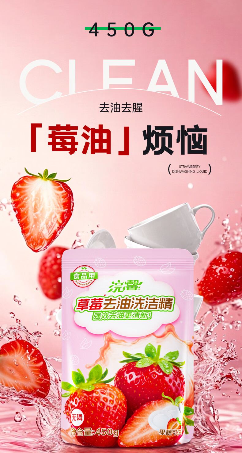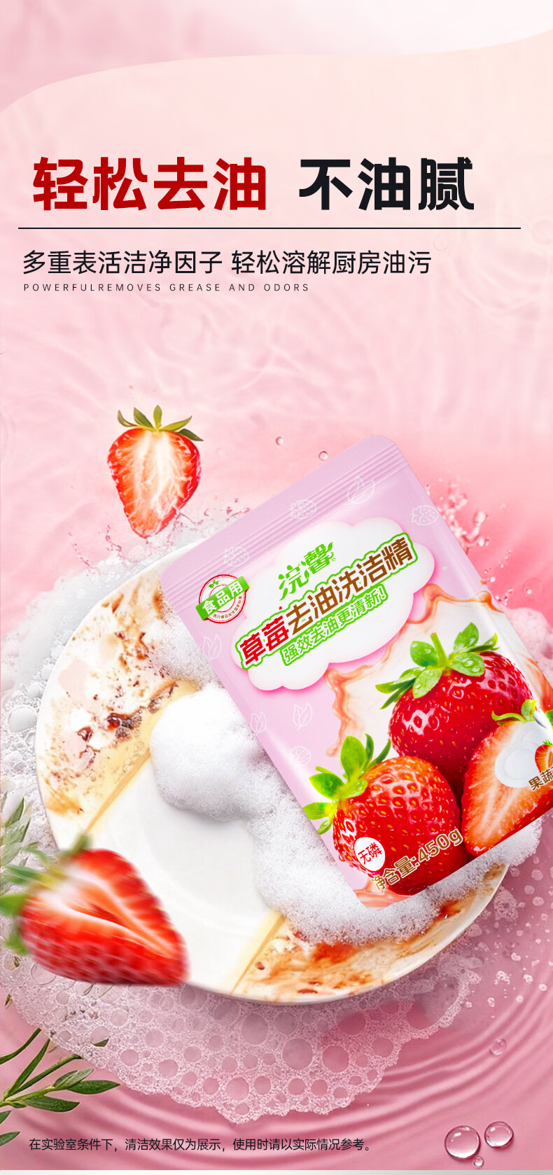 浣馨洗洁精柠檬草莓香快速去油清新祛味去重油污餐具家用洗涤剂 450g*1袋【柠檬清香】