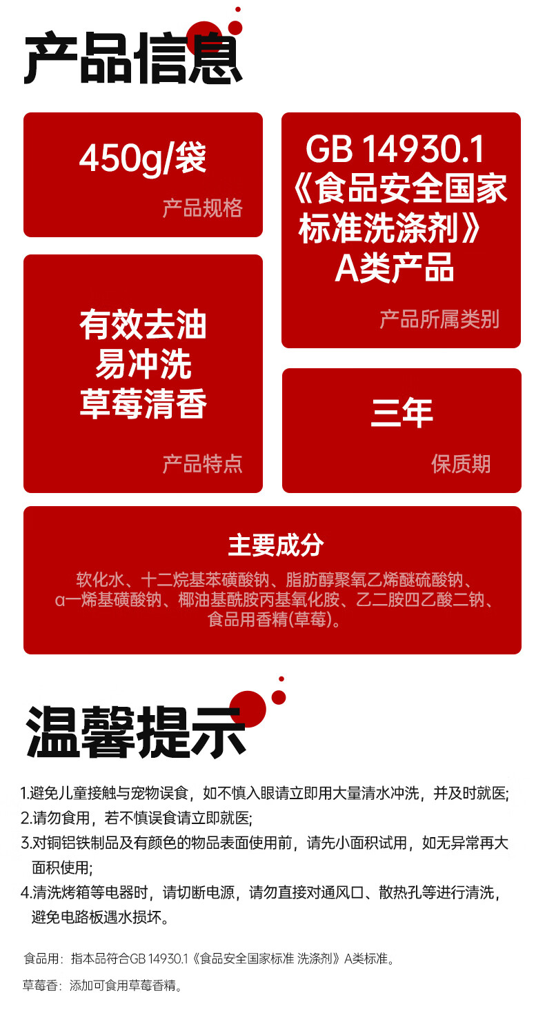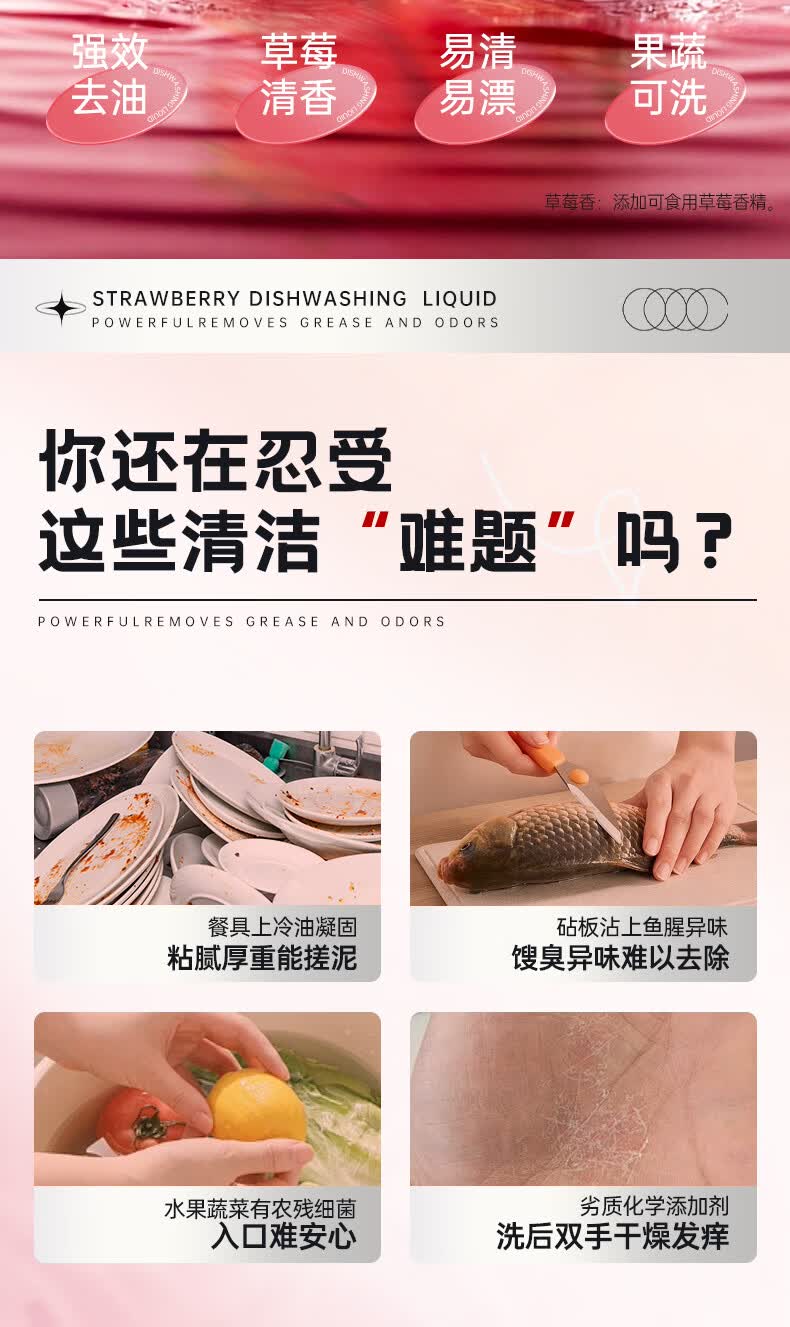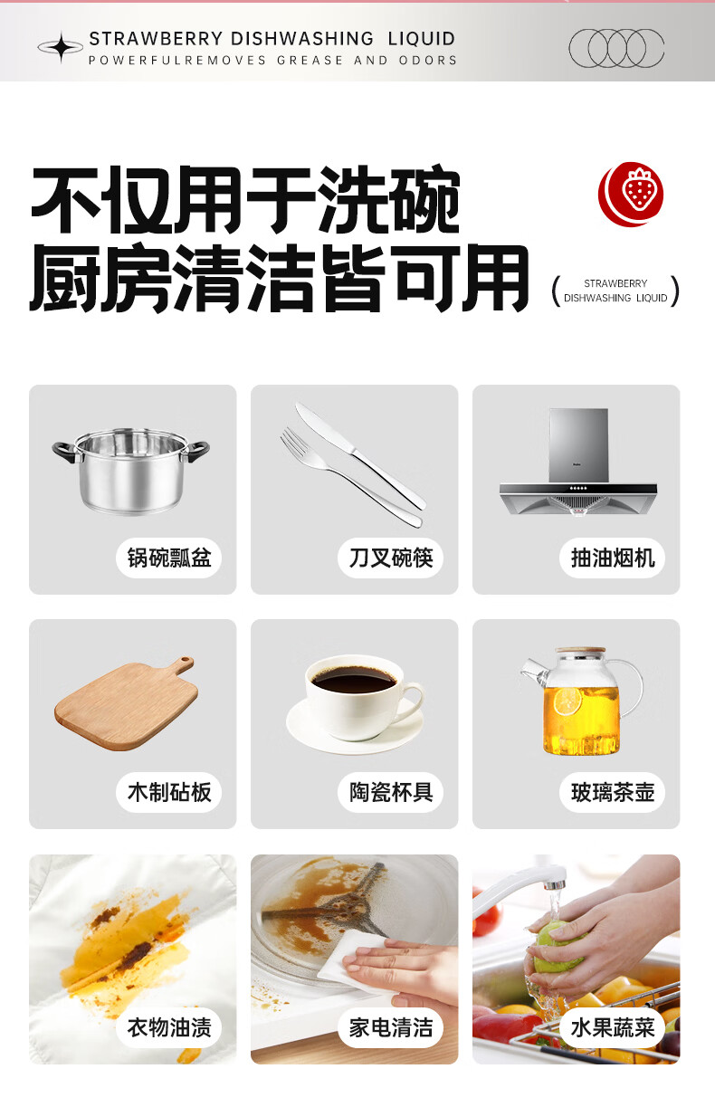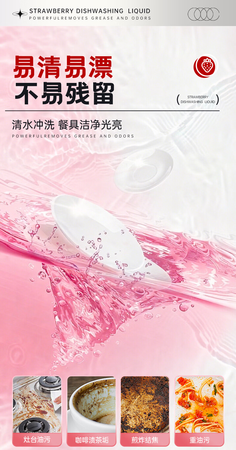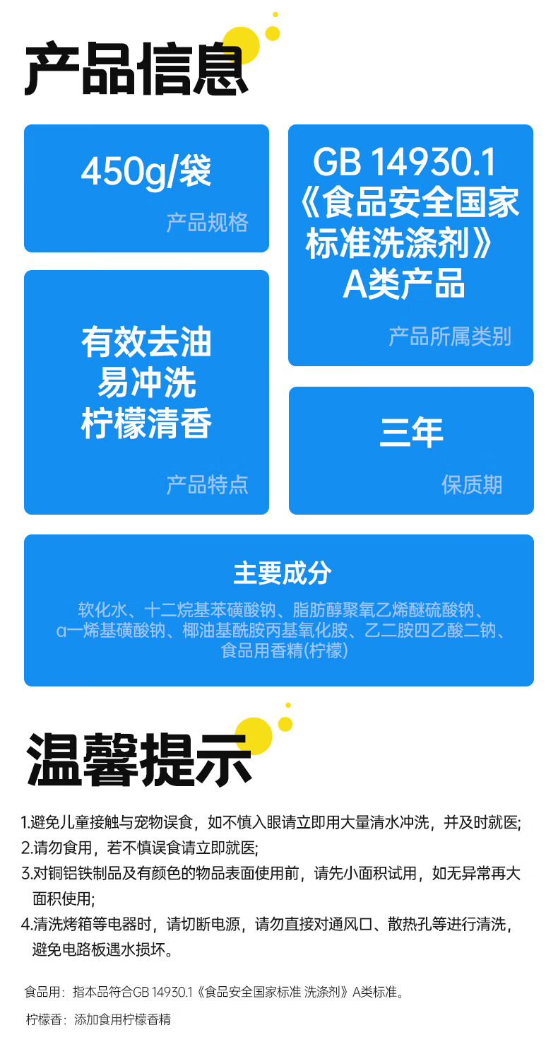 浣馨洗洁精柠檬草莓香快速去油清新祛味去重油污餐具家用洗涤剂 450g*1袋【柠檬清香】