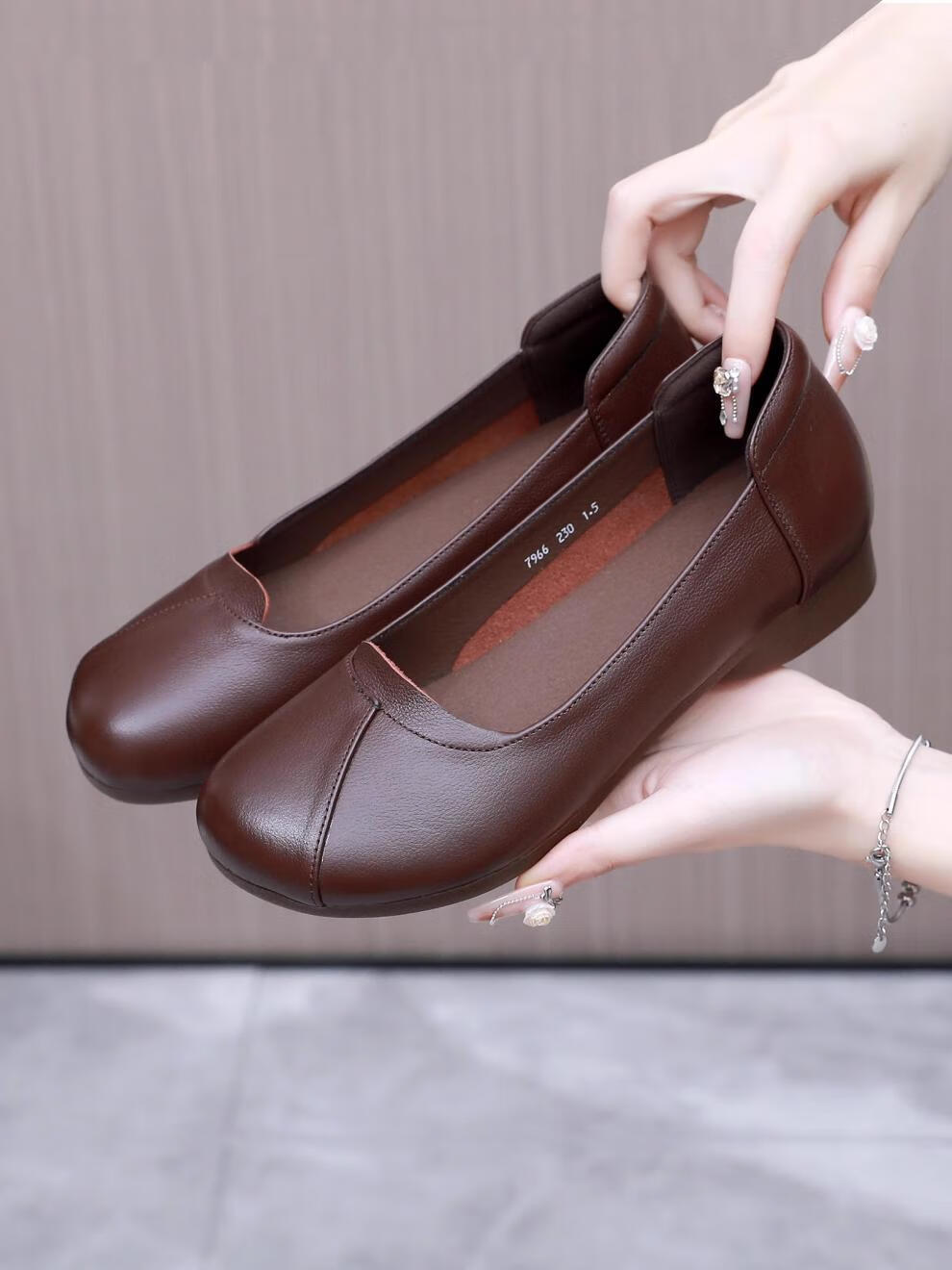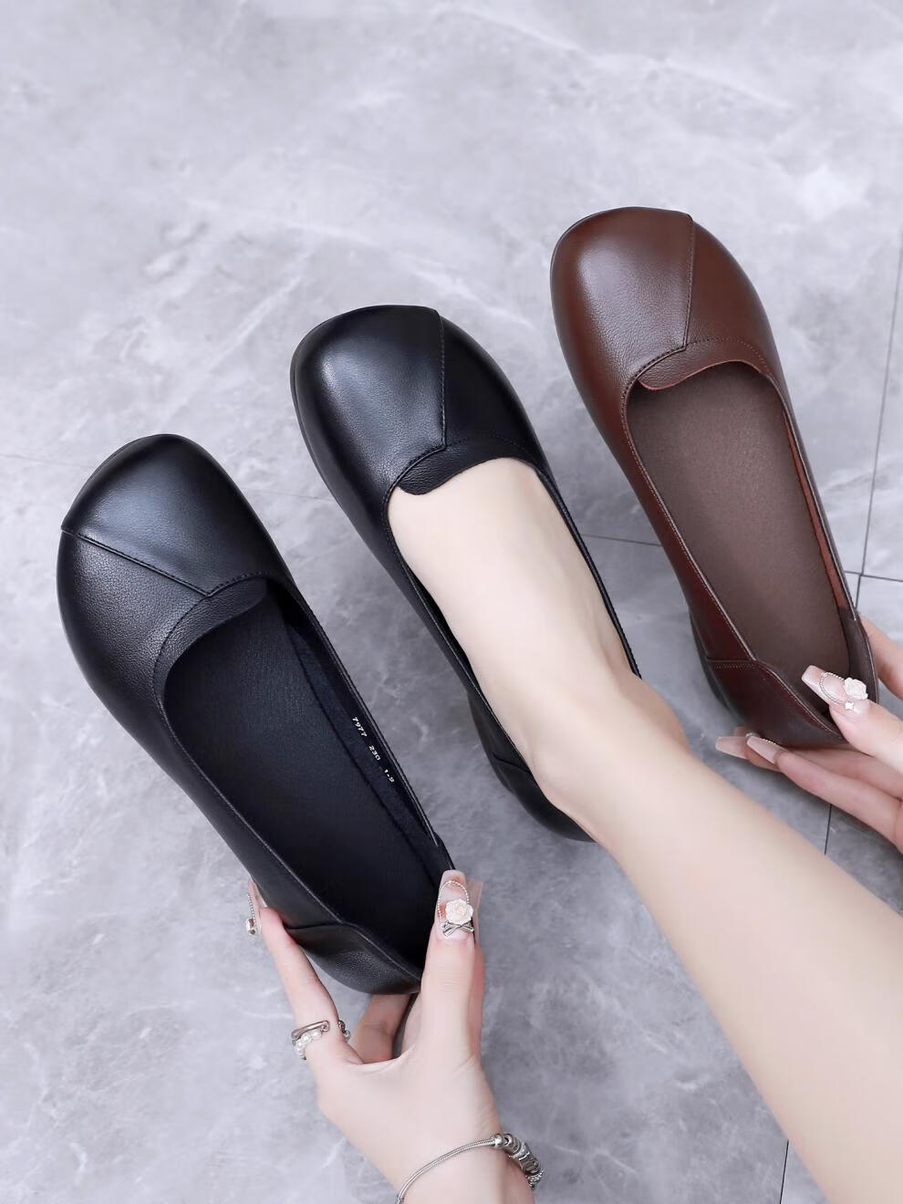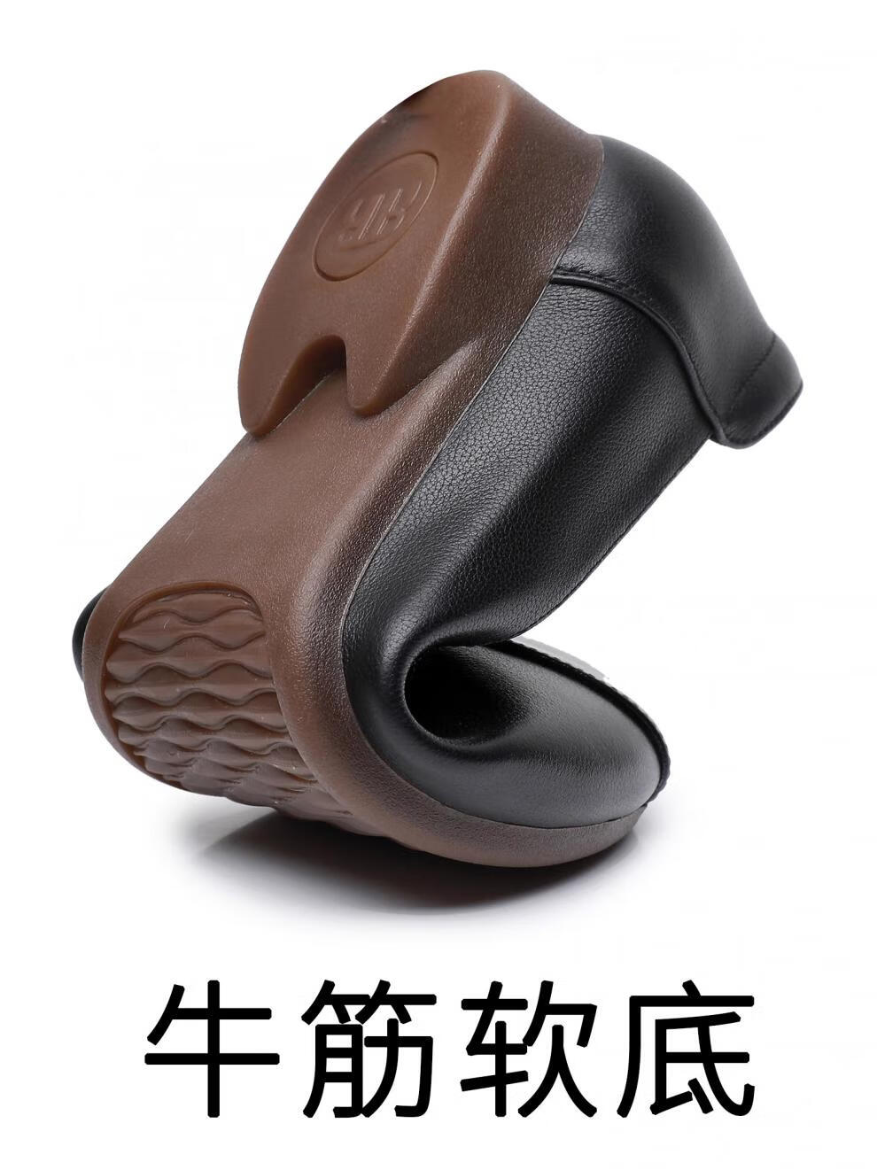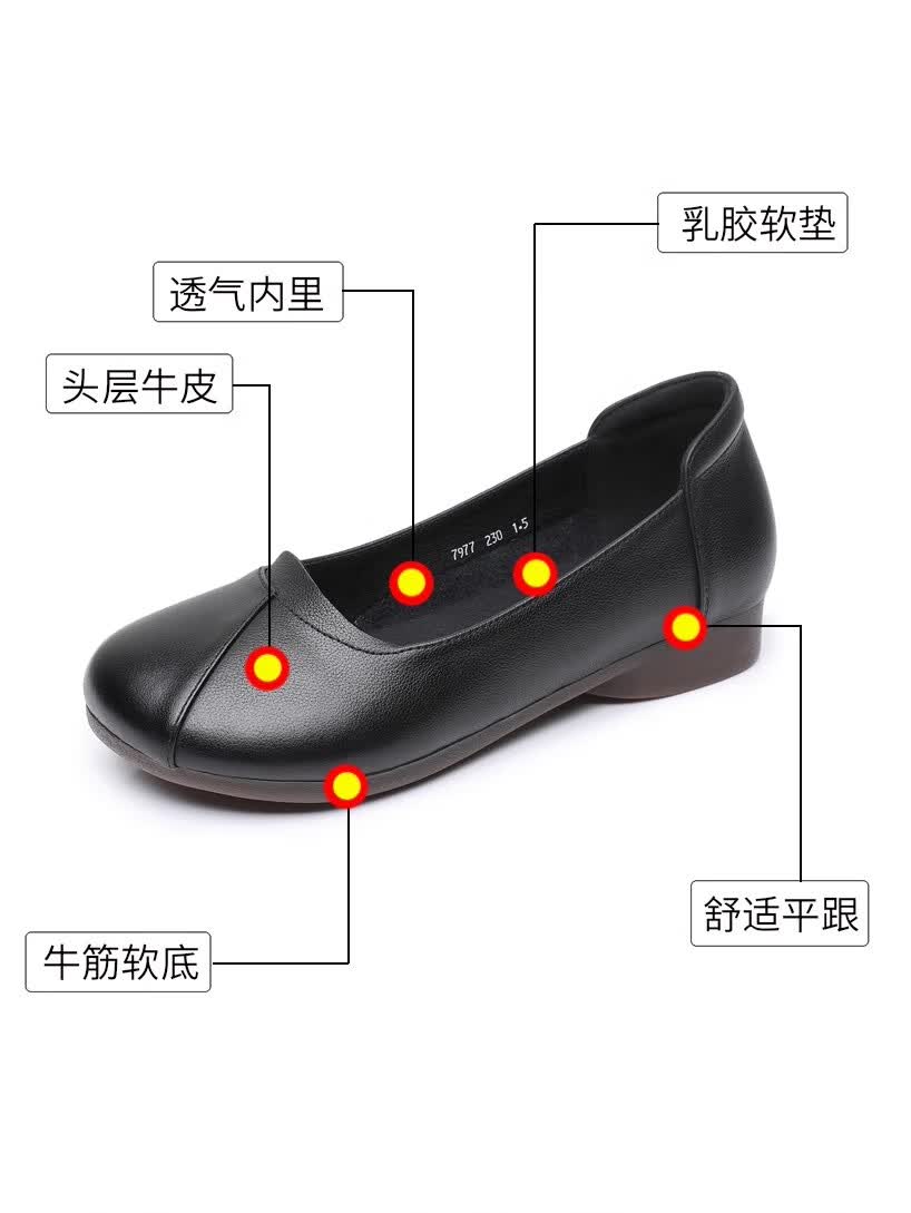 啄木鸟品牌鞋真皮妈妈鞋软底2026春夏新款平底大尺码防滑覆古中老年女单 黑色 35