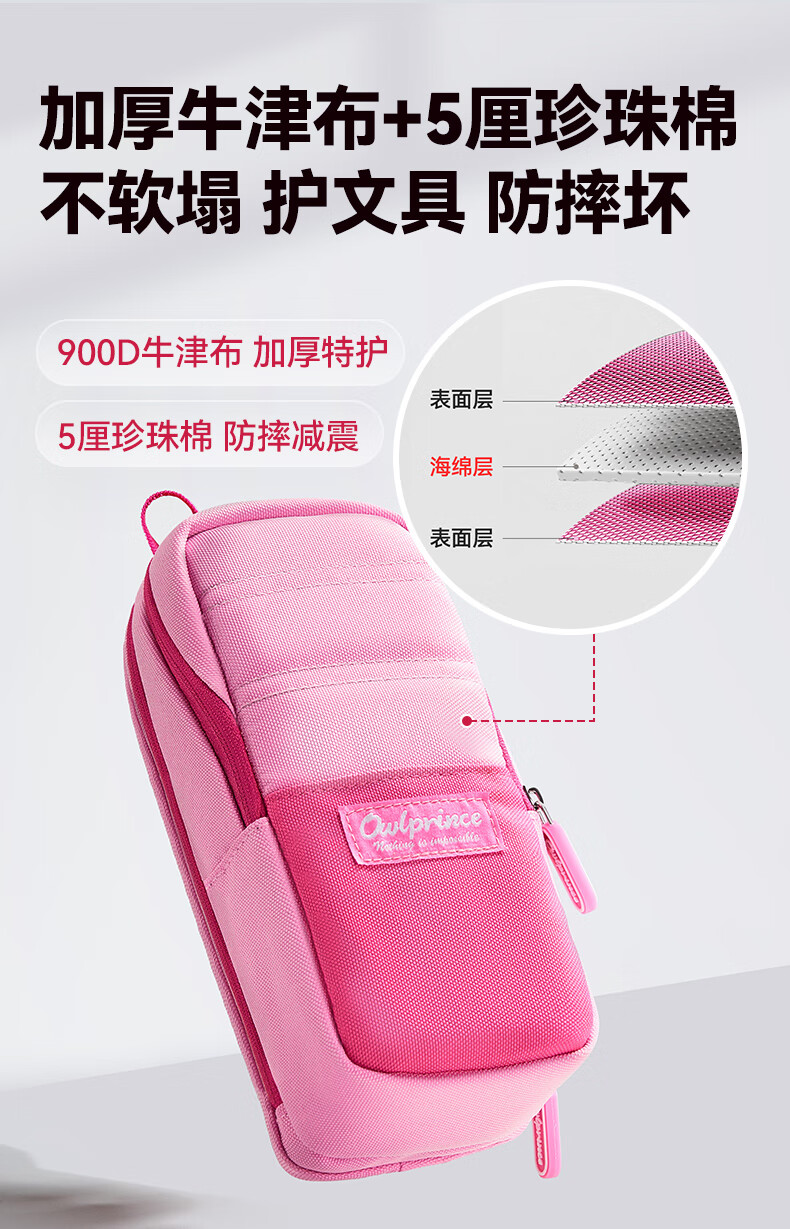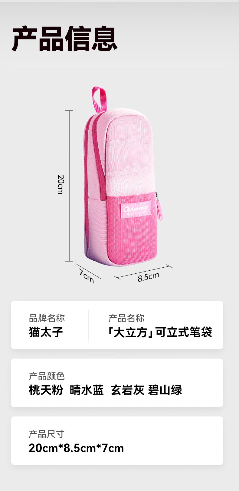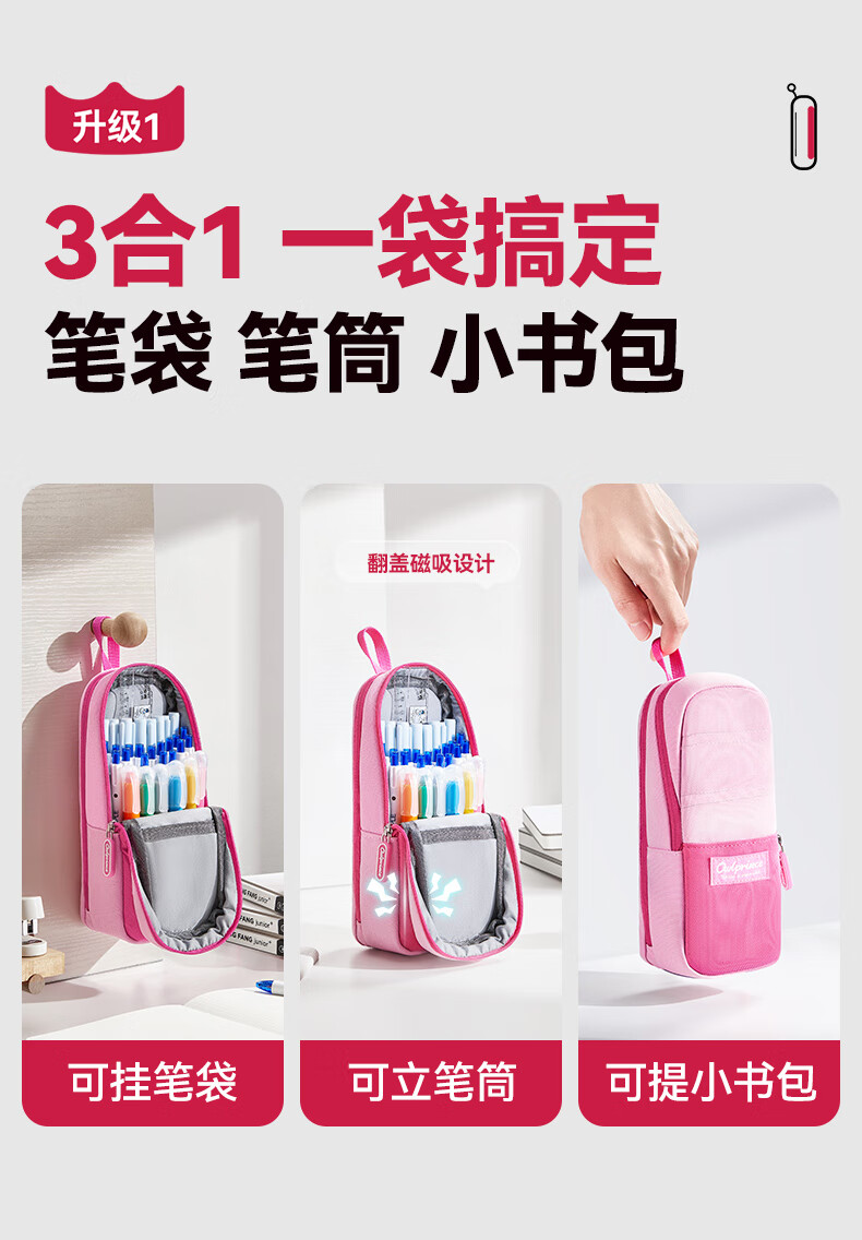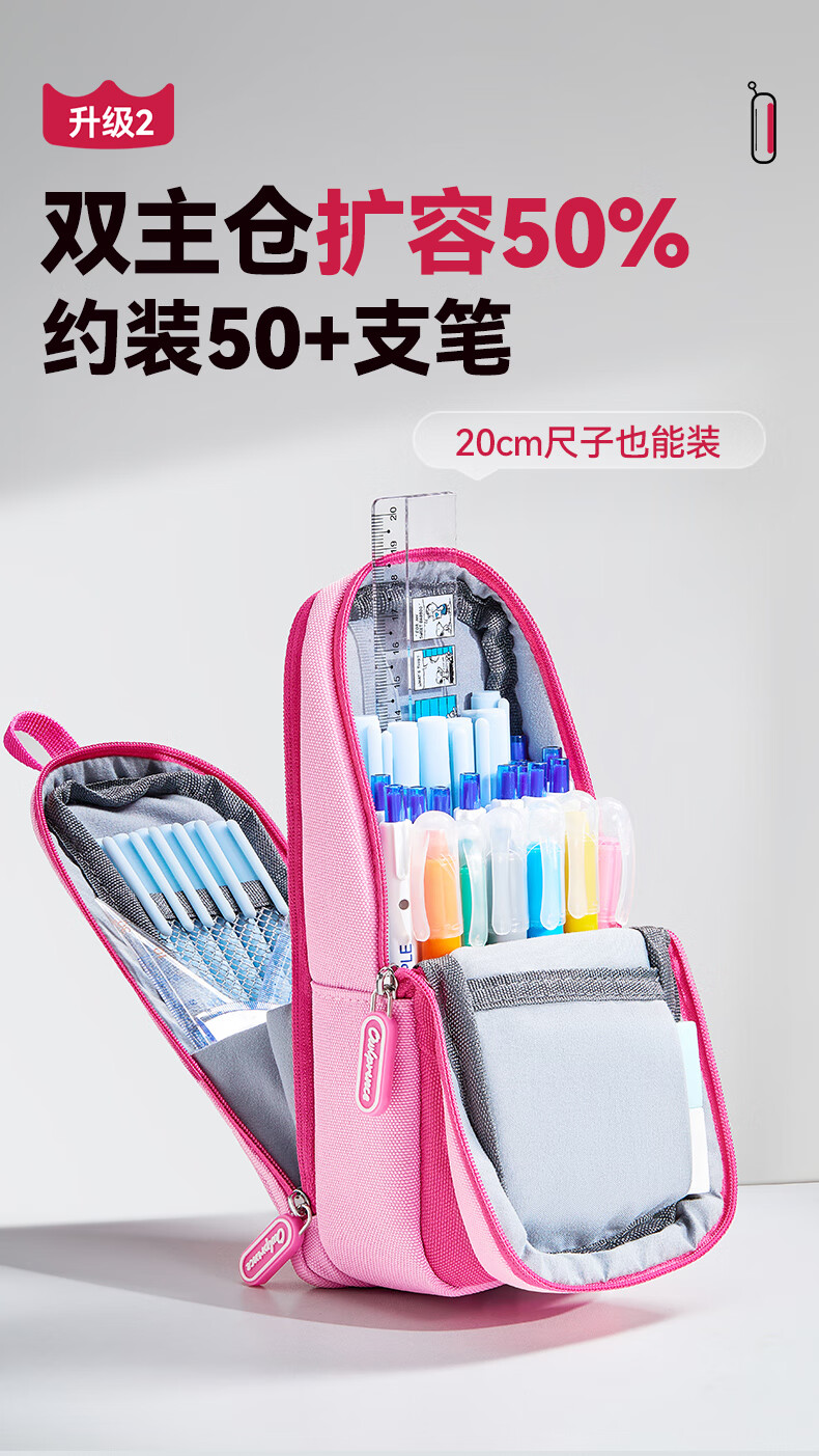 猫太子高颜值竖版笔筒式笔袋小学生儿童女铅笔盒学习文具盒简约时尚抗压耐摔轻盈笔袋 桃夭粉
