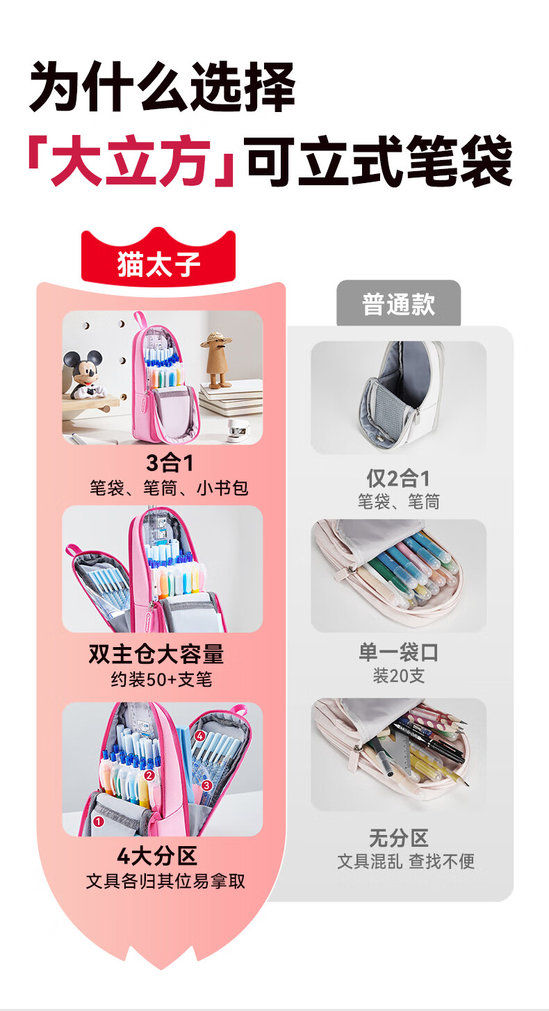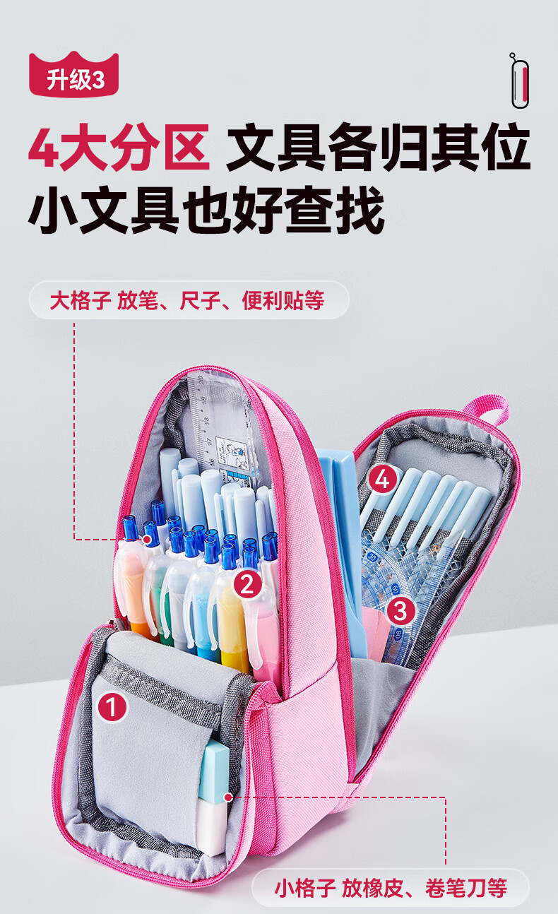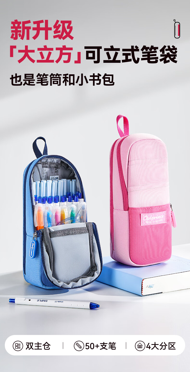 猫太子高颜值竖版笔筒式笔袋小学生儿童女铅笔盒学习文具盒简约时尚抗压耐摔轻盈笔袋 桃夭粉
