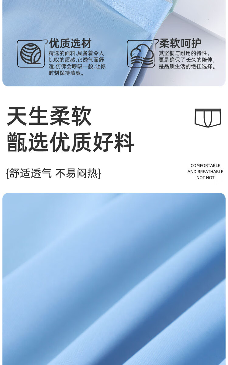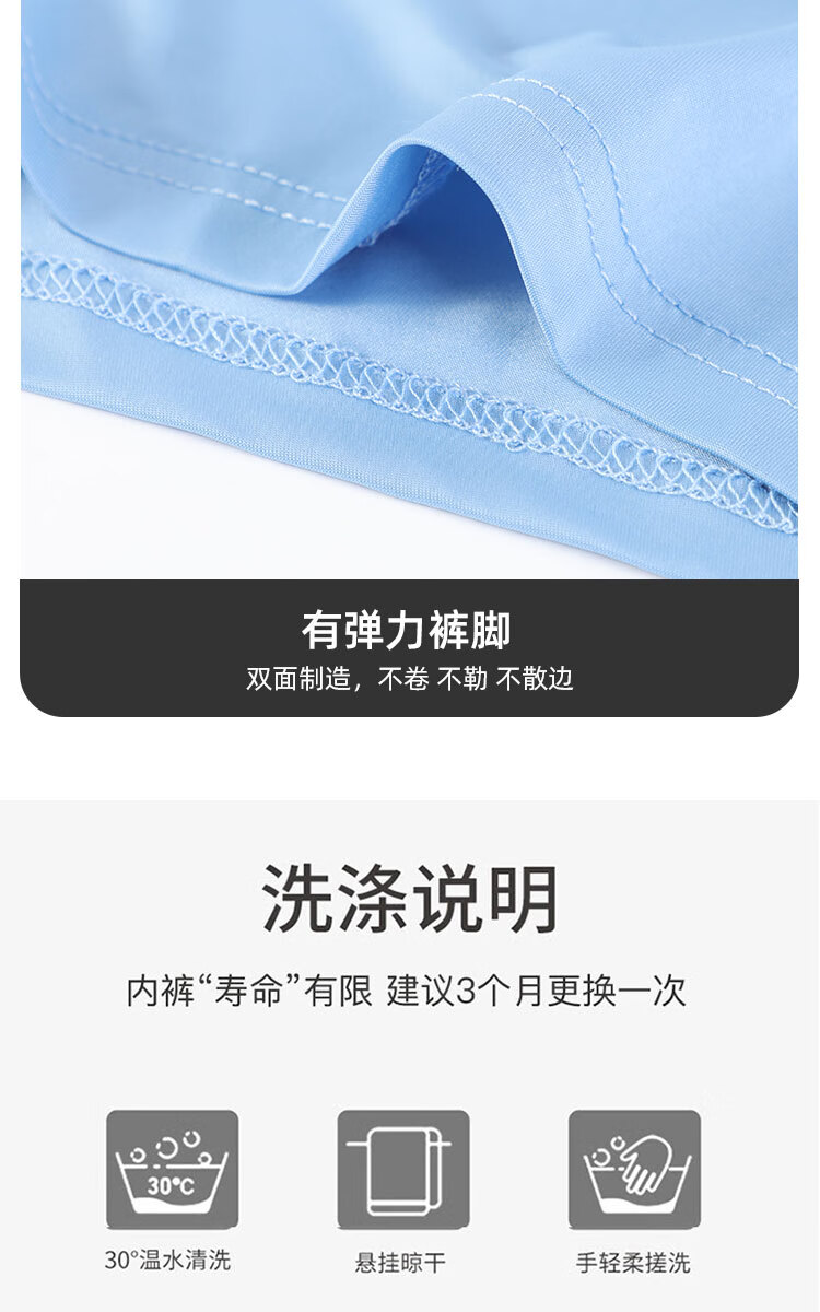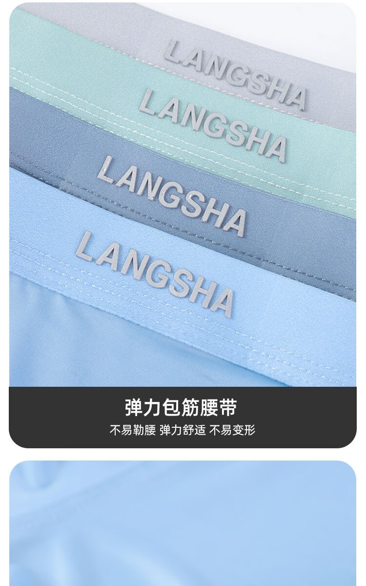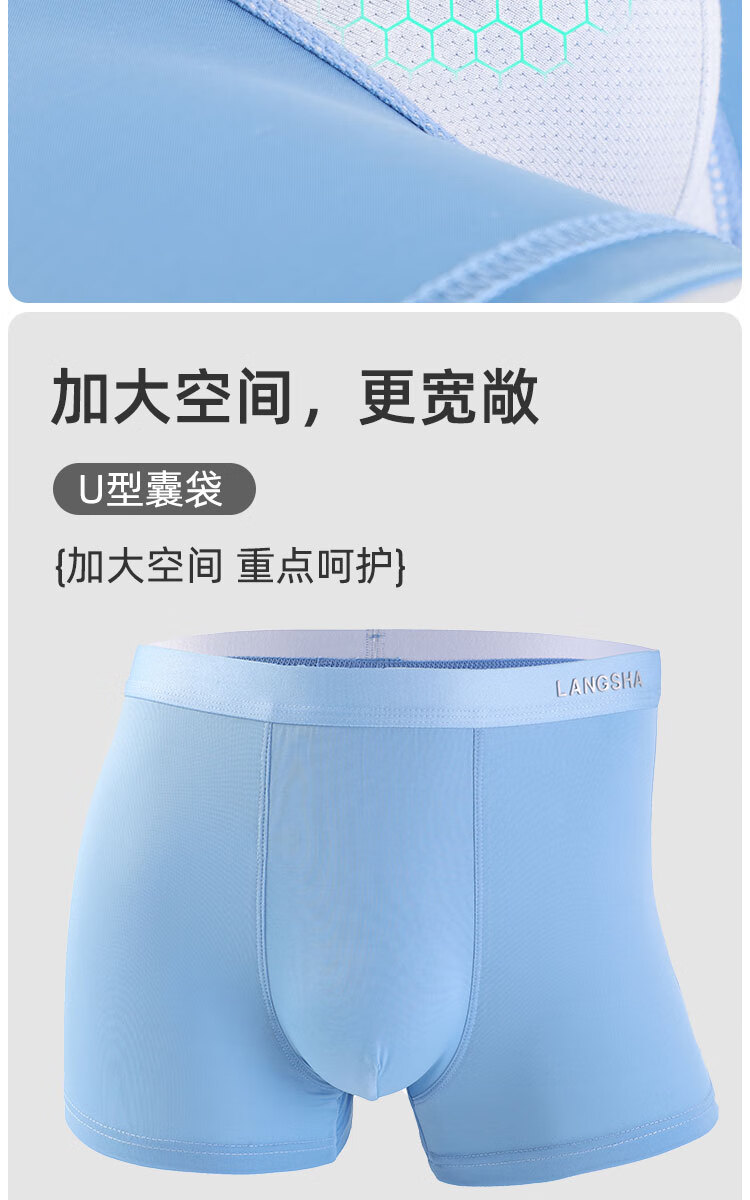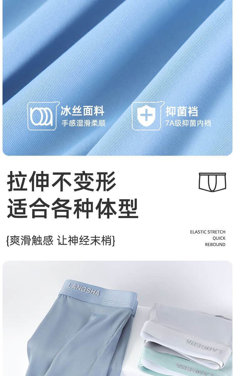 浪莎男士冰丝内裤7A级抑菌内裆无痕透气夏季薄款四角裤青少年平角裤衩 冰丝抑菌-绵软舒适 L (90-110斤)