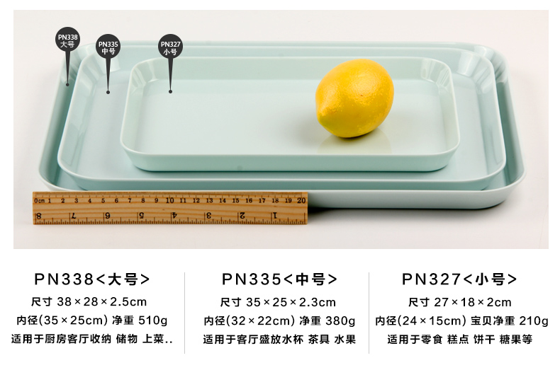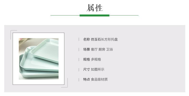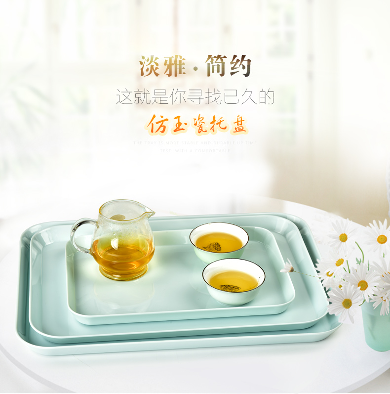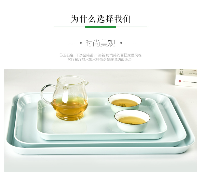 KORDCO玉石色托盘长方形家用茶盘创意简约客厅密胺水盘欧式收纳盘端菜盘 玉石色 大号尺寸:38cm*28cm*2.5cm