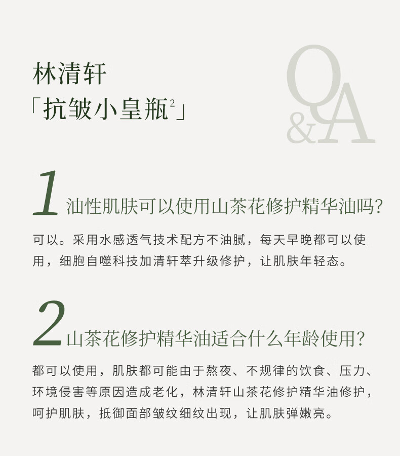 林清轩【于适同款】山茶花4.0面部精华油以油养肤抗皱淡纹精华护肤1 30ml