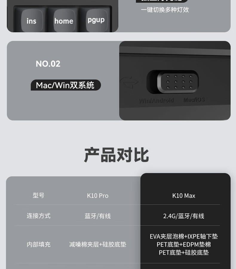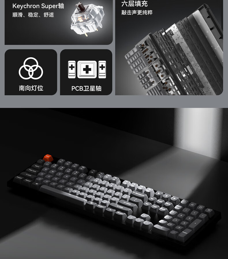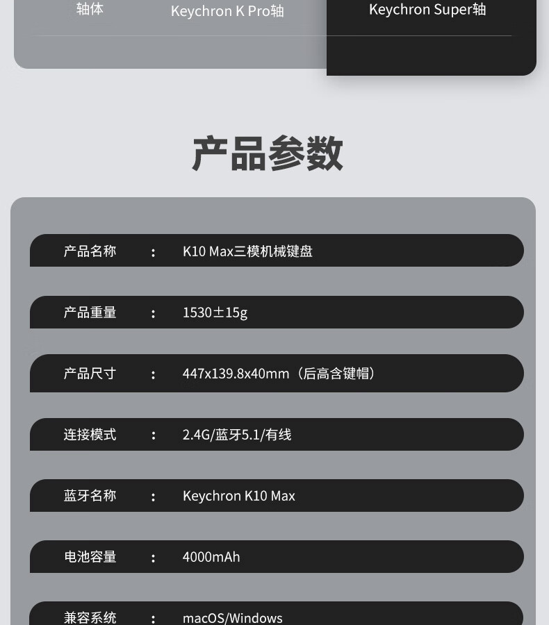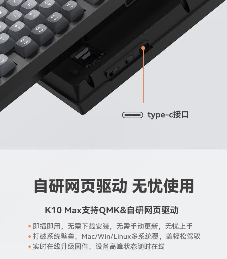keychron渴创 K10Max 机械键盘 无线三模键盘 客制化键盘 蓝牙办公键盘 QMK/VIA开源改键 支持Mac/Win系统 K10Max 不可插拔 白光 红轴