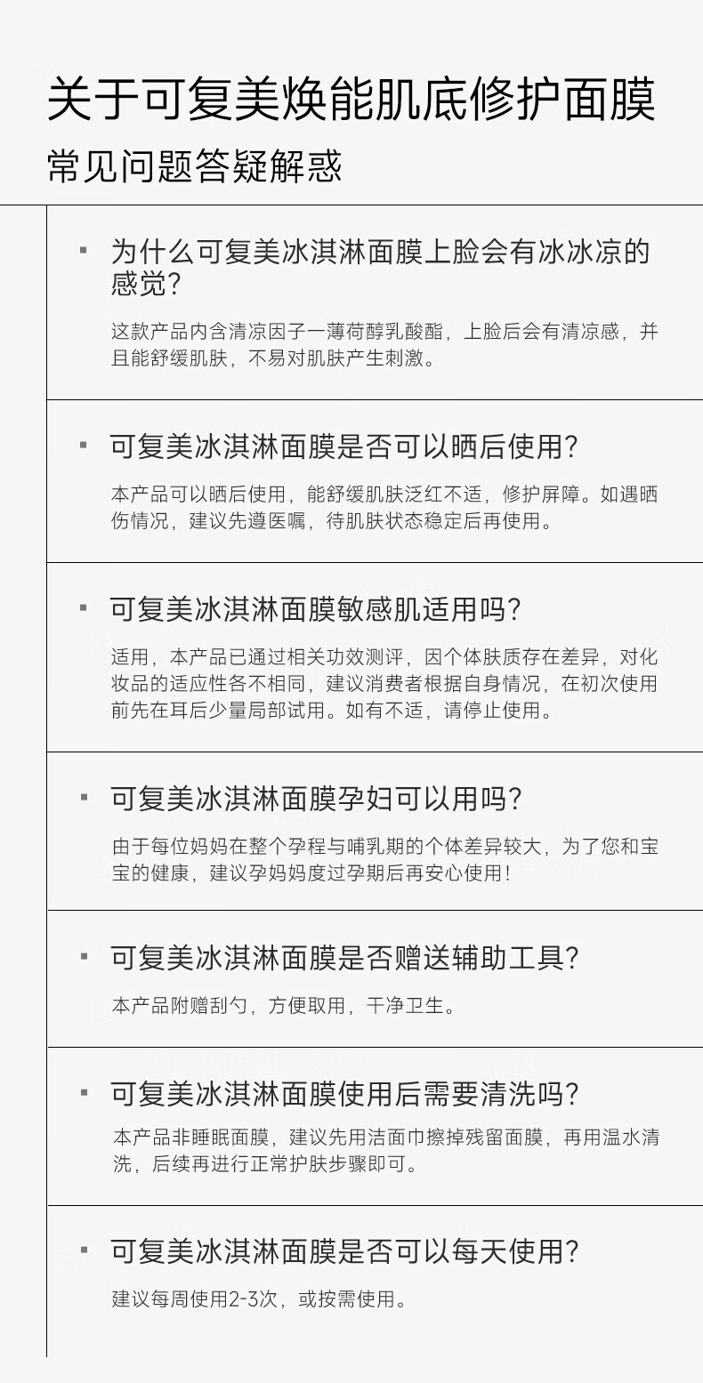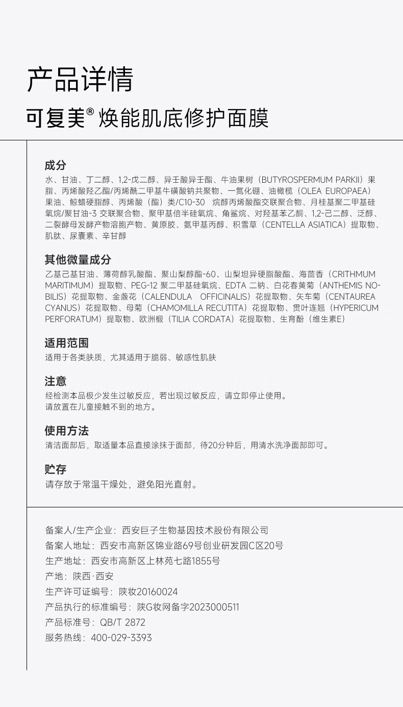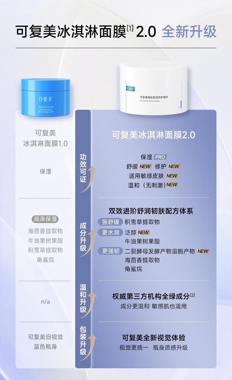 可复美焕能肌底修护涂抹式面膜165g冰淇淋补水保湿亮肤敏感肌面膜 新版修护涂抹面膜165g