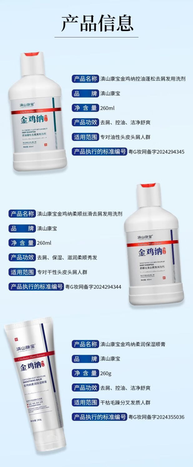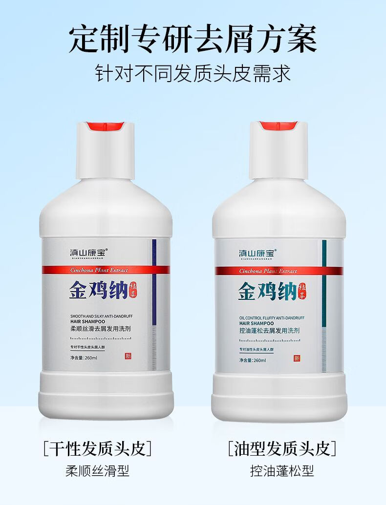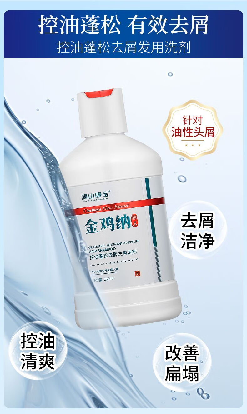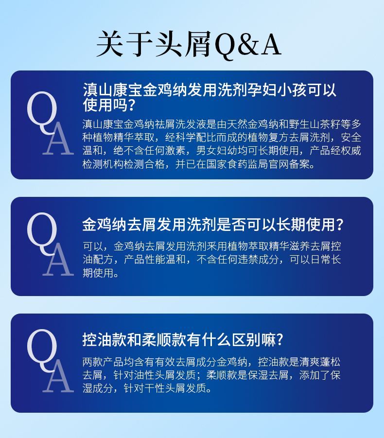 滇山康宝金鸡纳洗发水 男士去屑止痒洗发水 控油蓬松滋润柔顺 发膜洗发露 柔顺丝滑去屑洗发水【送护发素1支】