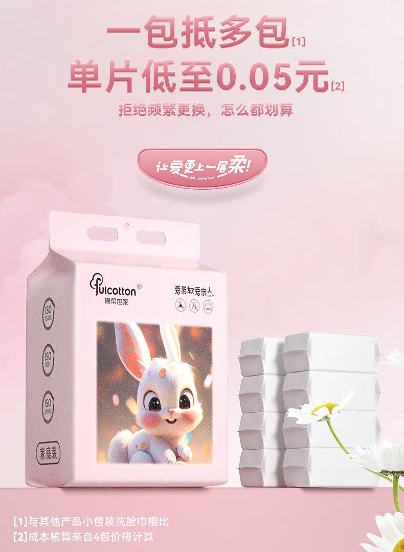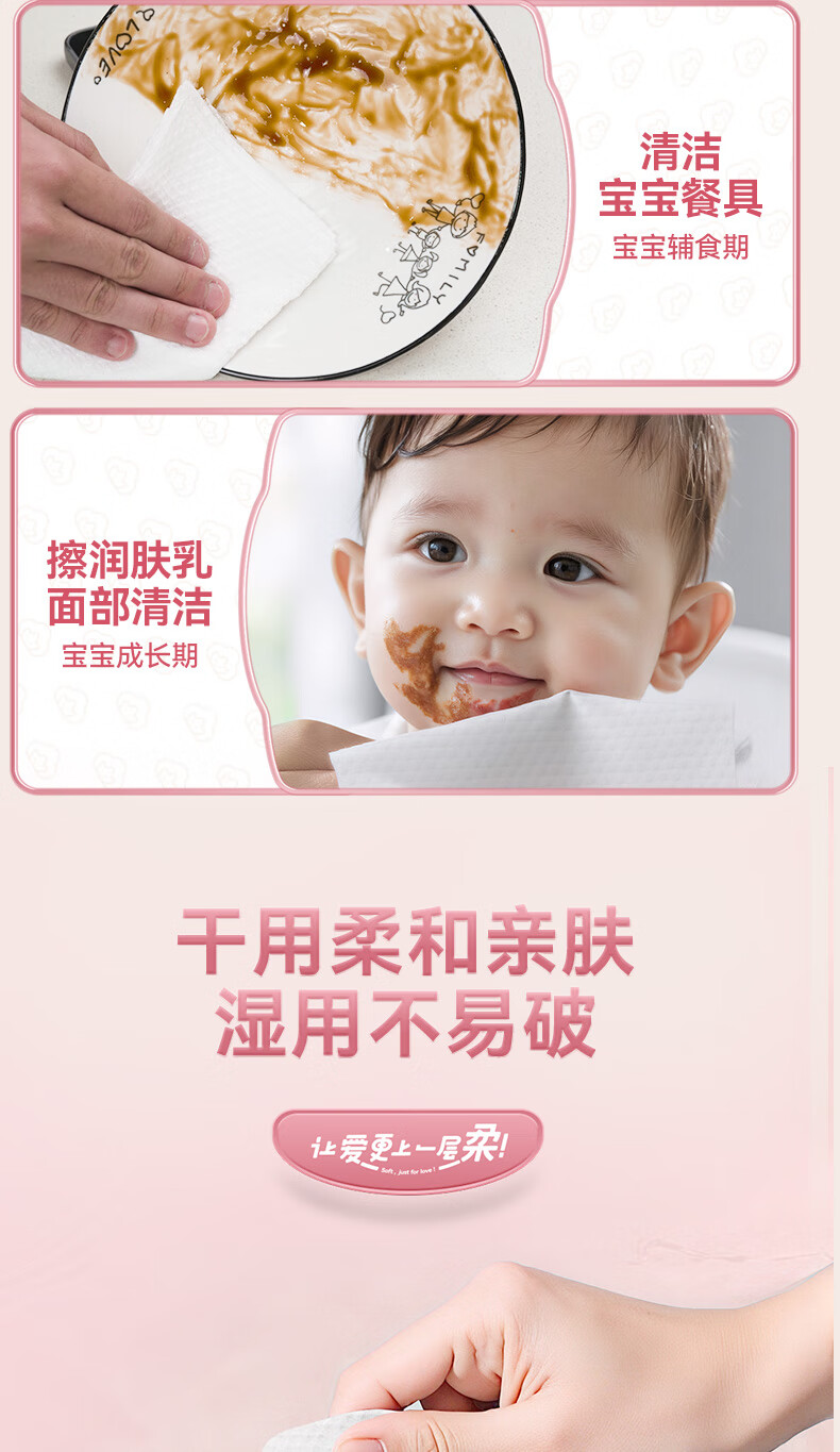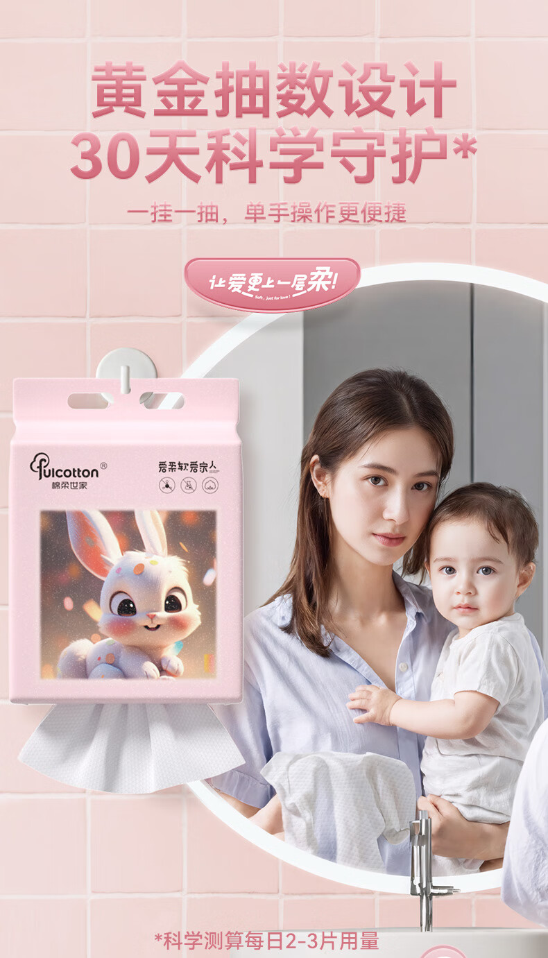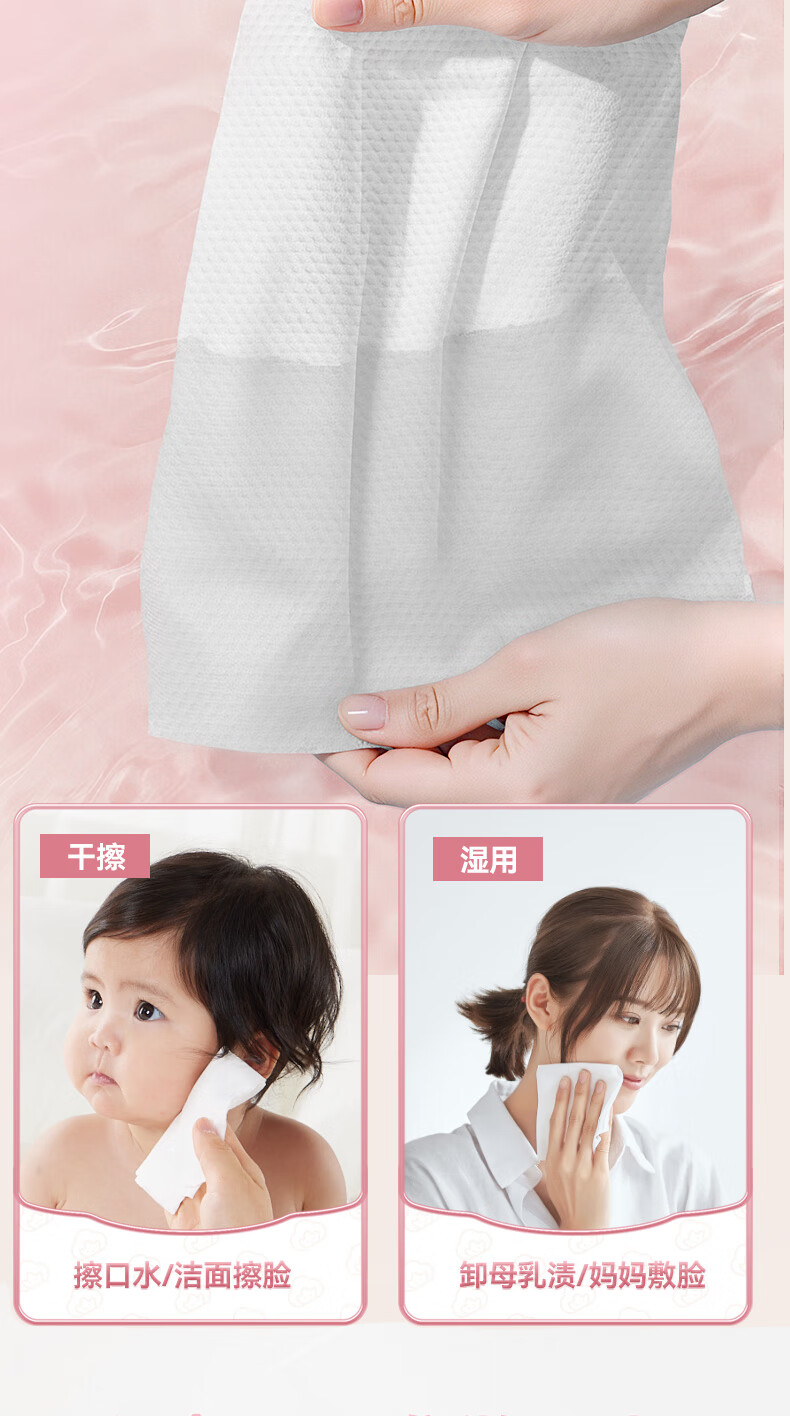 棉柔世家一次性洗脸巾婴儿绵柔巾干湿两用宝宝擦脸巾绵柔纸巾化妆卸妆可用 【粉红兔100抽】2包