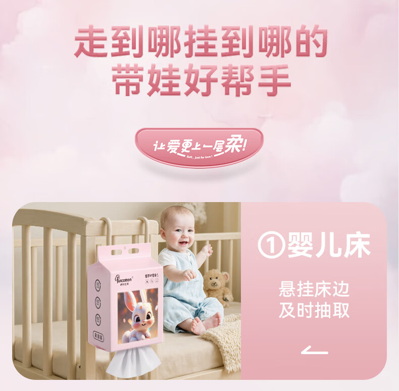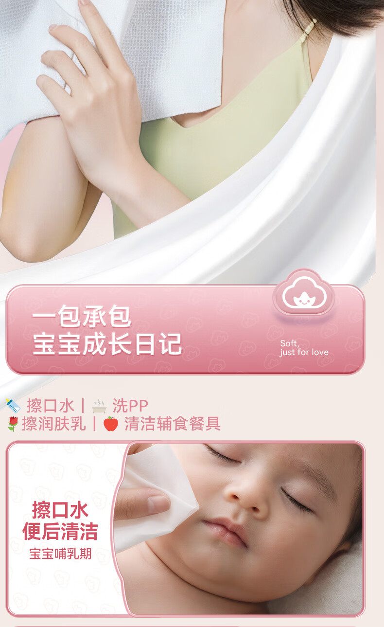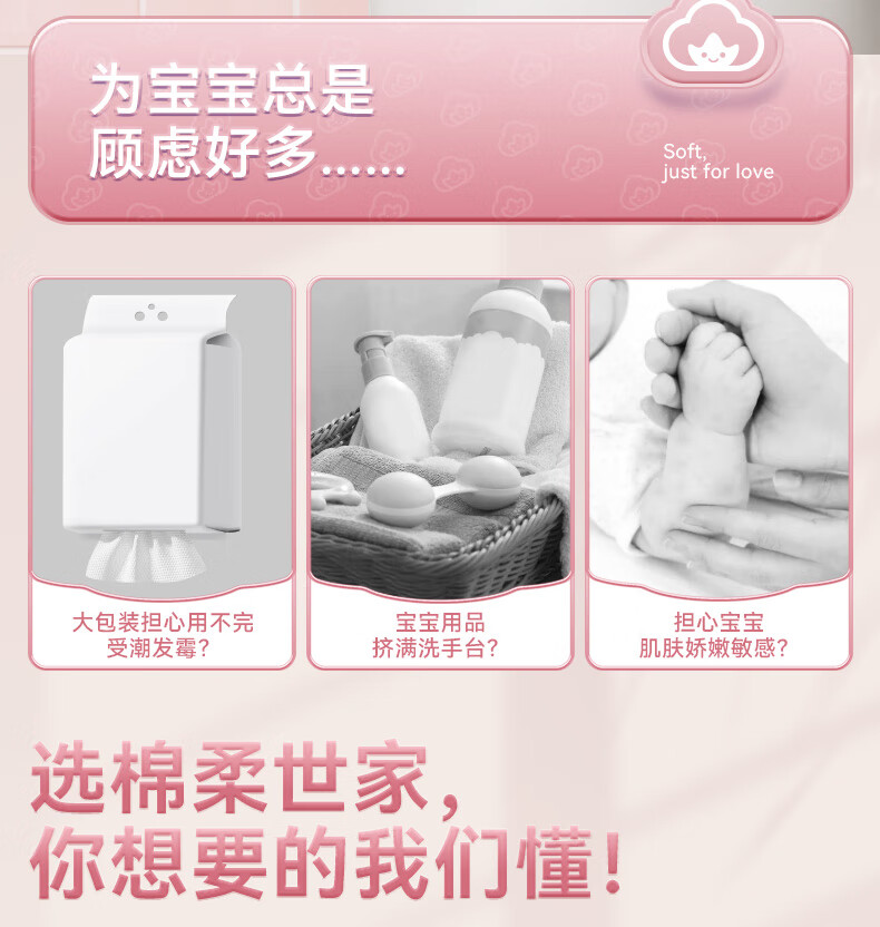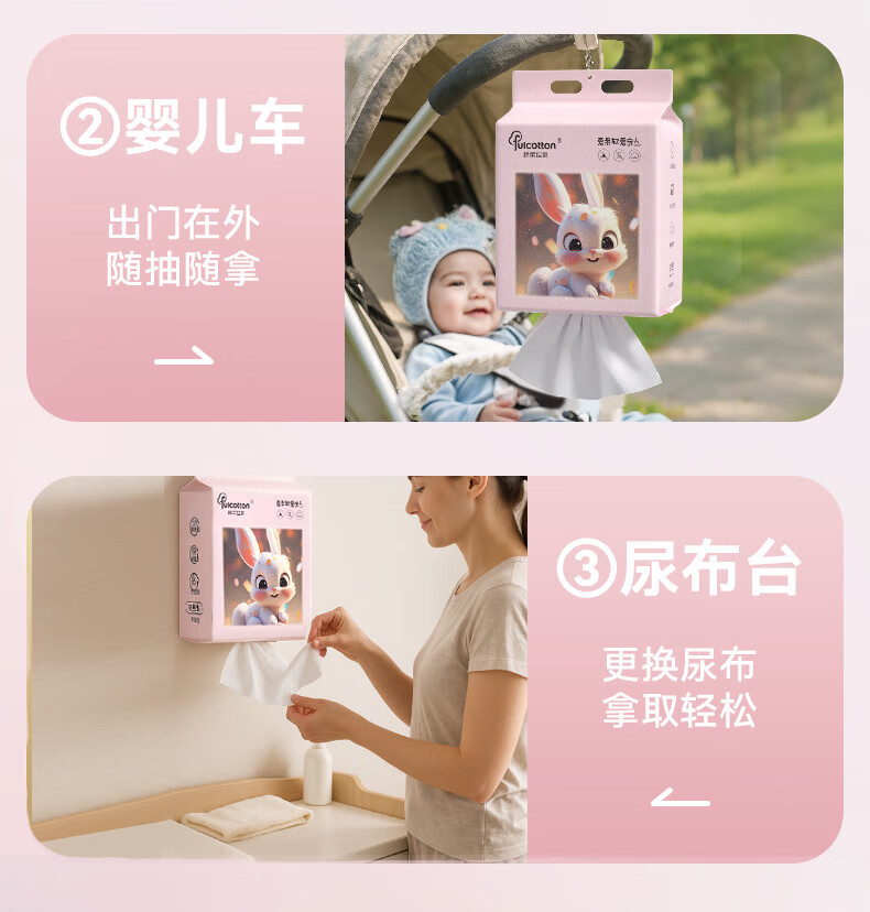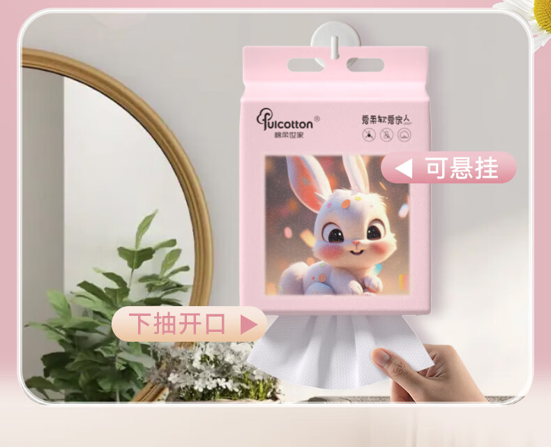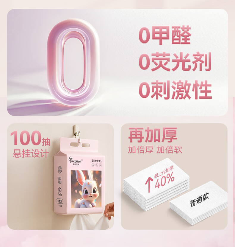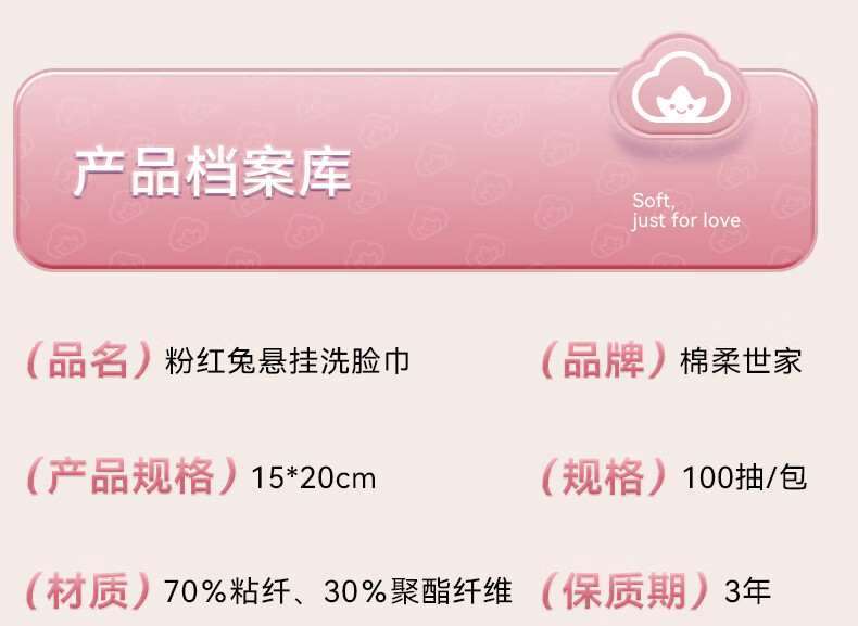 棉柔世家一次性洗脸巾婴儿绵柔巾干湿两用宝宝擦脸巾绵柔纸巾化妆卸妆可用 【粉红兔100抽】2包