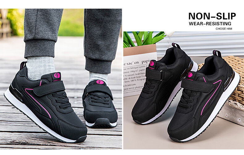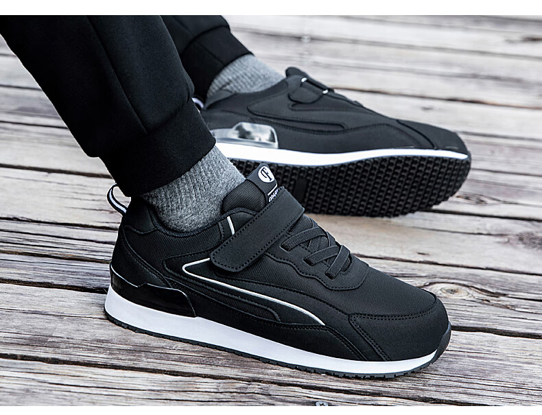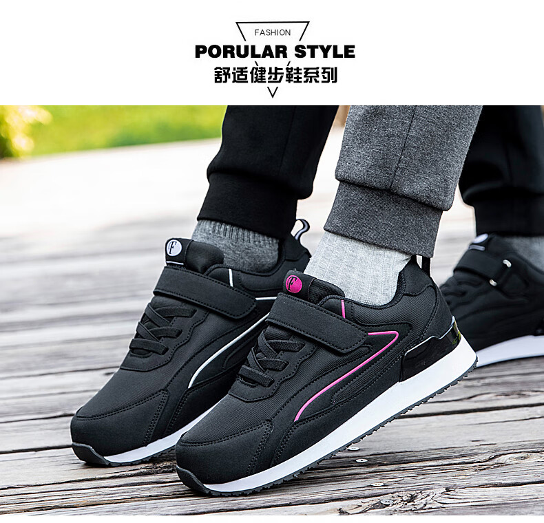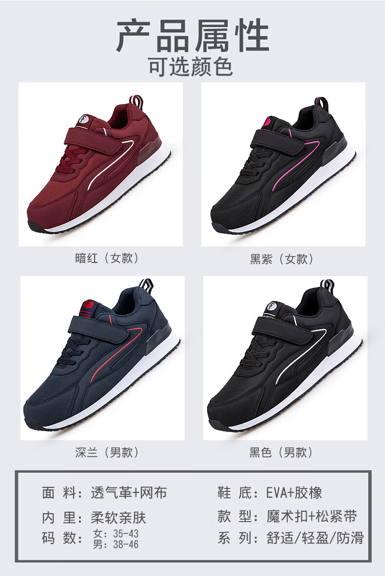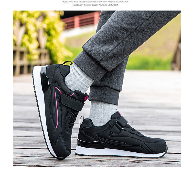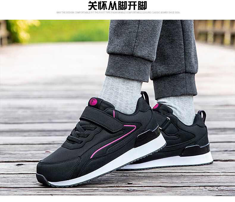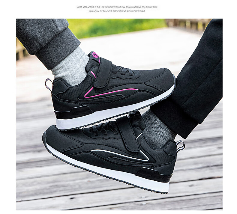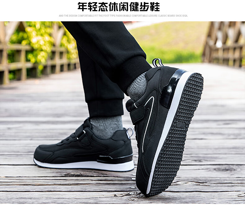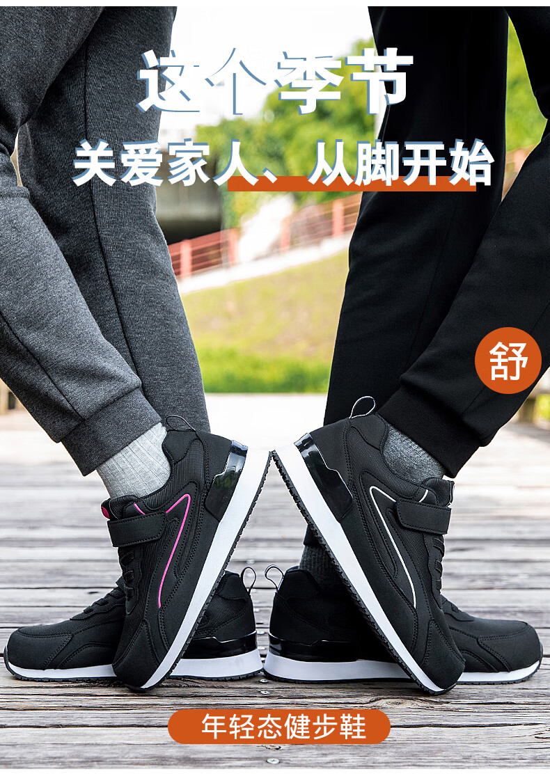 吊带兔老人鞋男秋冬季防滑软底爸爸鞋中老年人轻便舒适妈妈运动鞋女平跟 5559黑色(男款) 35