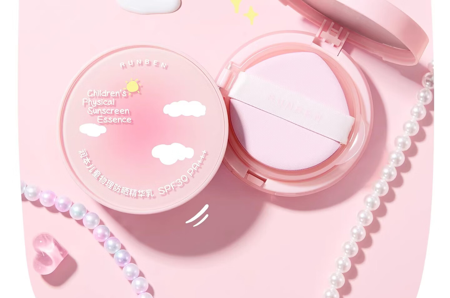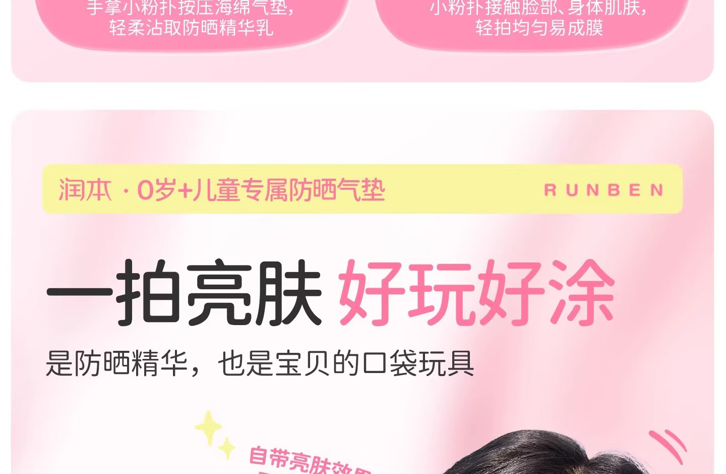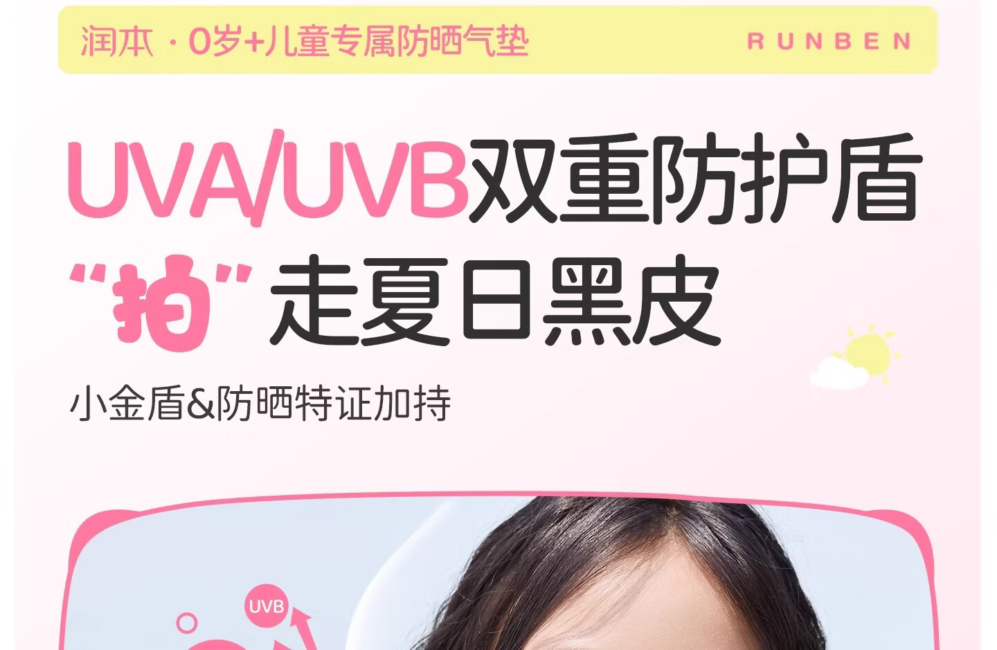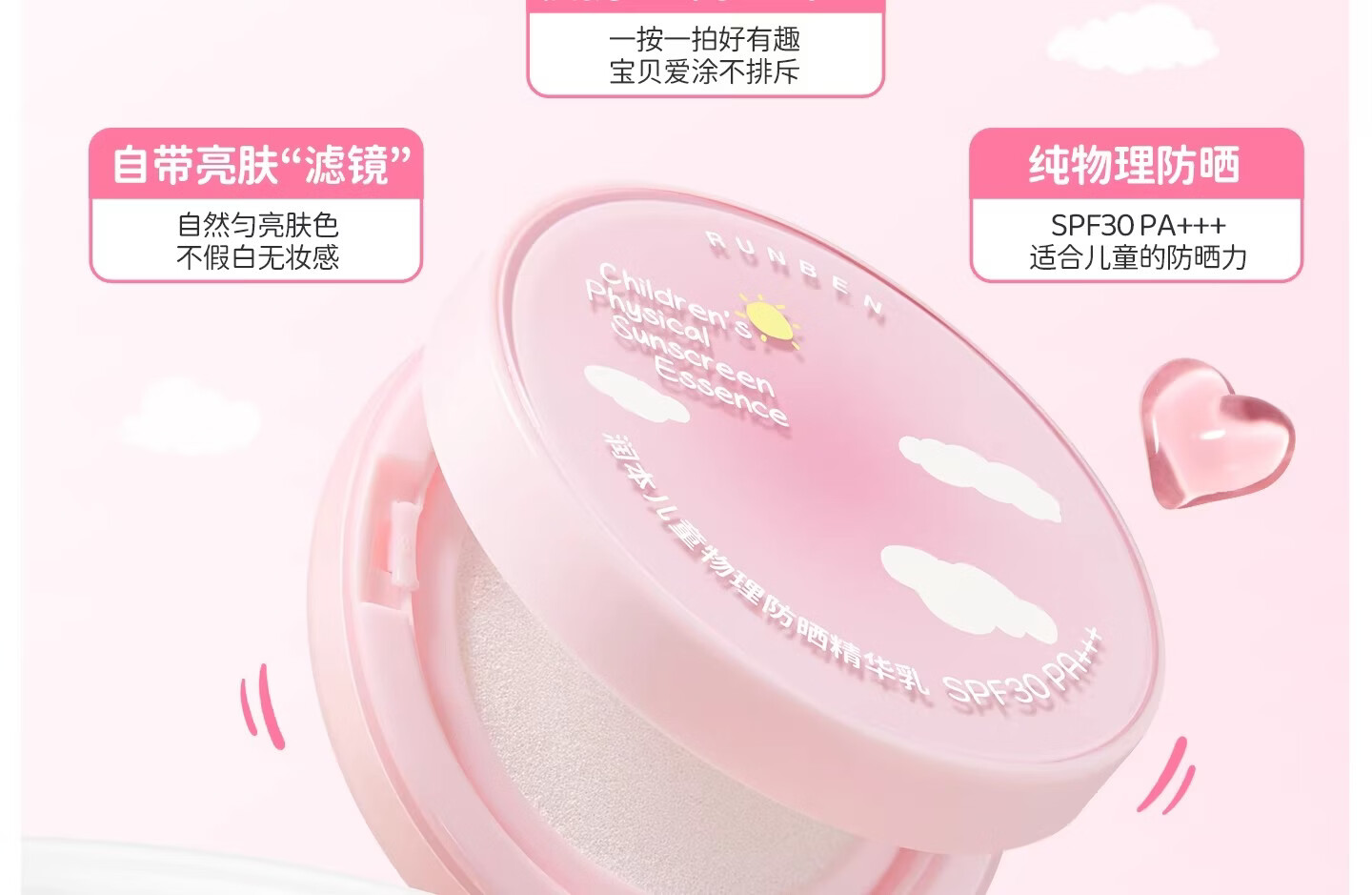 润本(RUNBEN)儿童防晒气垫霜宝宝专用防紫外线小女孩素颜隔离纯物理防晒乳 【不假白 快成膜】防晒气垫正装13g