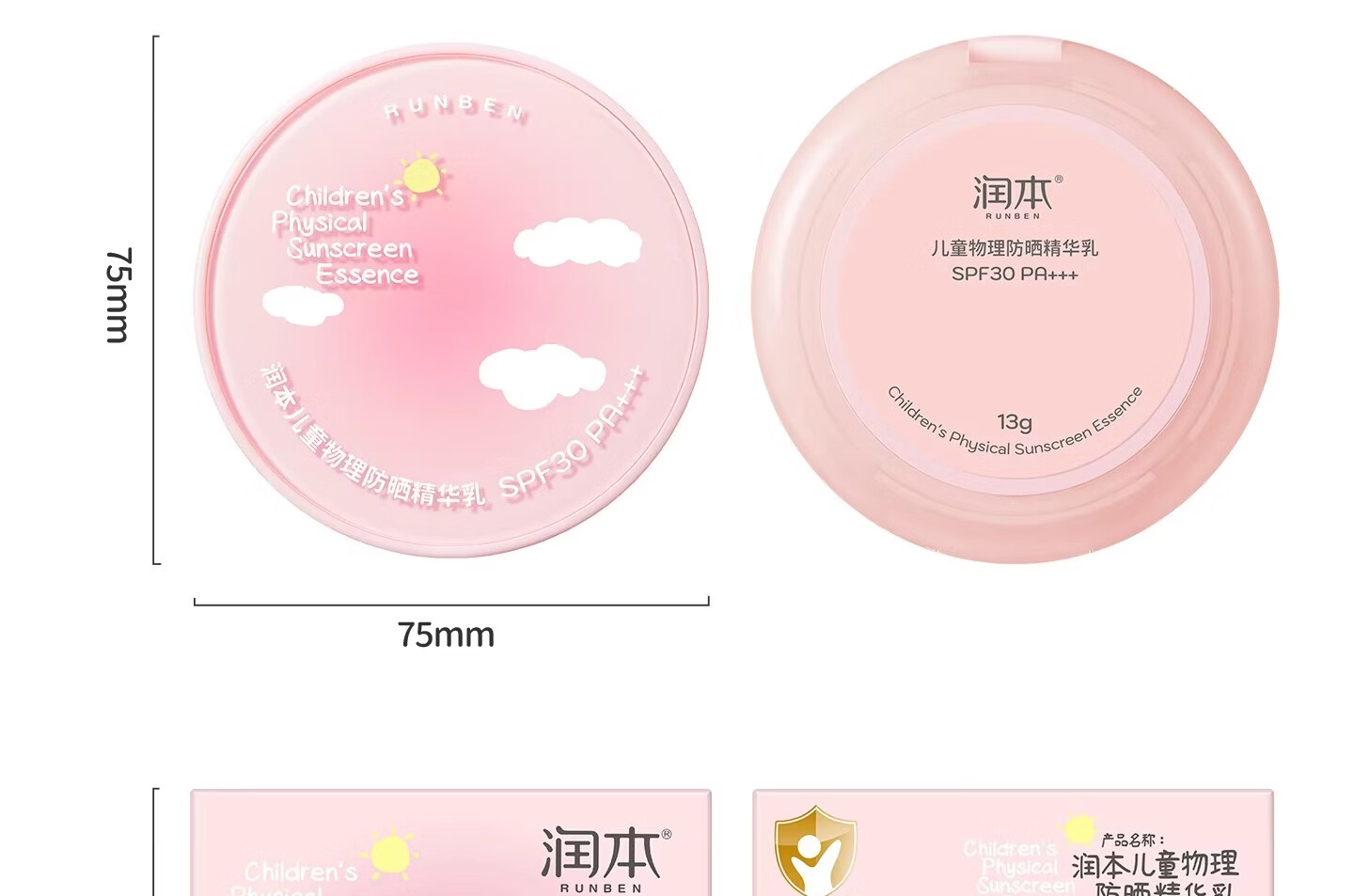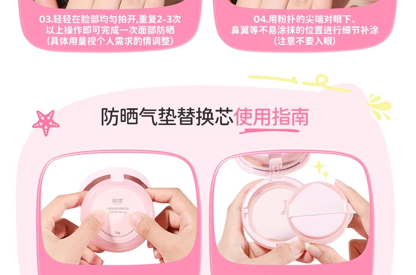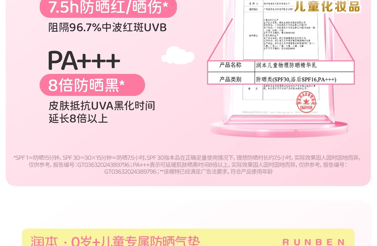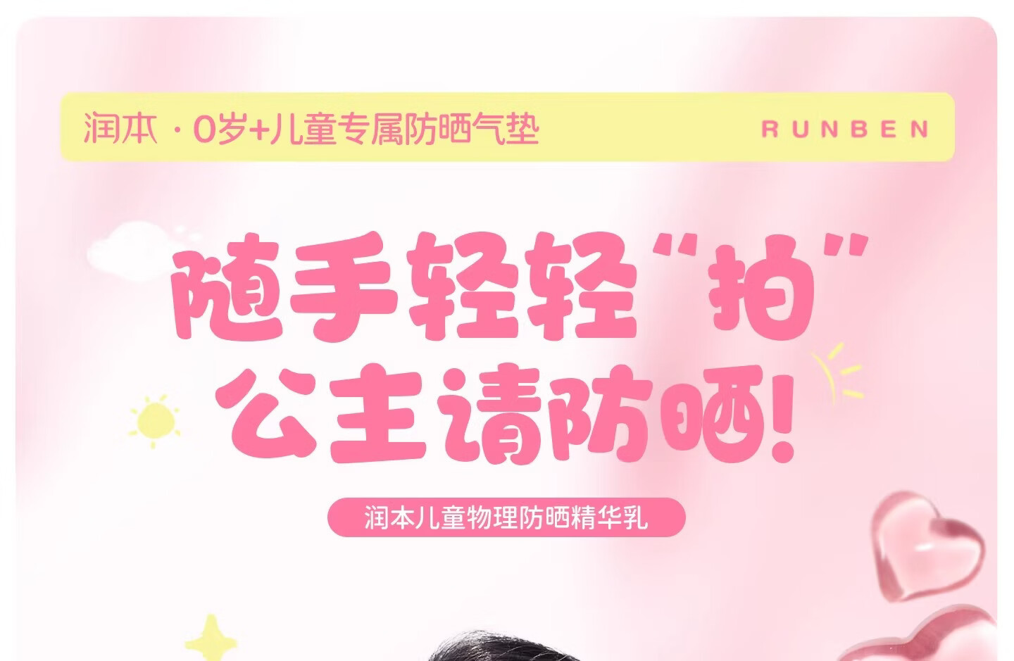 润本(RUNBEN)儿童防晒气垫霜宝宝专用防紫外线小女孩素颜隔离纯物理防晒乳 【不假白 快成膜】防晒气垫正装13g