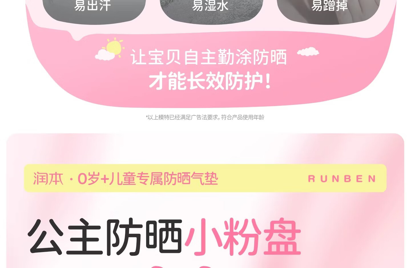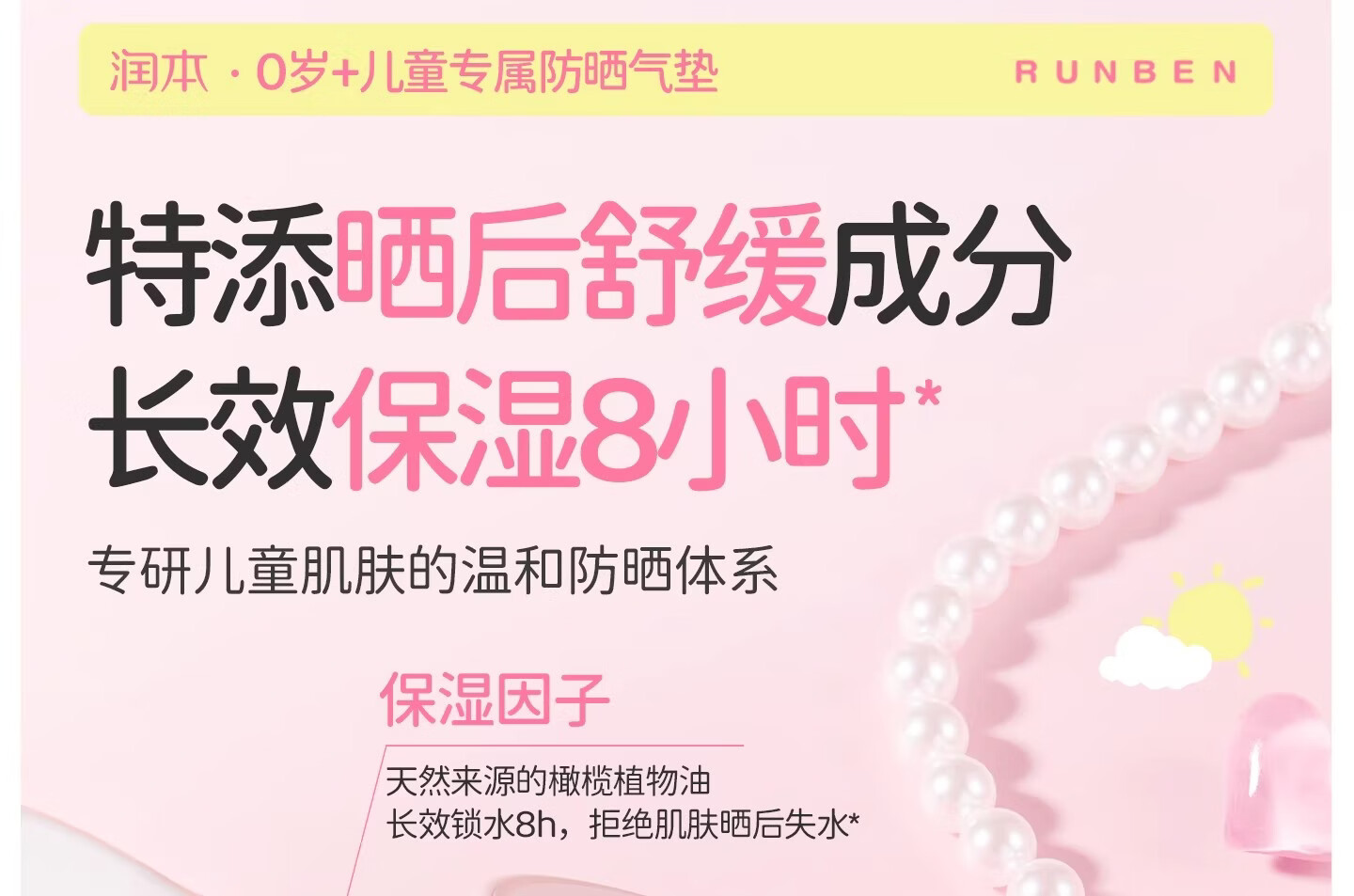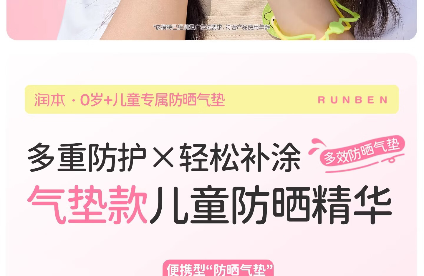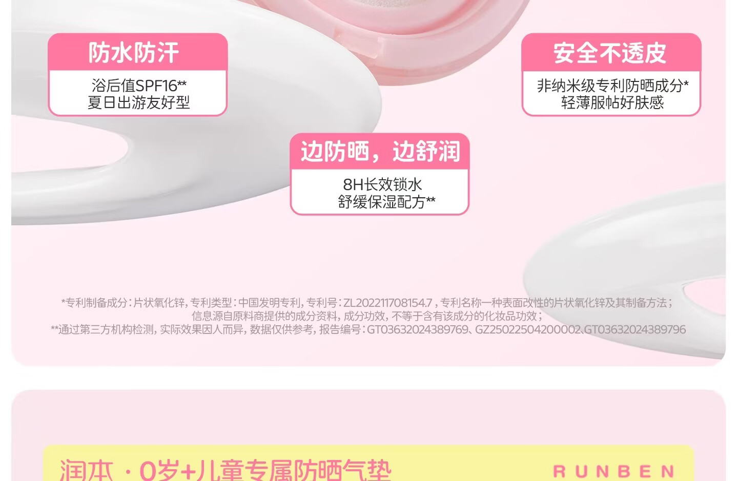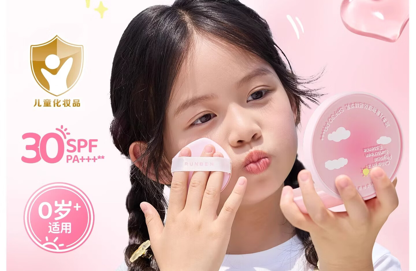 润本(RUNBEN)儿童防晒气垫霜宝宝专用防紫外线小女孩素颜隔离纯物理防晒乳 【不假白 快成膜】防晒气垫正装13g