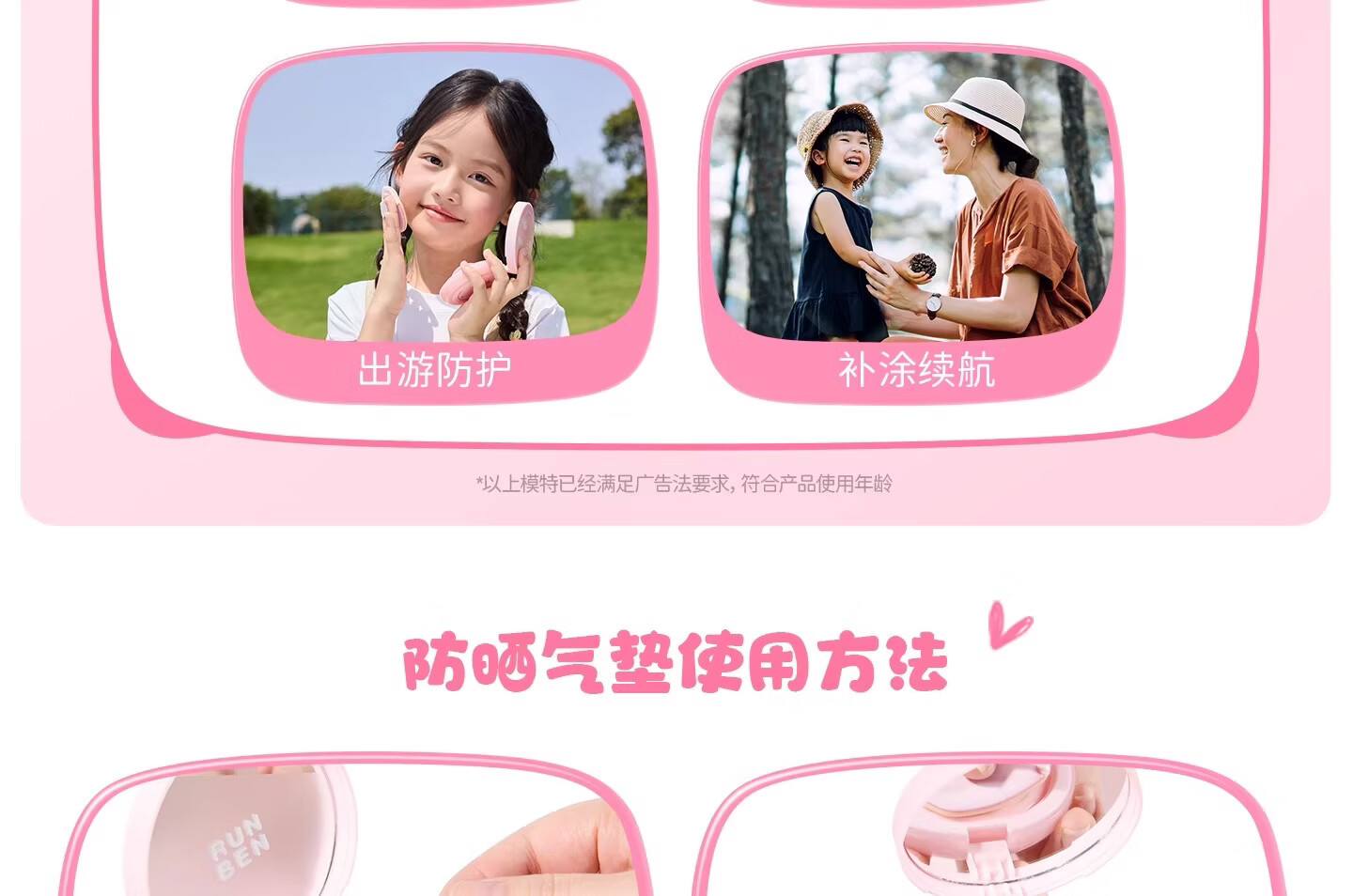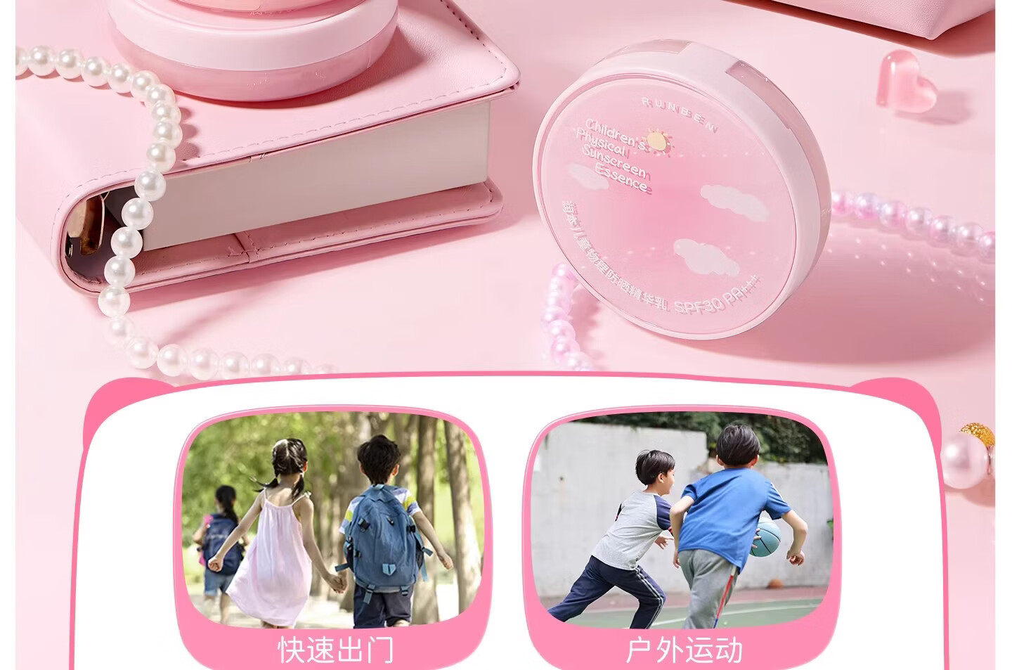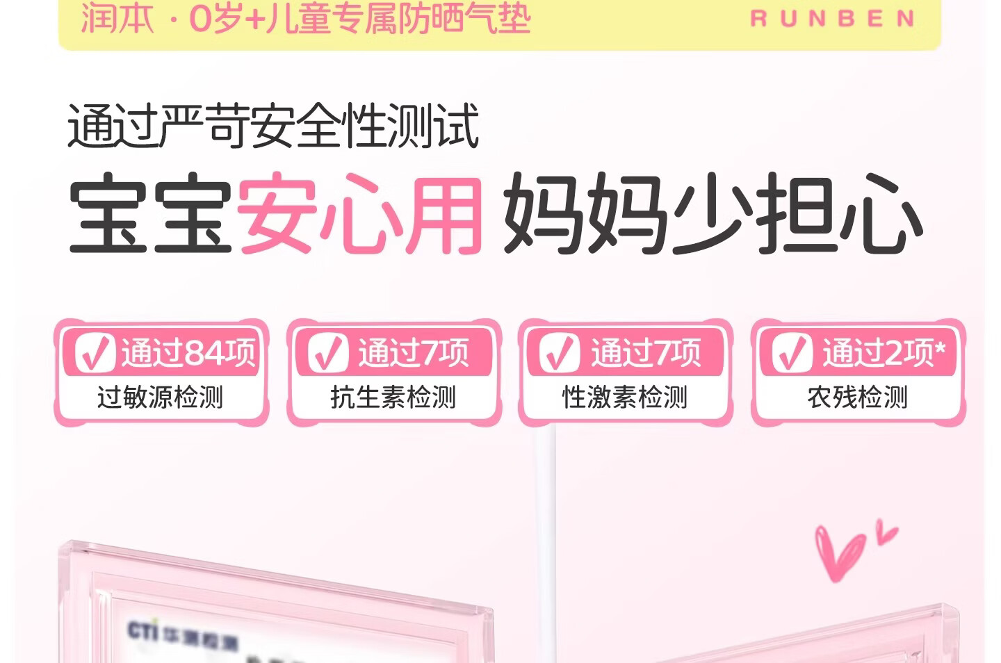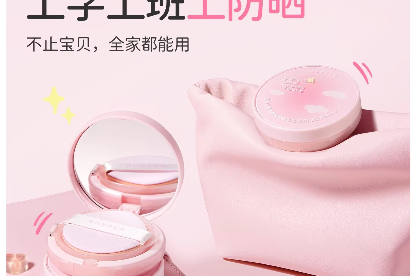 润本(RUNBEN)儿童防晒气垫霜宝宝专用防紫外线小女孩素颜隔离纯物理防晒乳 【不假白 快成膜】防晒气垫正装13g