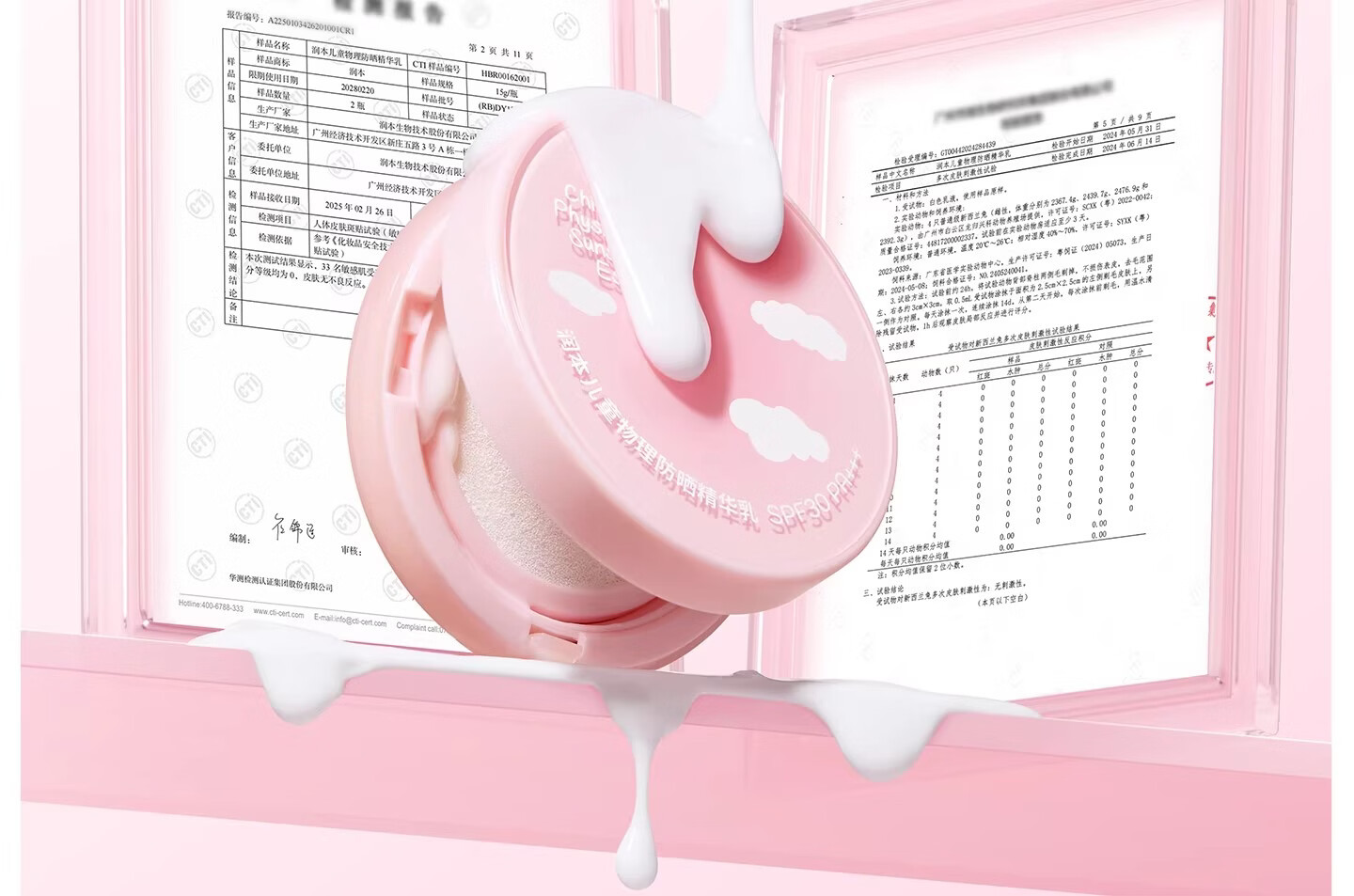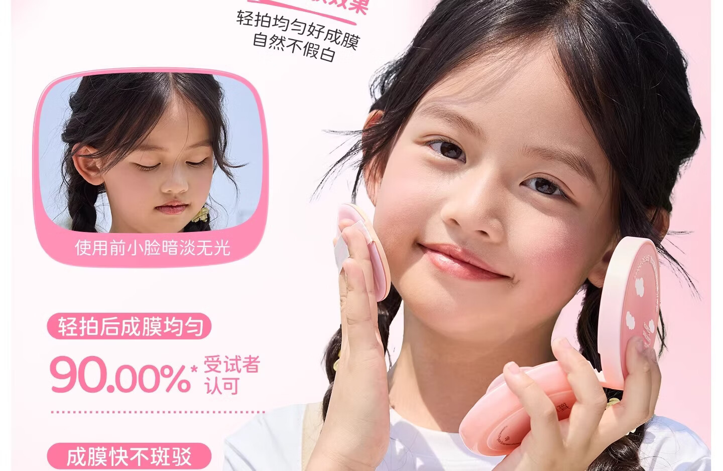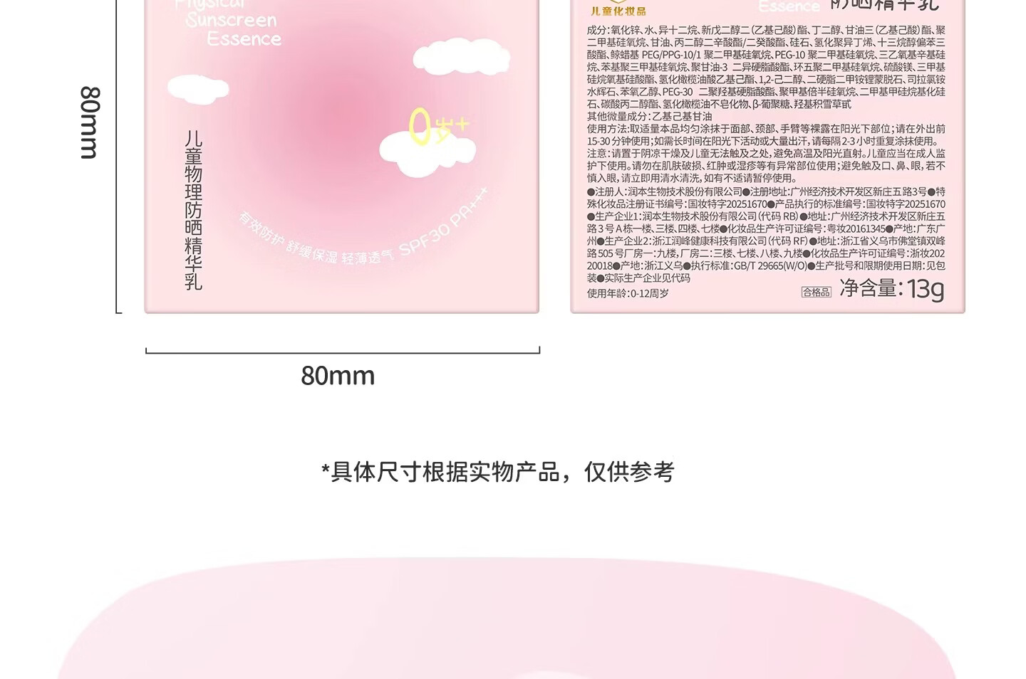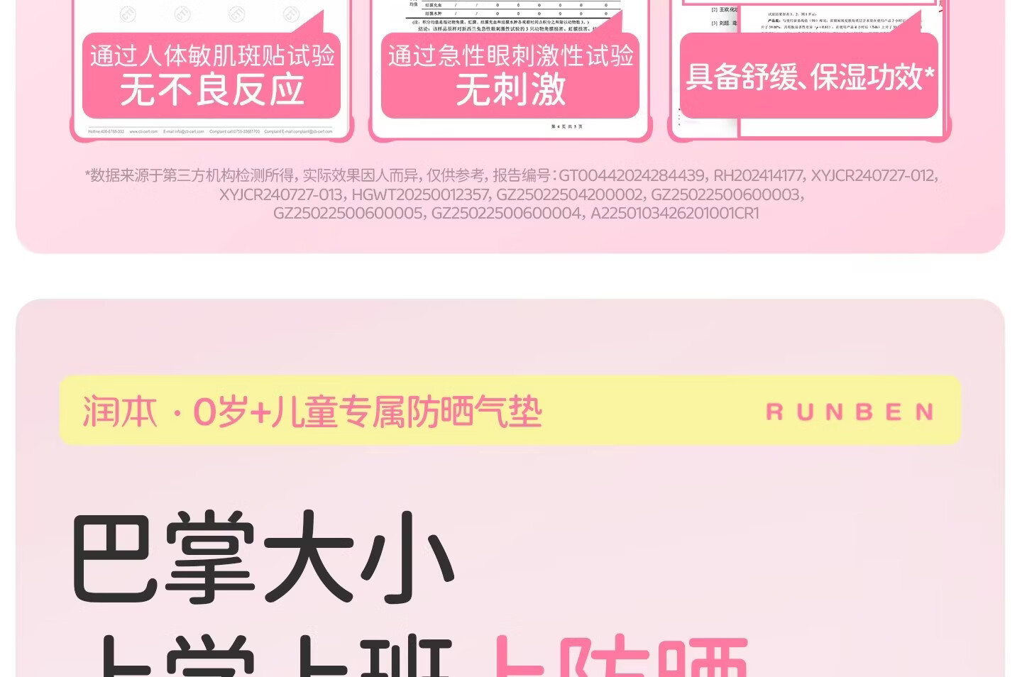 润本(RUNBEN)儿童防晒气垫霜宝宝专用防紫外线小女孩素颜隔离纯物理防晒乳 【不假白 快成膜】防晒气垫正装13g