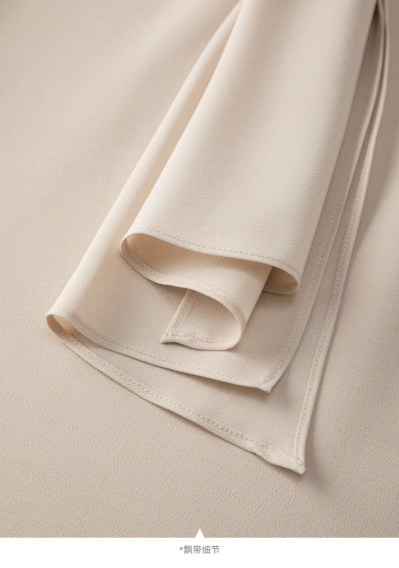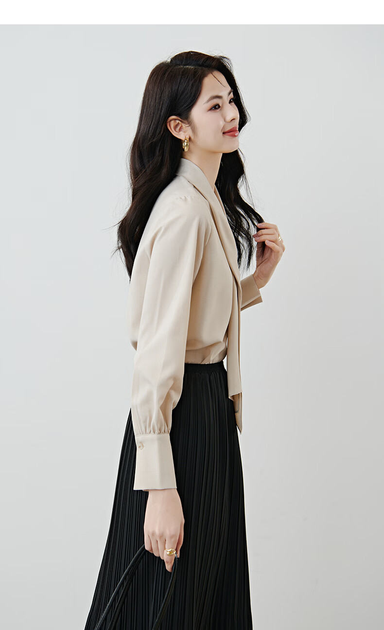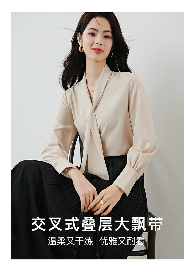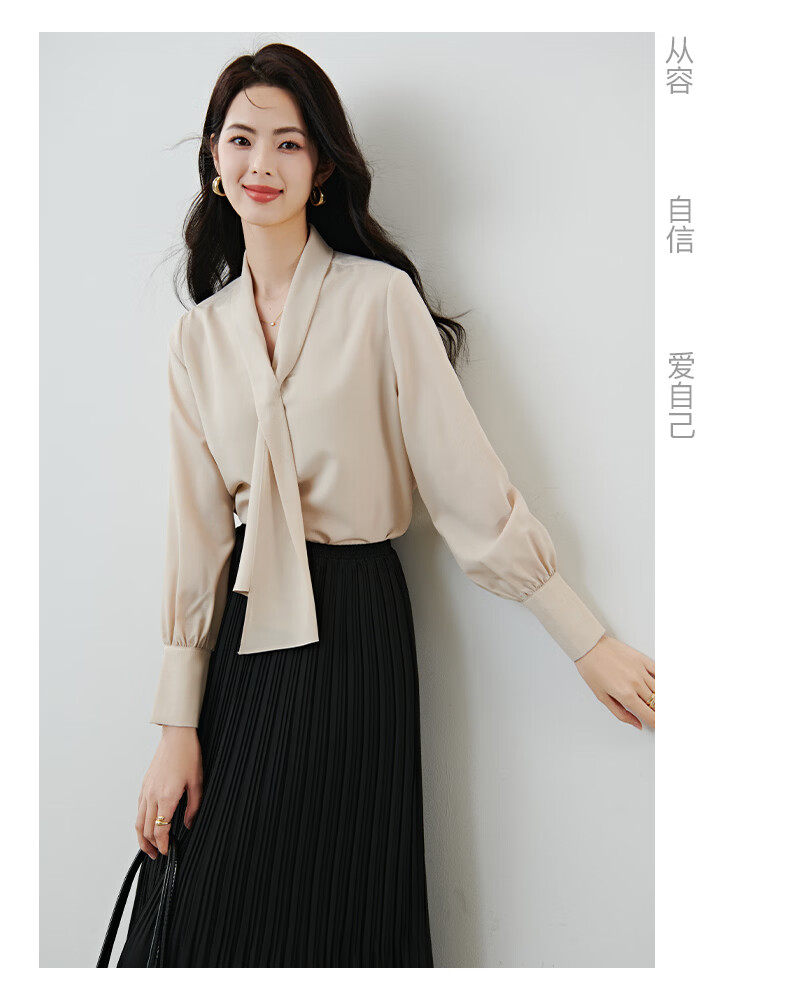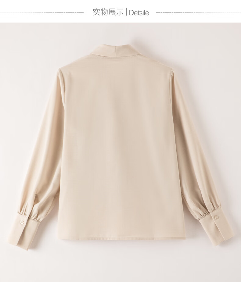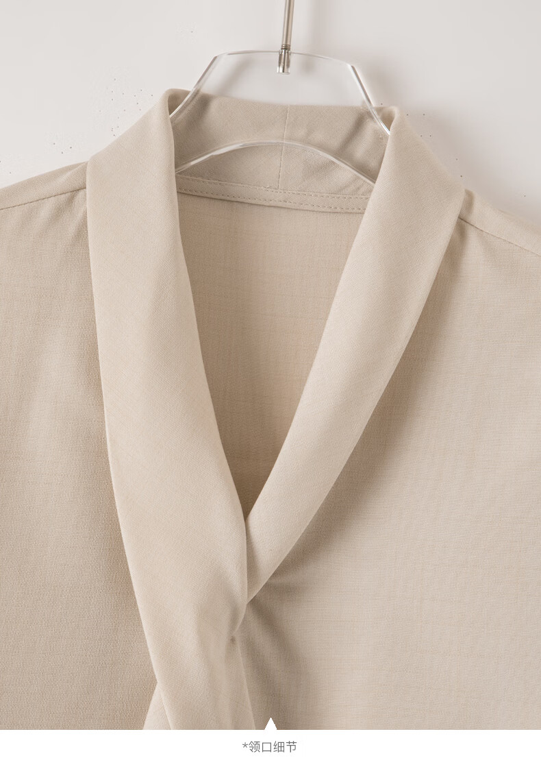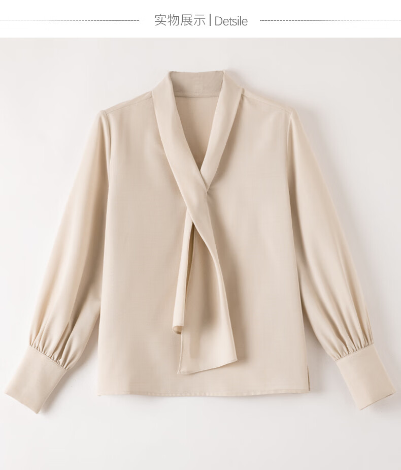 晚白【新品】2026年春款时尚飘带系带领职业装垂感上衣职场通勤衬衫女 浅卡其 S