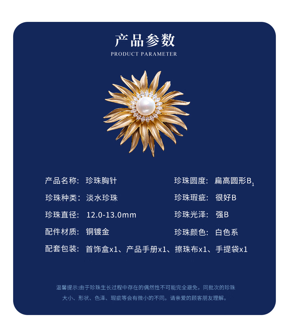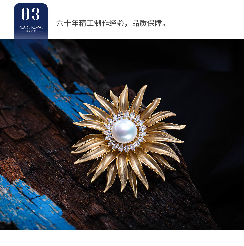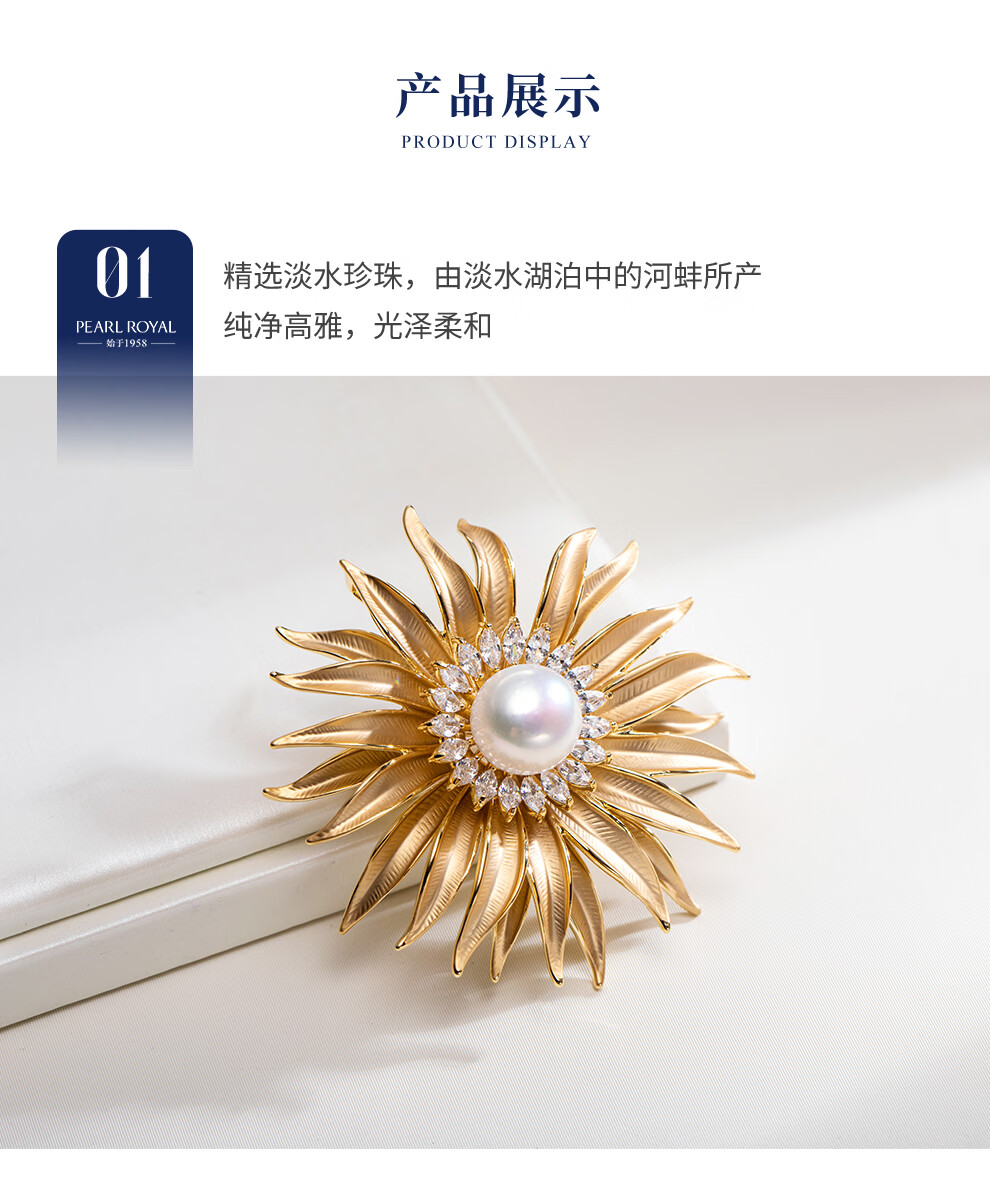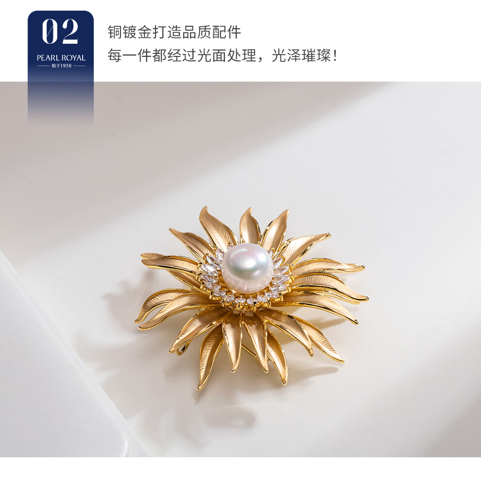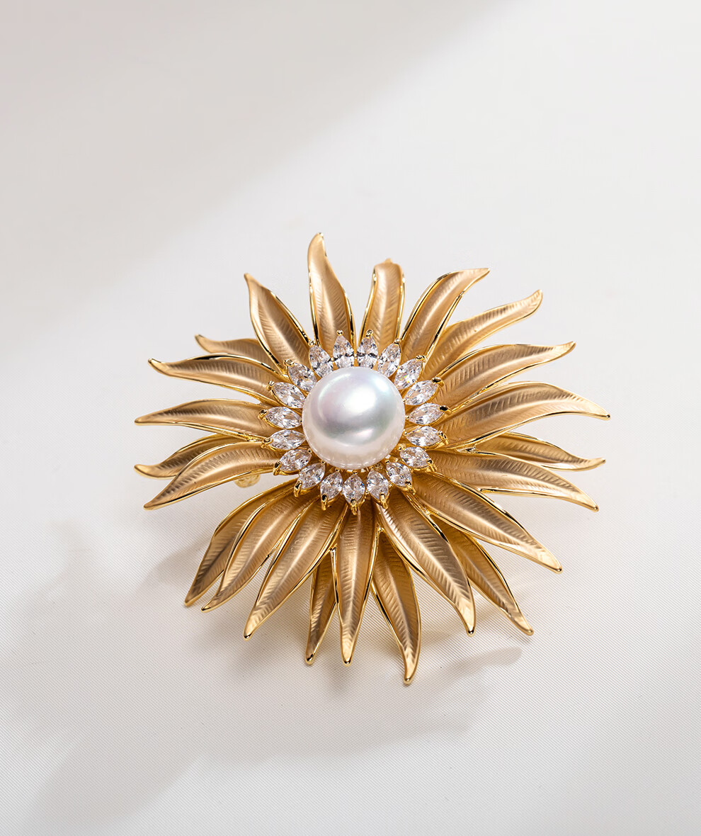 南珠宫太阳花淡水珍珠胸针精致优雅新年礼物送妈妈H117D-J 12.0-13.0mm
