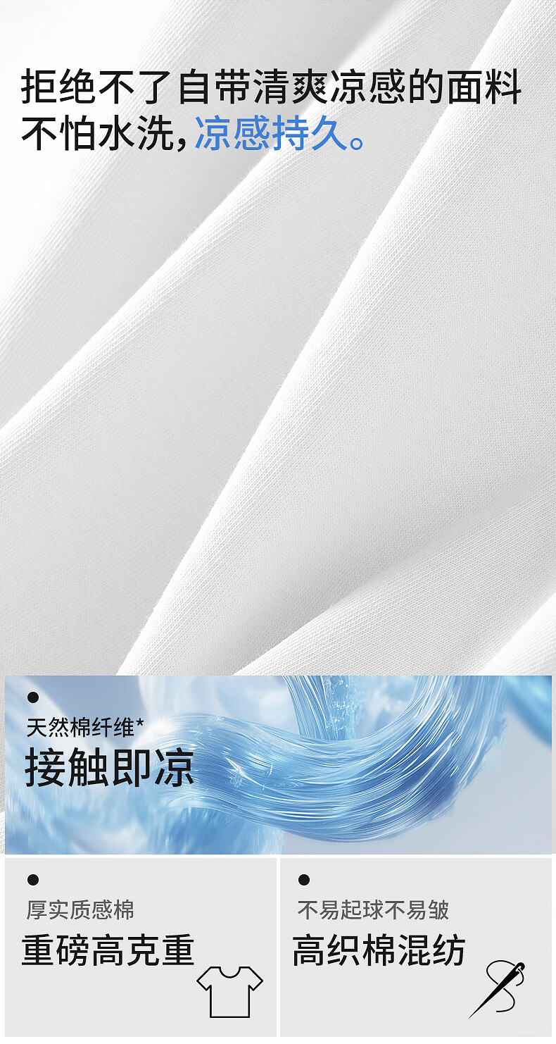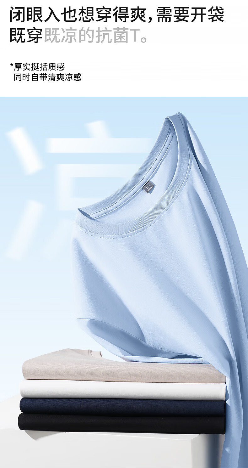 真维斯(Jeanswest)凉感T|抗菌短袖t恤男运动健身透气半袖2026夏季新款纯色百搭上衣 冰蓝 纯色 M