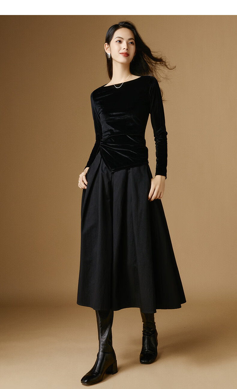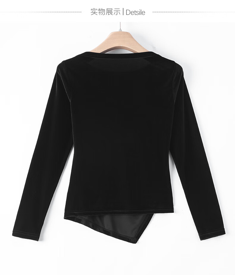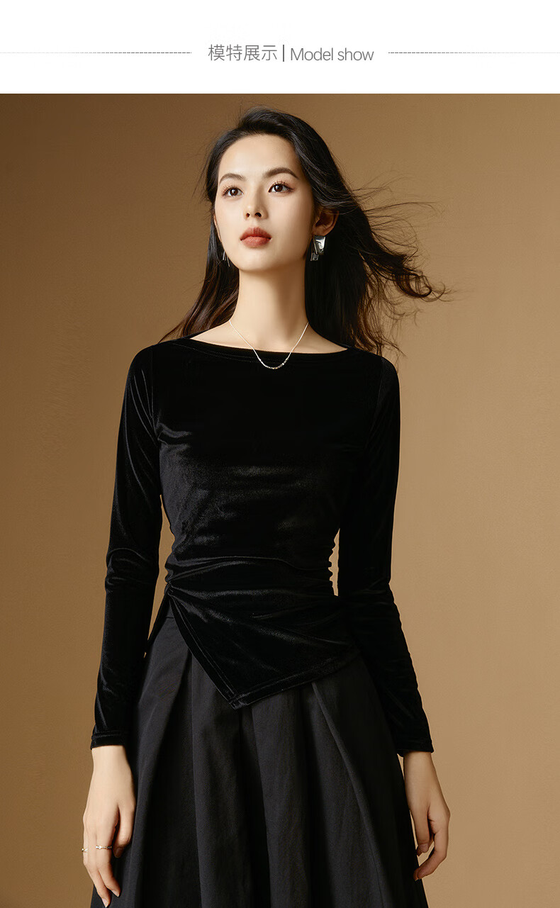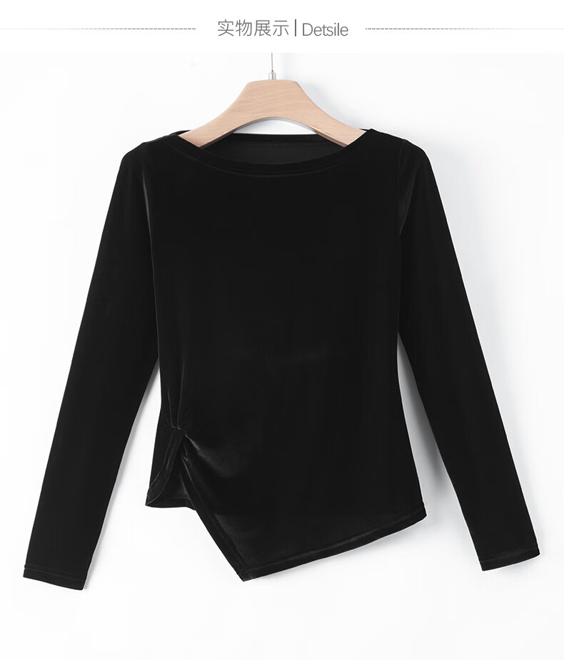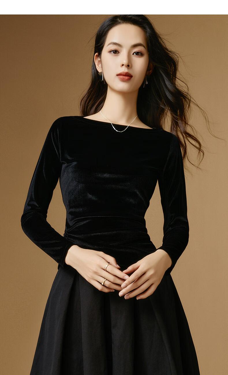 晚白【新品】一字领丝绒打底衫女2026春款时尚气质百搭显瘦可外穿上衣 黑色 XL