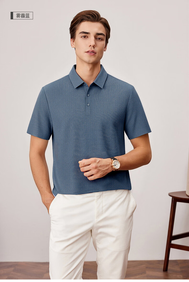 杉杉抗菌Polo衫夏季新款翻领休闲短袖上衣 浅灰 M