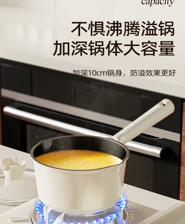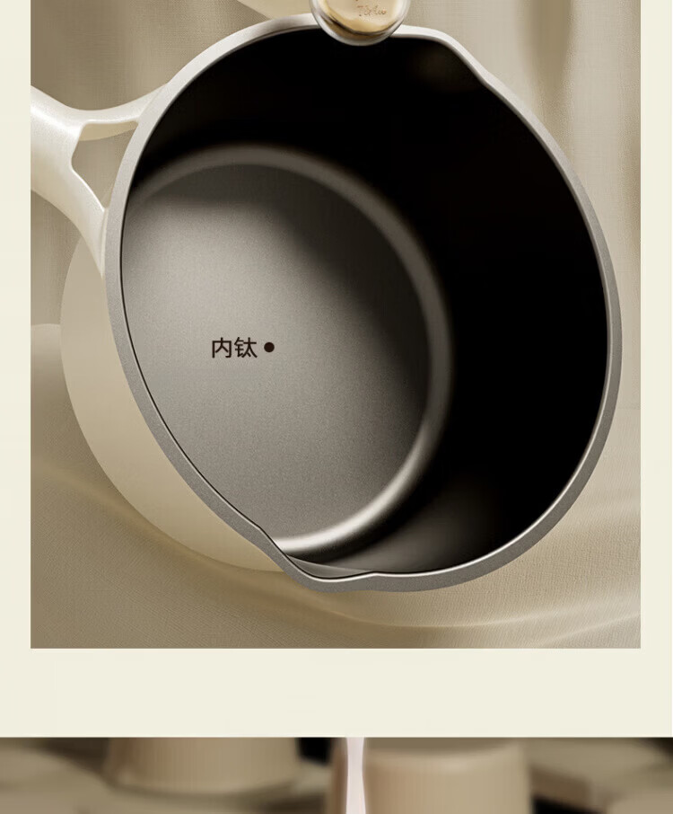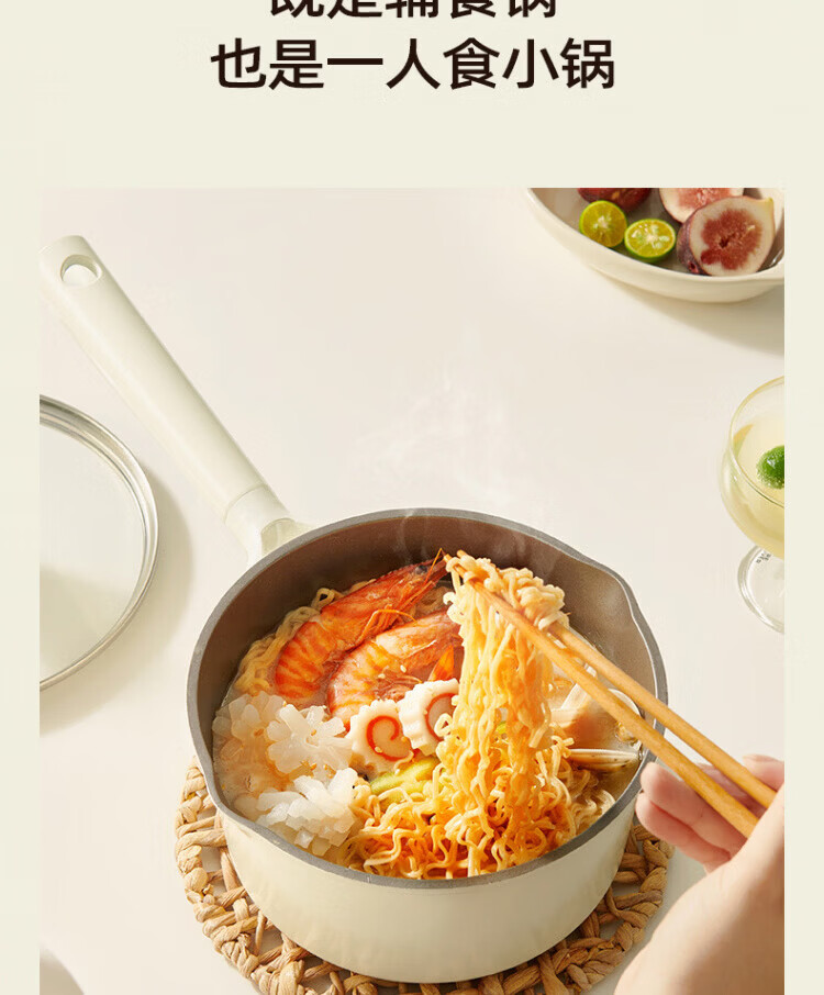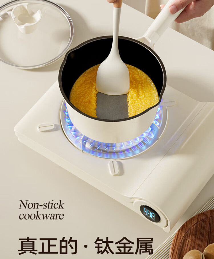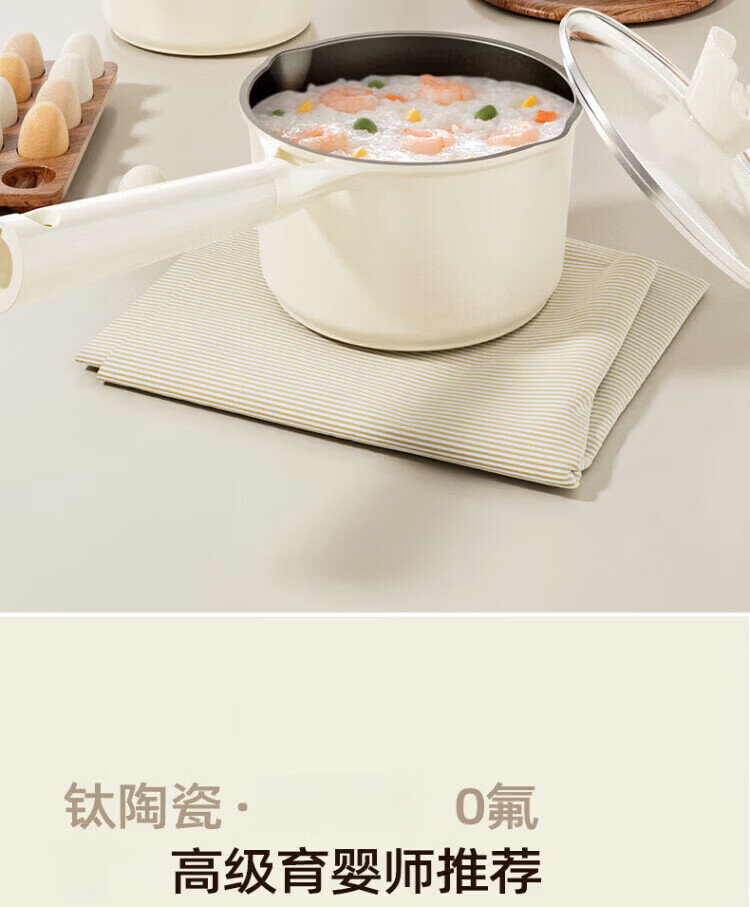 OCMOGO日本品牌有钛奶锅家用辅食锅煎煮一体一人食泡面锅燃气灶电磁炉 钛瓷奶锅【带蒸笼】 16cm 1.5L