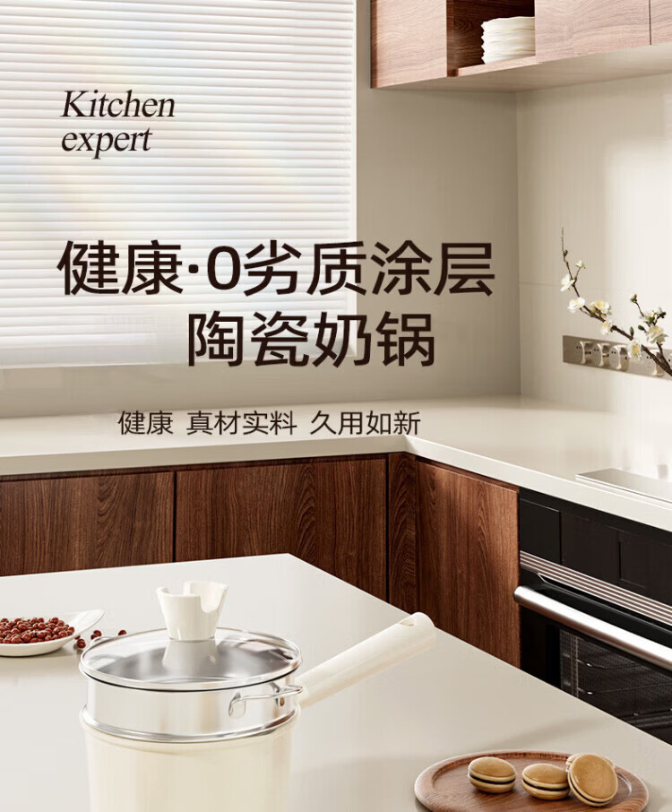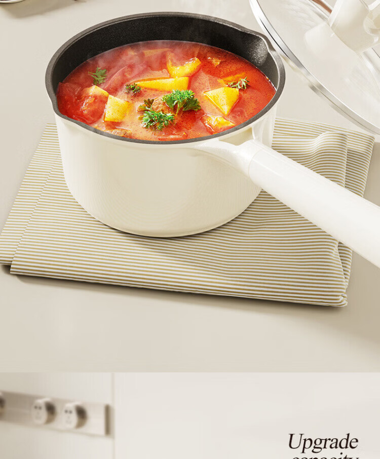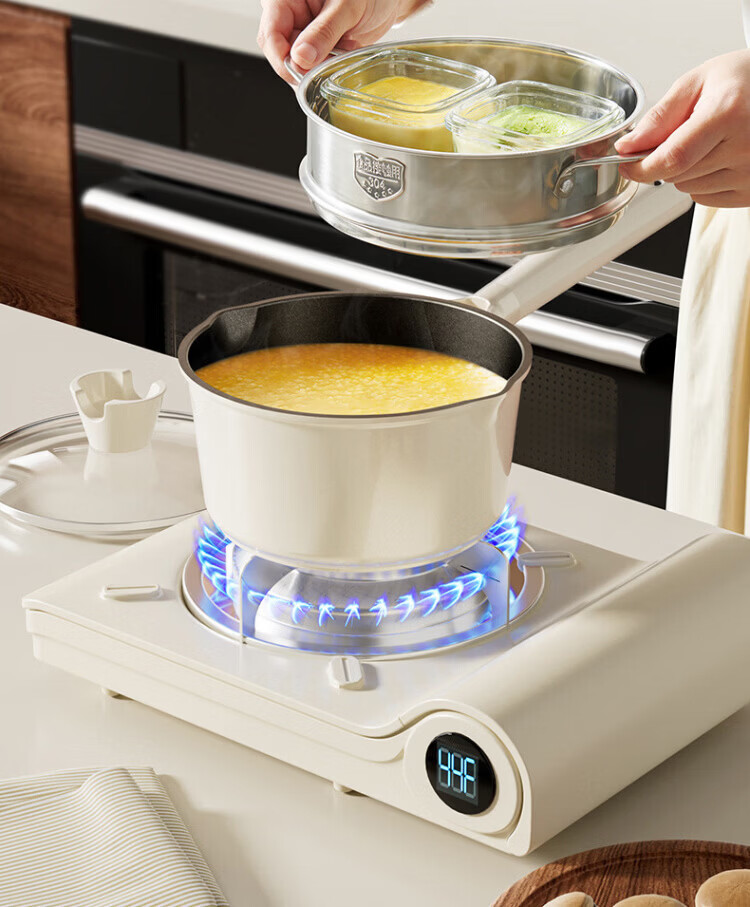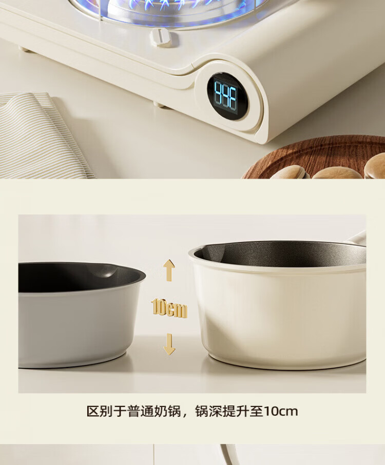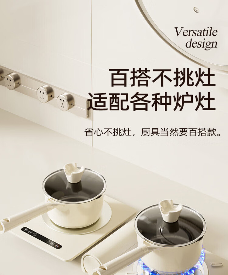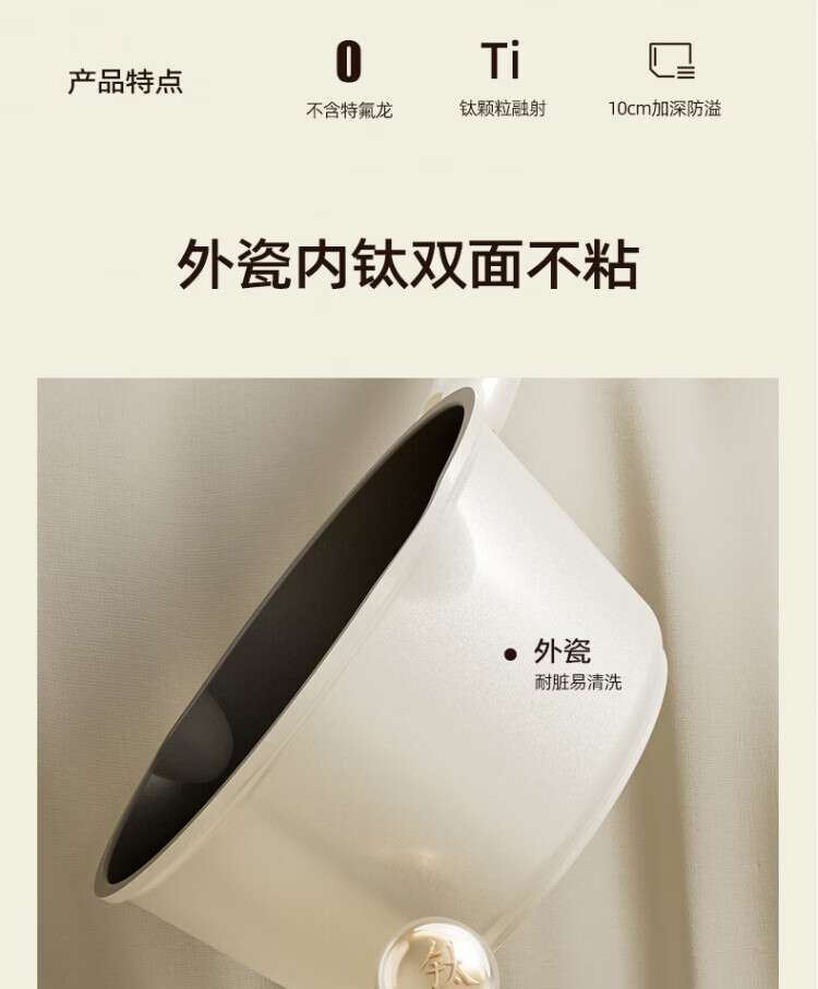 OCMOGO日本品牌有钛奶锅家用辅食锅煎煮一体一人食泡面锅燃气灶电磁炉 钛瓷奶锅【带蒸笼】 16cm 1.5L