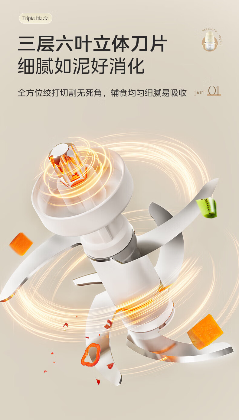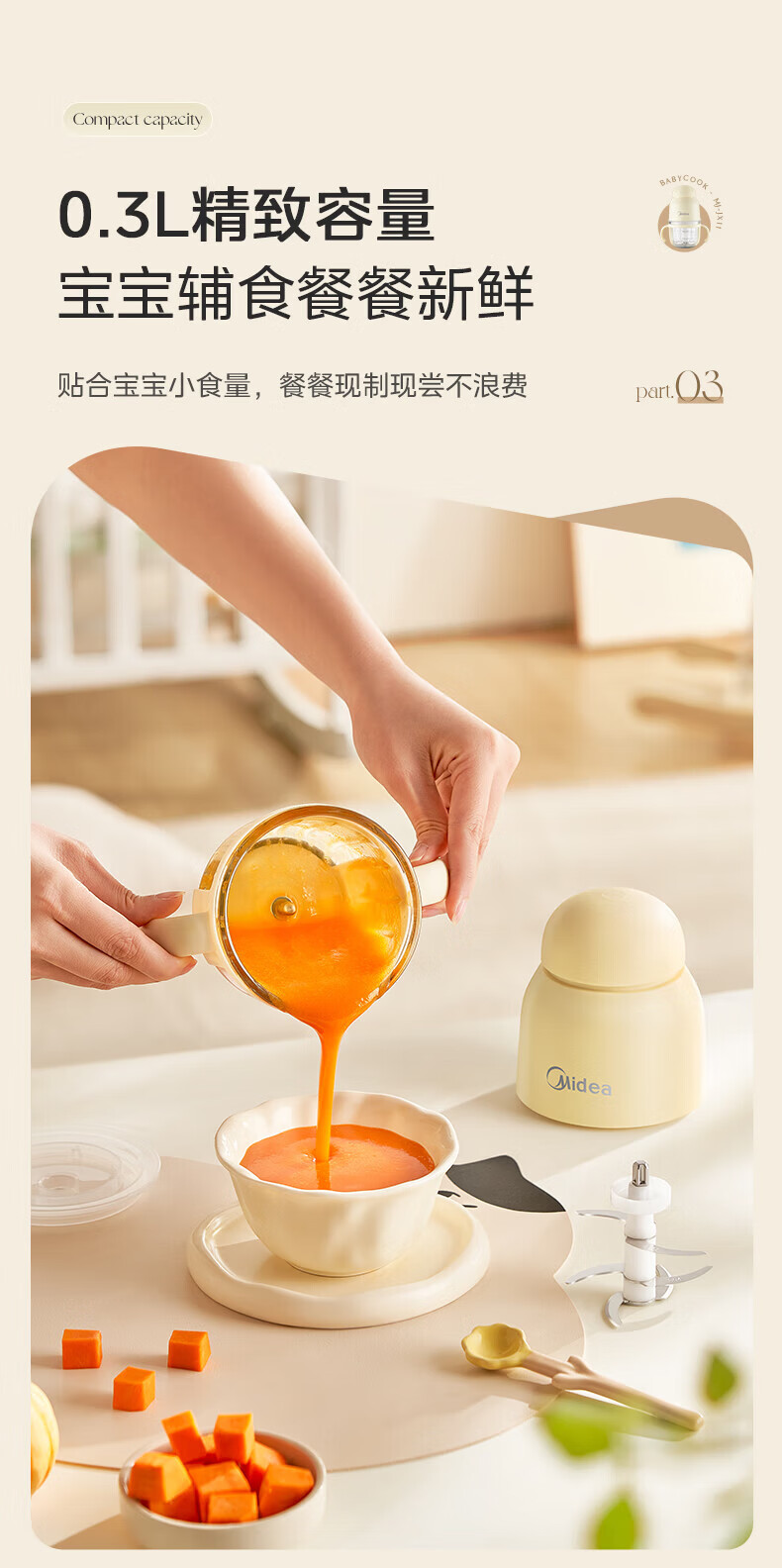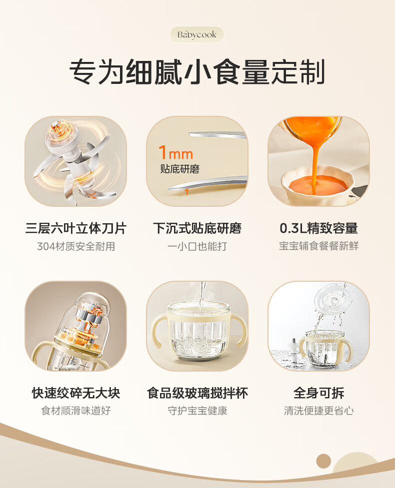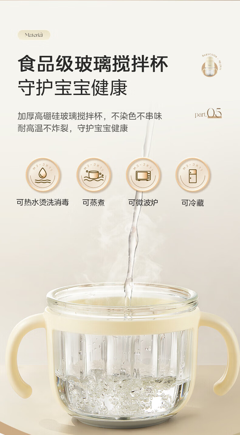 美的(Midea)婴儿辅食机 【小型便携】家用绞肉机 小型电动多功能打泥搅拌机宝宝料理机佐料机捣蒜器绞馅蒜蓉机 【食品级玻璃搅拌杯】 0.3L 助力宝宝多款辅食