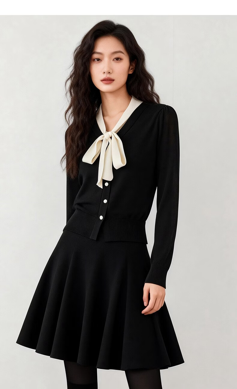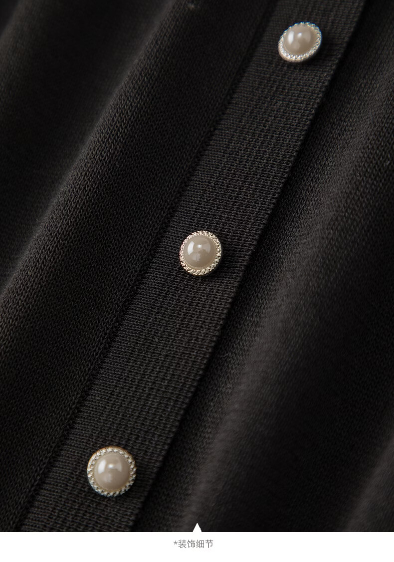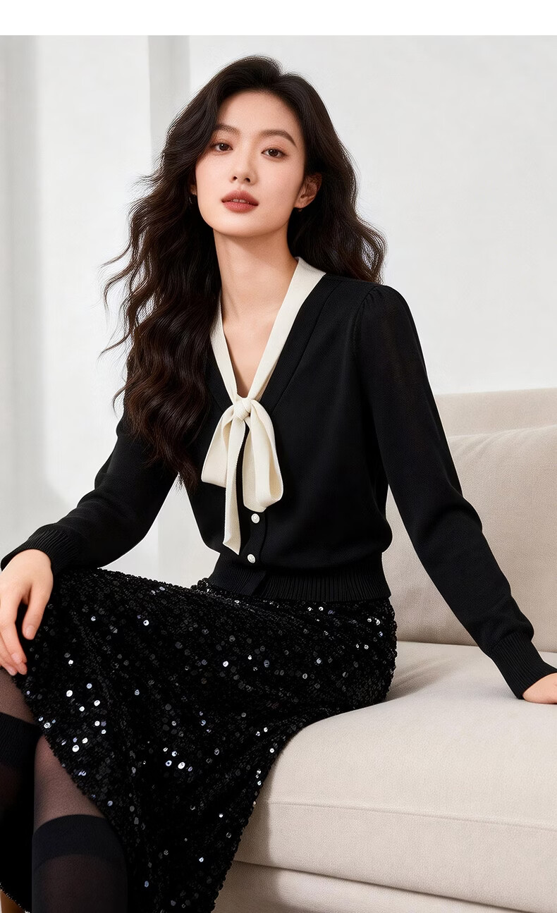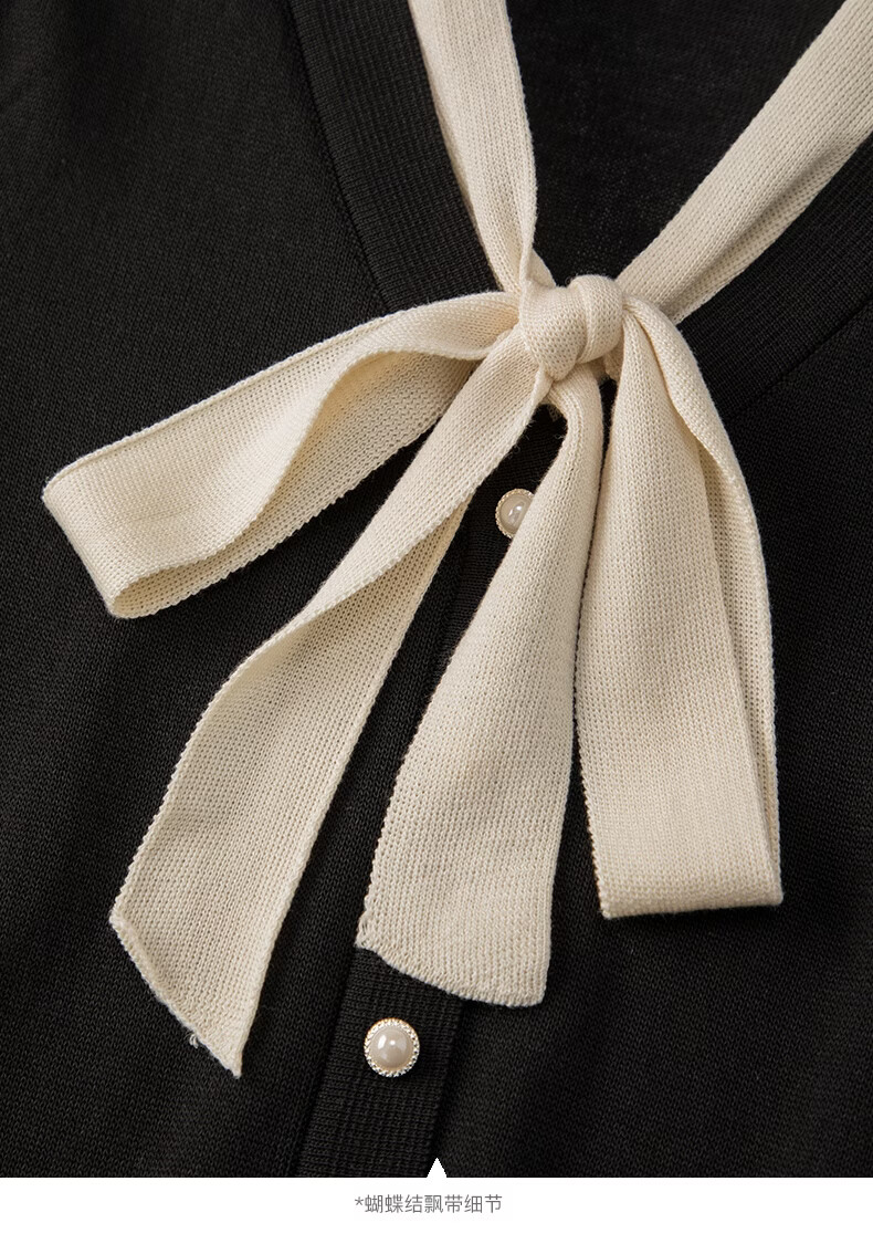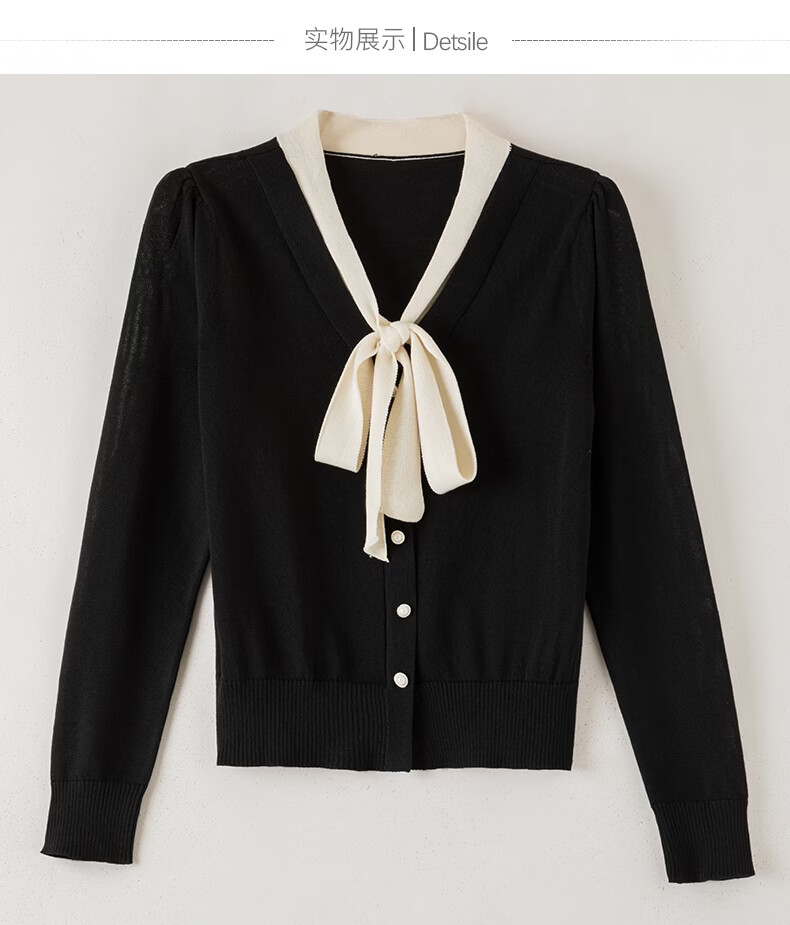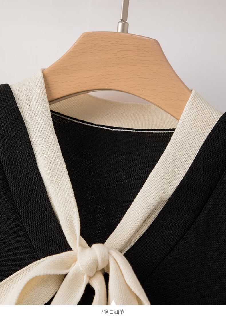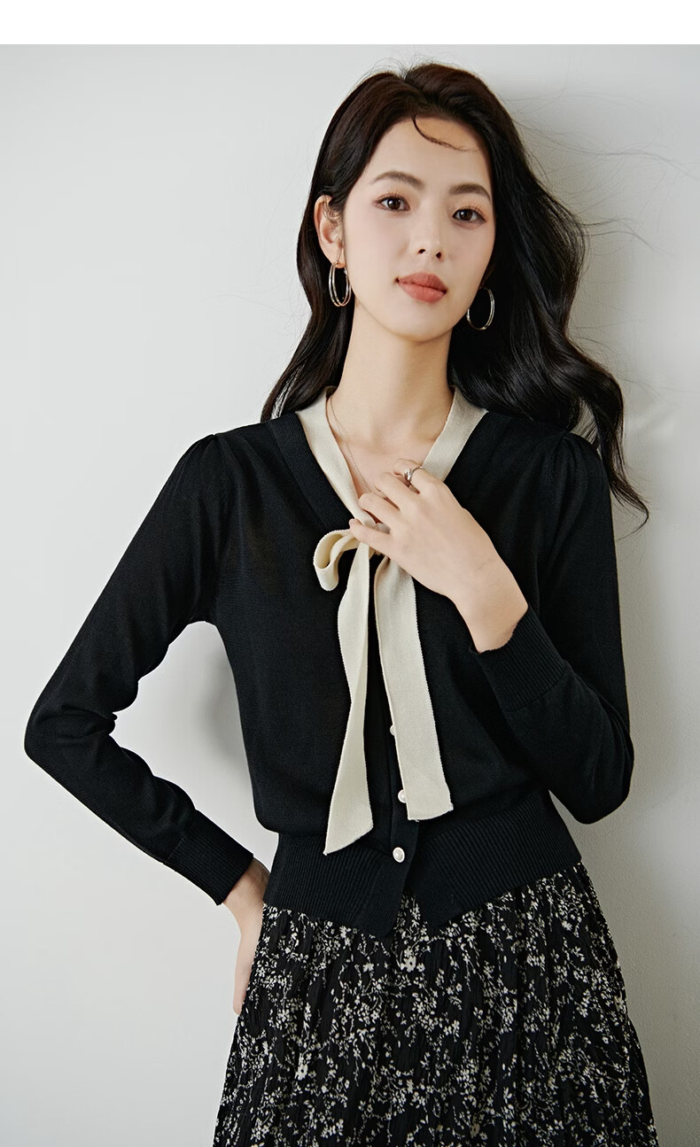 晚白【新品】2026年春款经典撞色V领毛衣莱赛尔亲肤透气舒适针织衫女 黑色 L