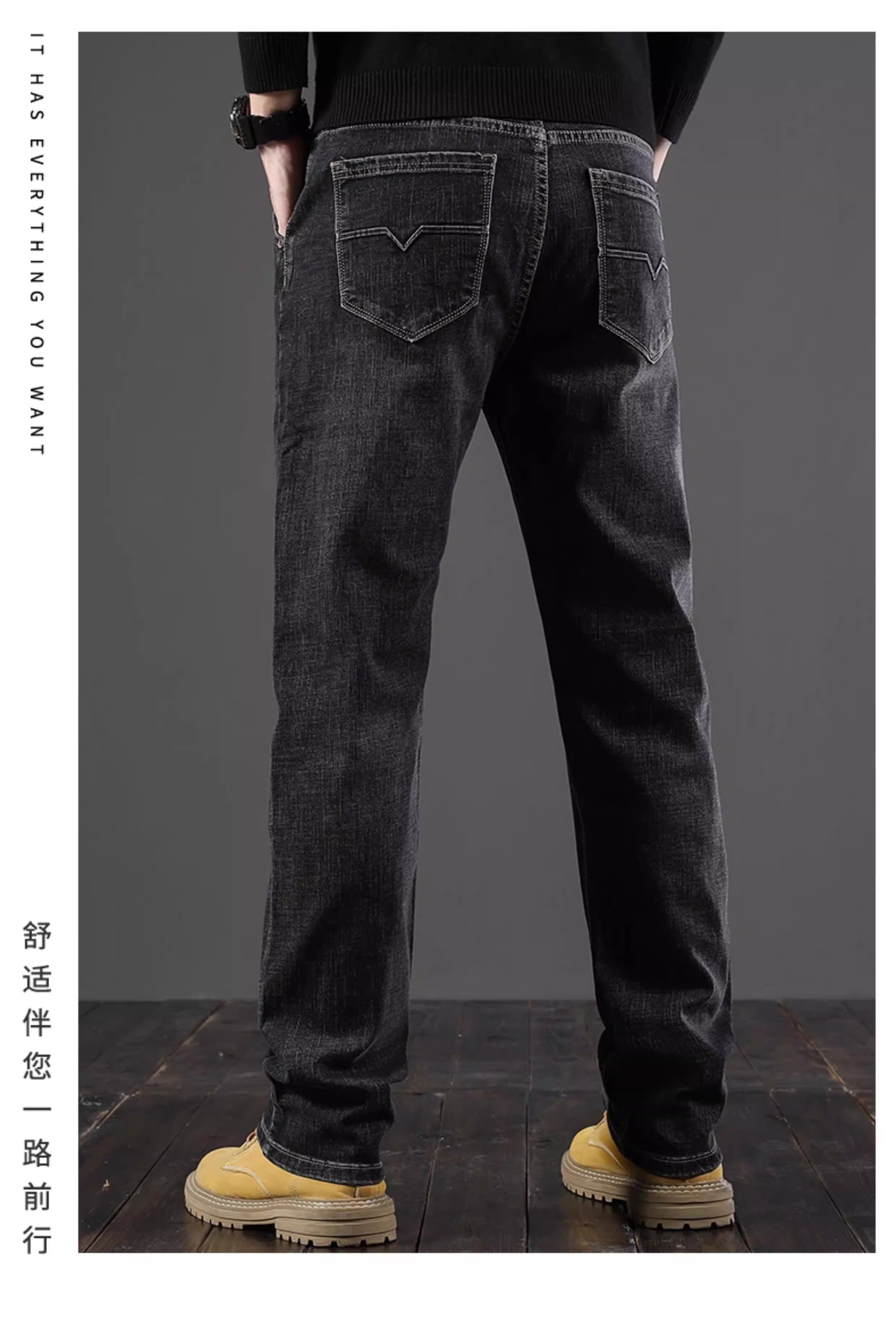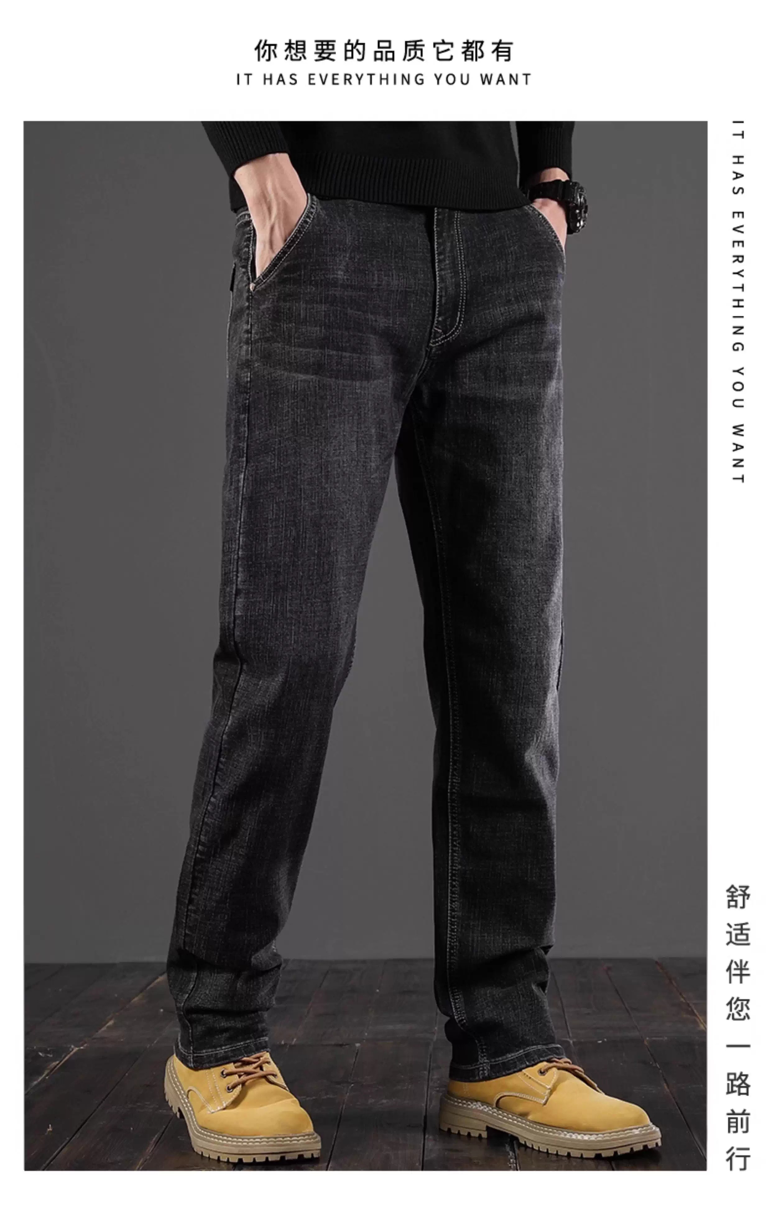 真维斯(Jeanswest)2026秋冬新款男士牛仔裤时尚宽松中年高端弹力商务斜插口袋秋冬款 045蓝色加绒 【加绒面料】 28 【建议90-100斤】