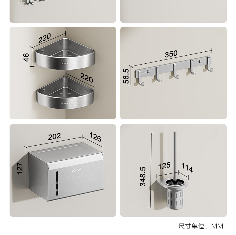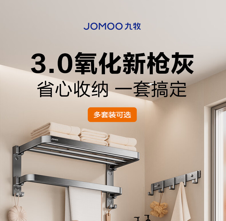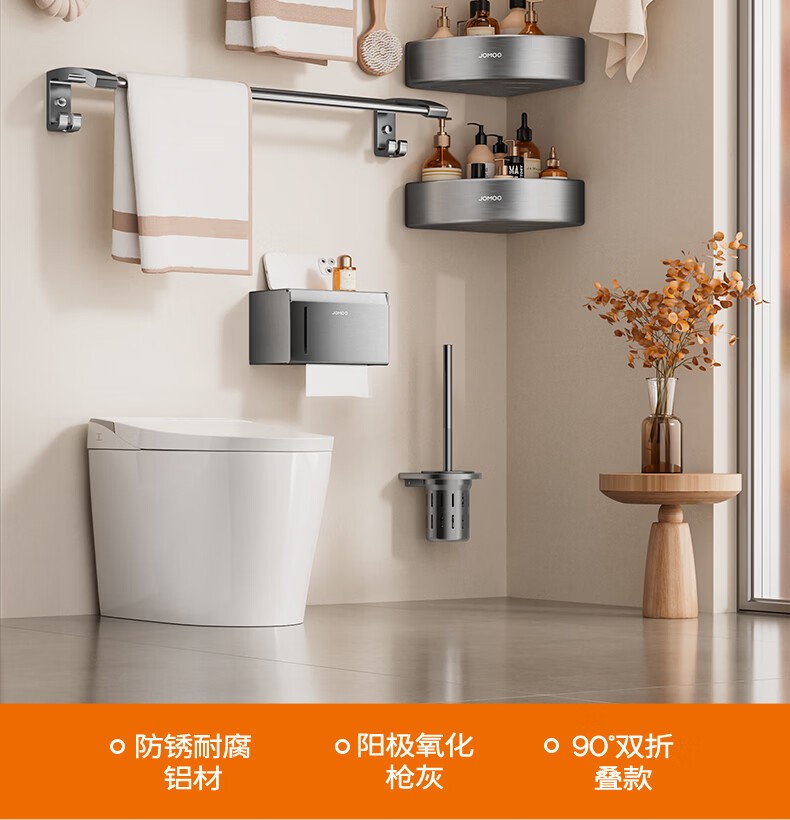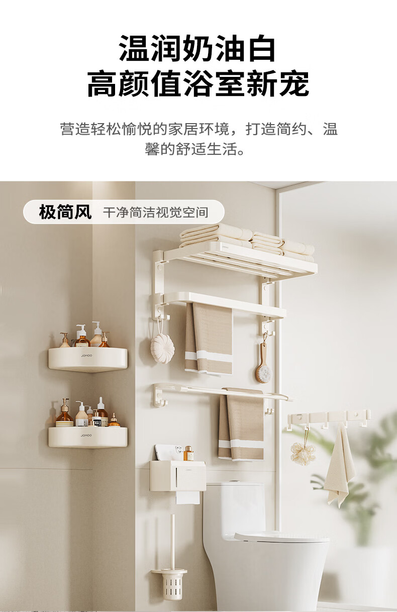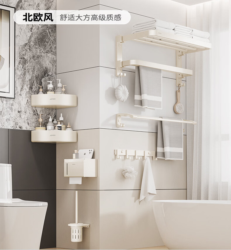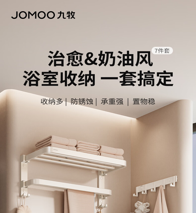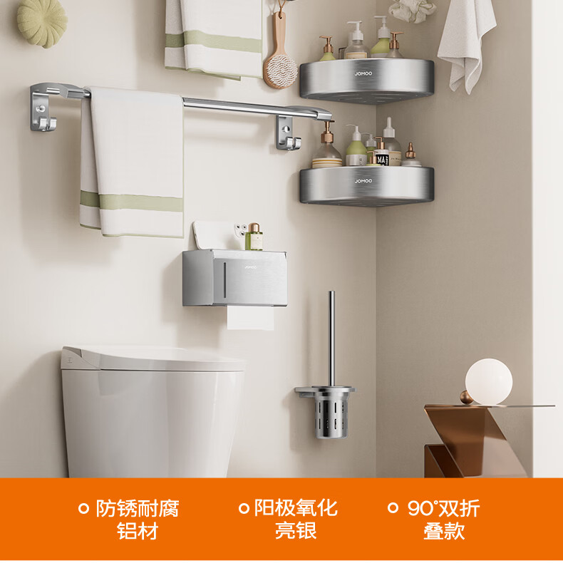 九牧(JOMOO)卫生间置物架双折叠奶白铝合金免打孔防锈耐腐浴室挂件93058系列 【热销大爆款】亮银色7件套