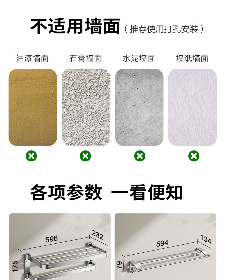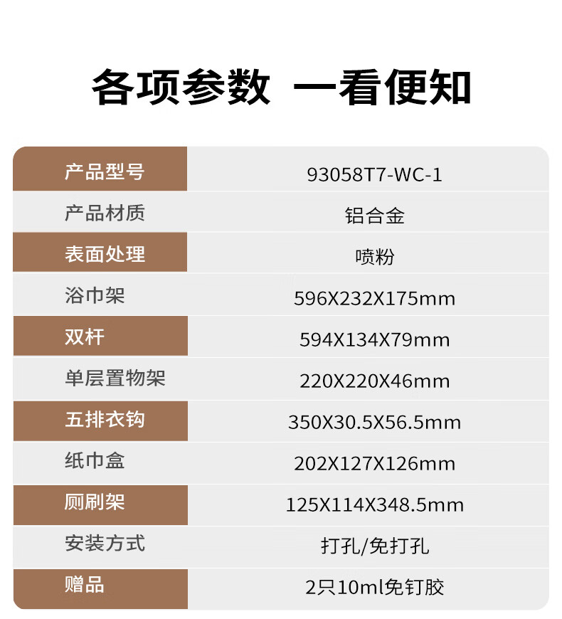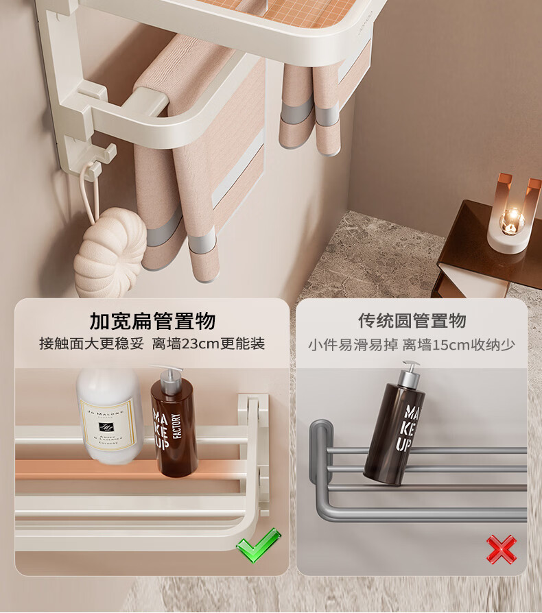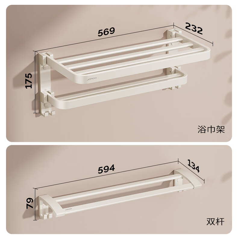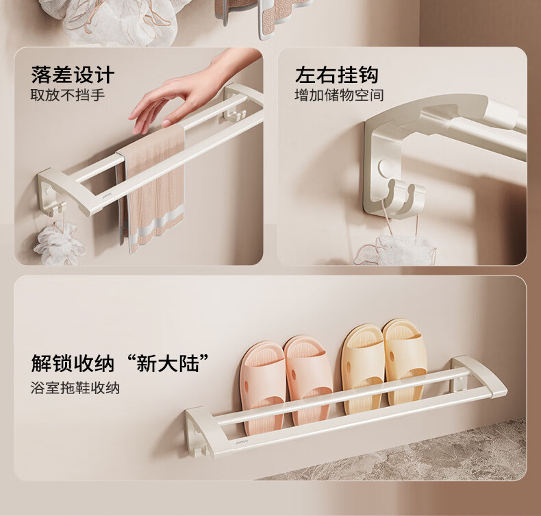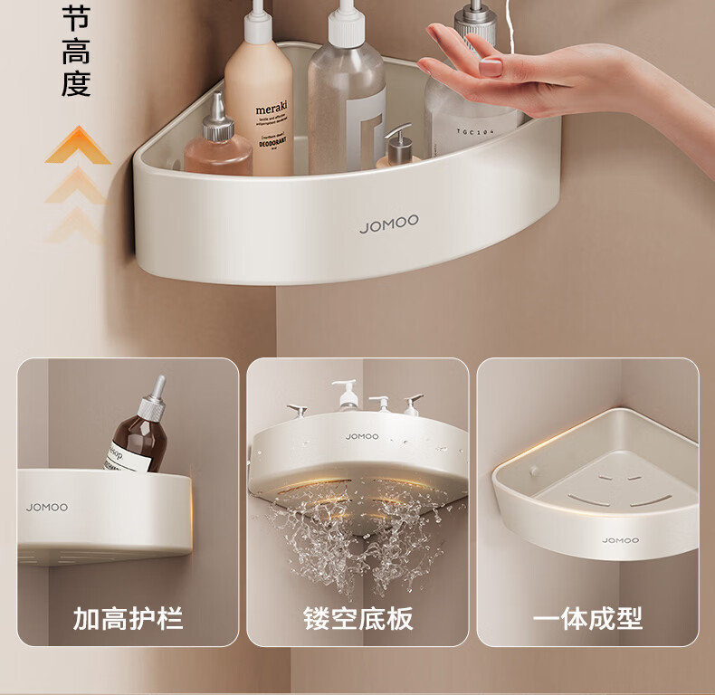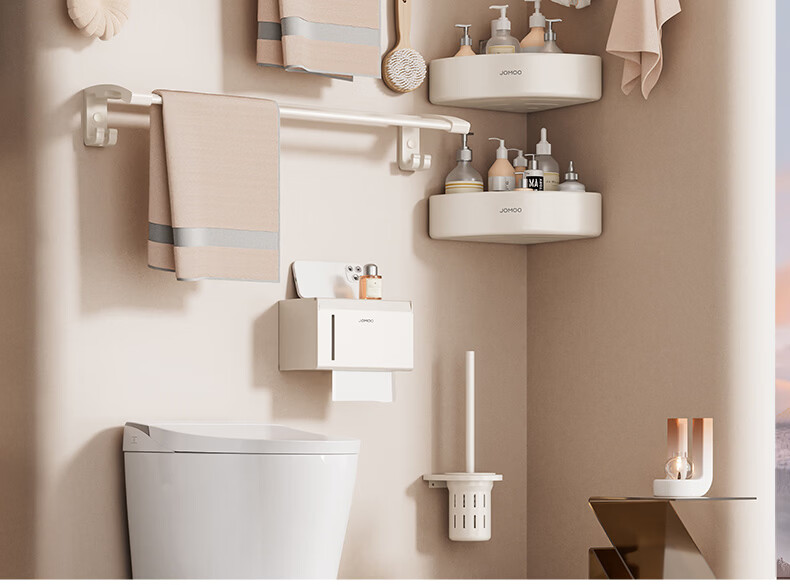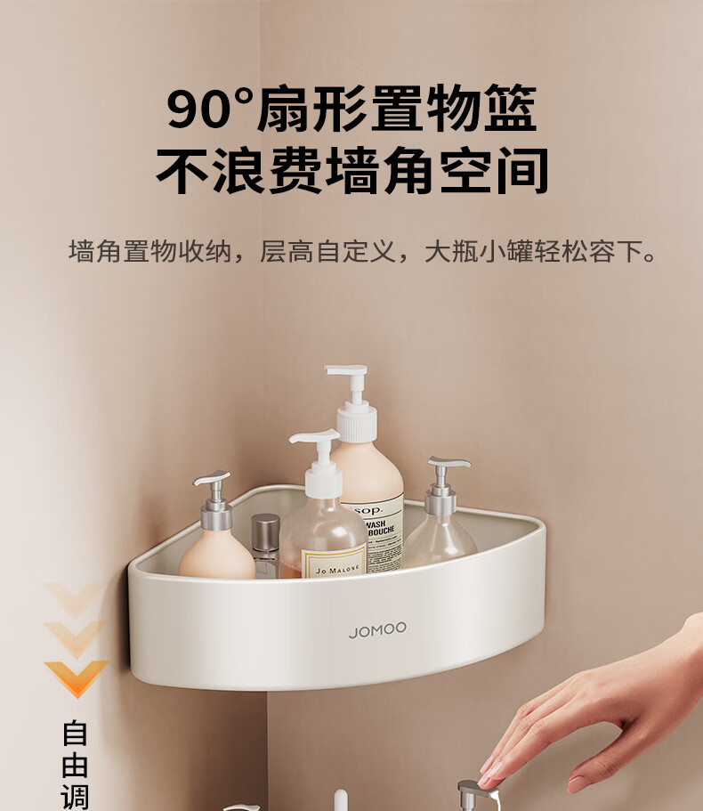九牧(JOMOO)卫生间置物架双折叠奶白铝合金免打孔防锈耐腐浴室挂件93058系列 【热销大爆款】亮银色7件套