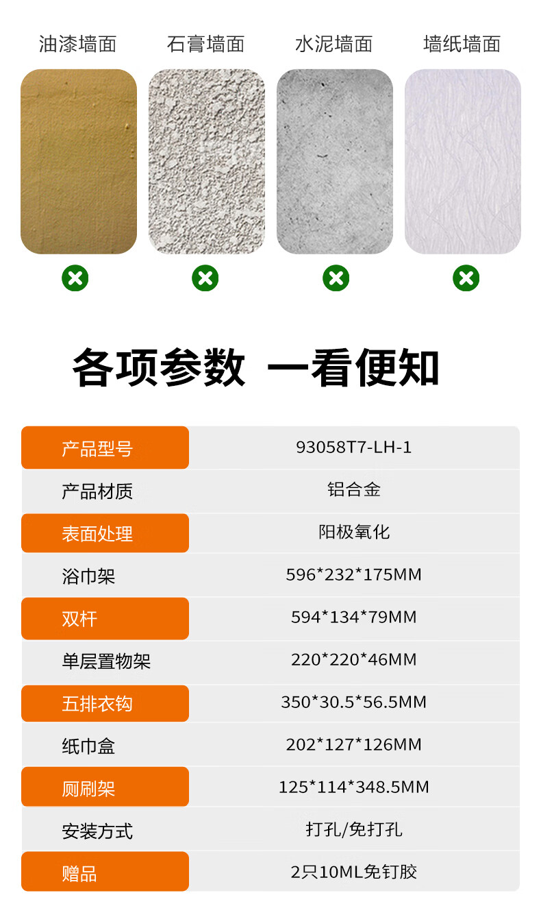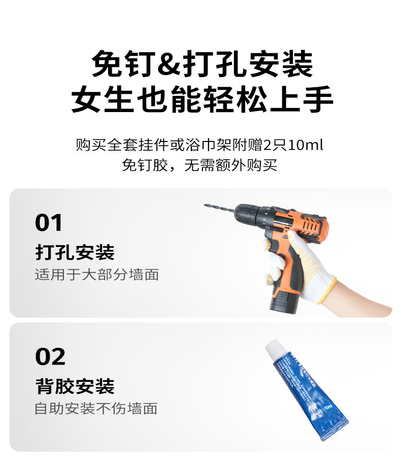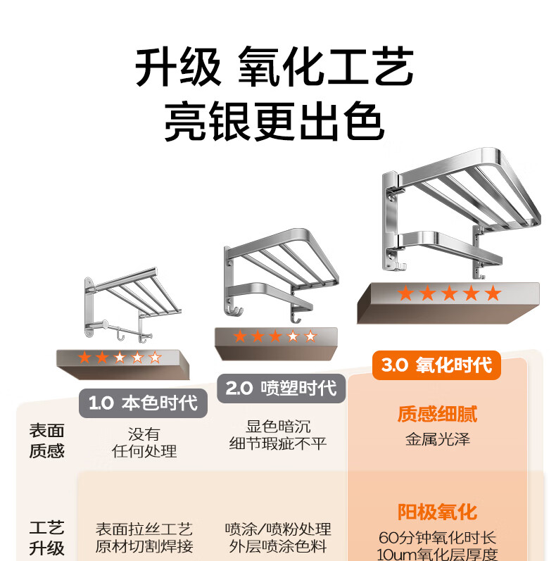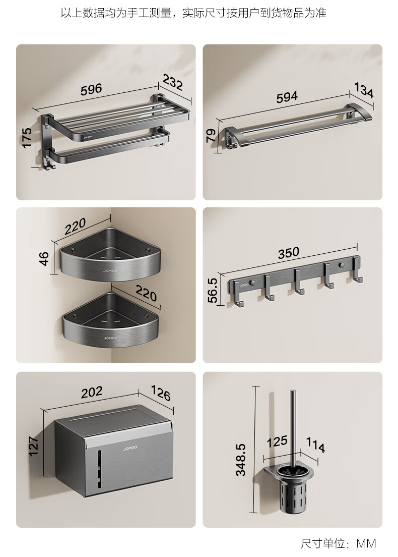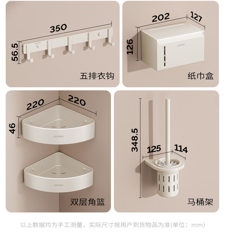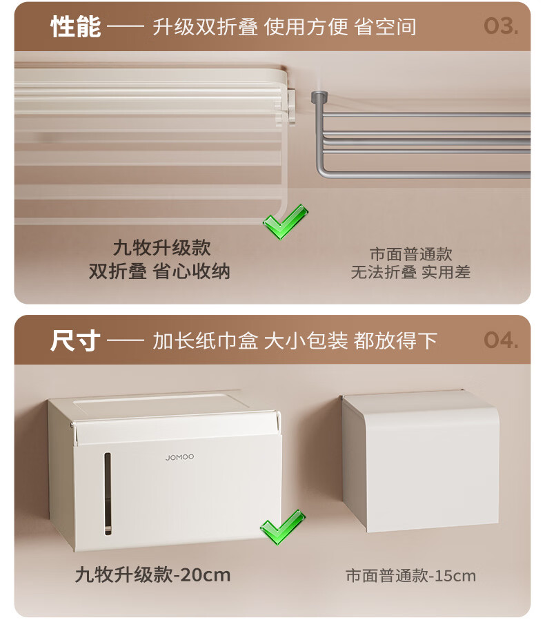 九牧(JOMOO)卫生间置物架双折叠奶白铝合金免打孔防锈耐腐浴室挂件93058系列 【热销大爆款】亮银色7件套