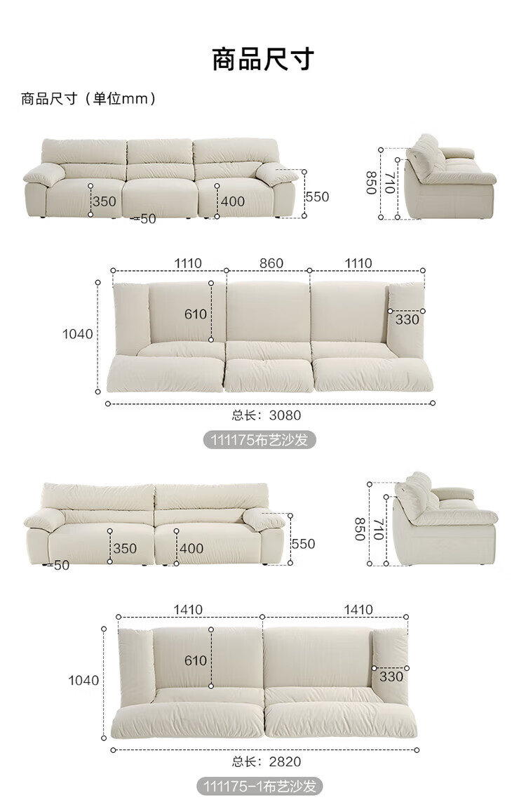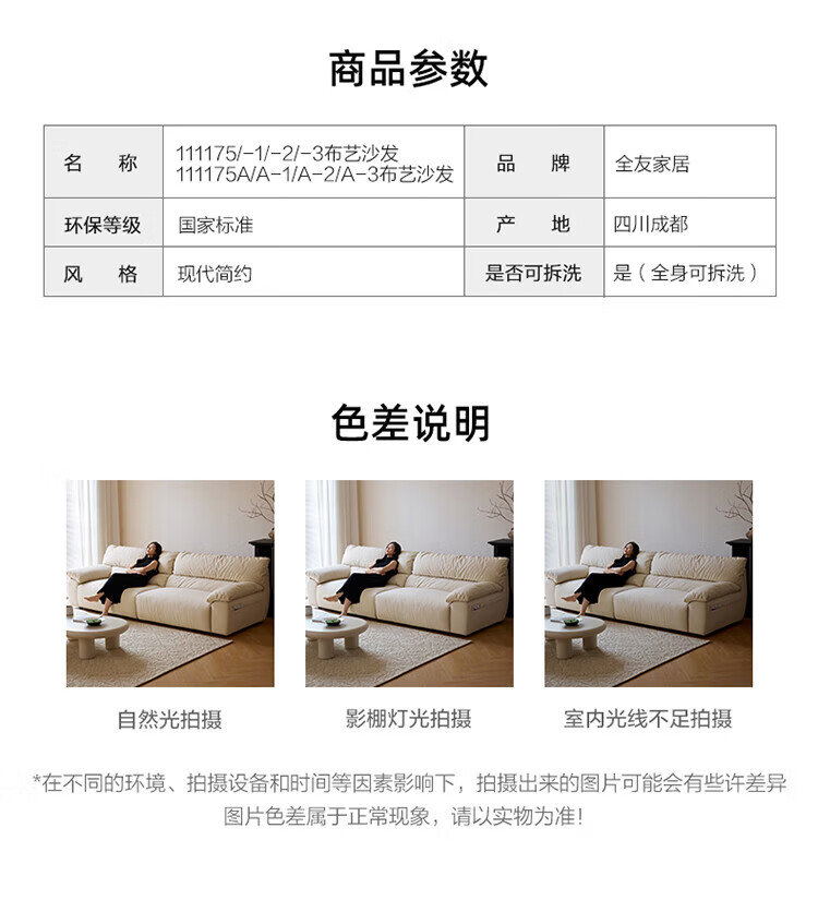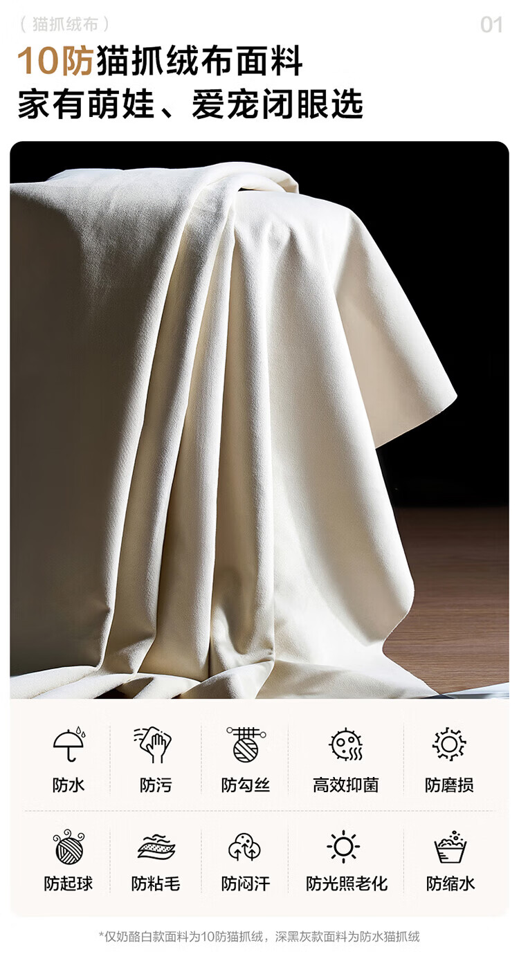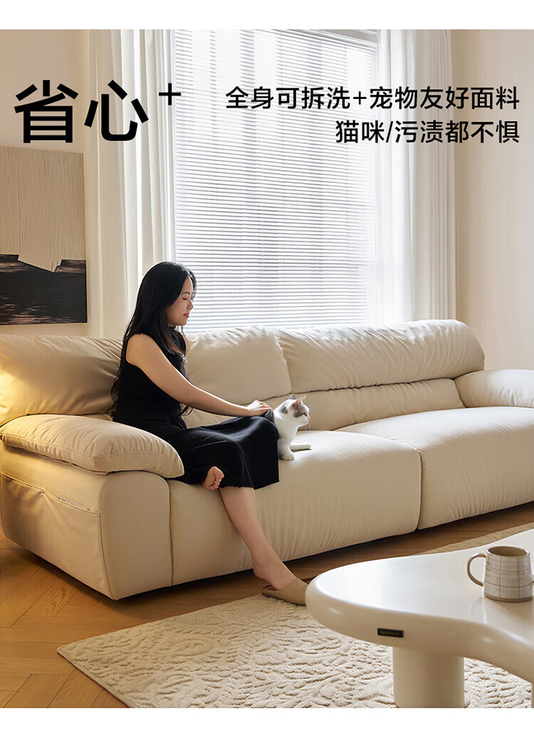 全友(QUANU)【迷瞪清仓货盘】轻奢风布艺沙发可拆洗家用客厅四人位直排沙发 10防猫抓绒|2.82m沙发