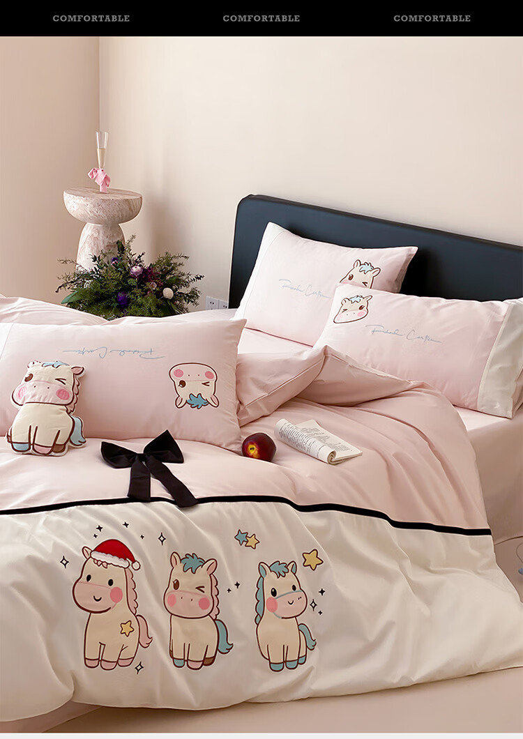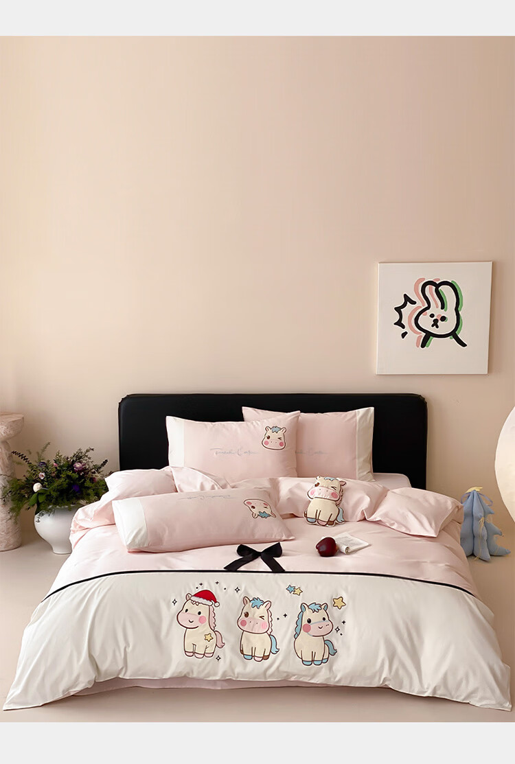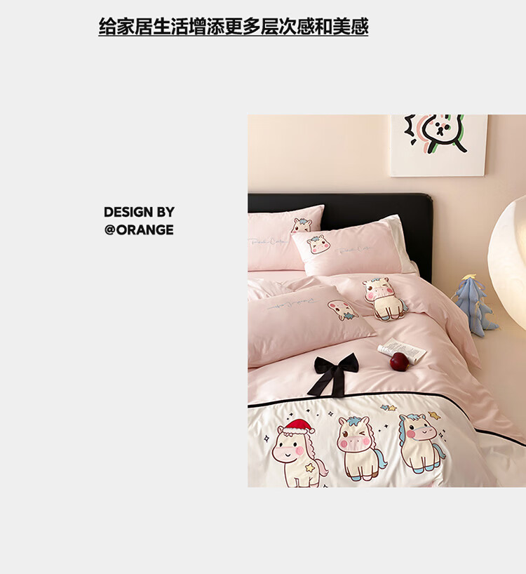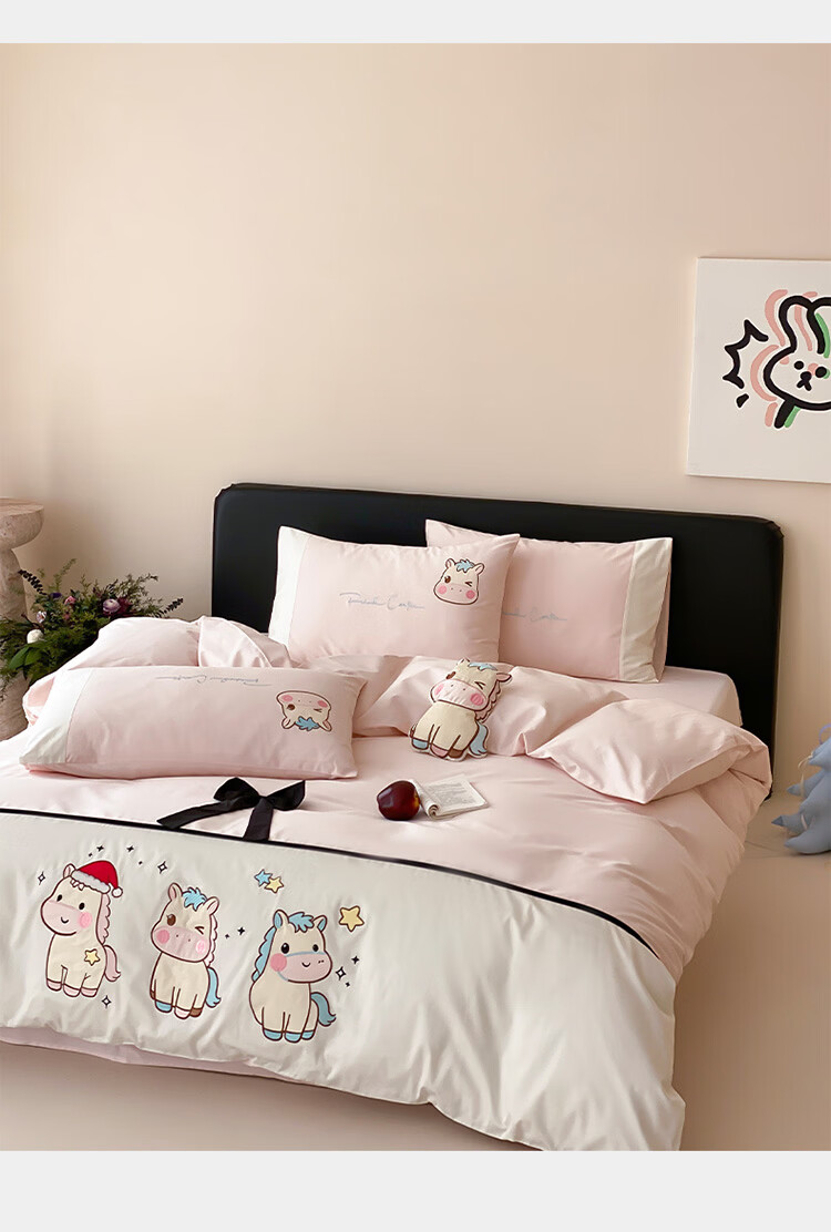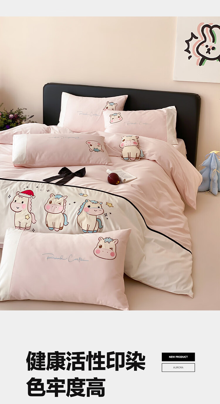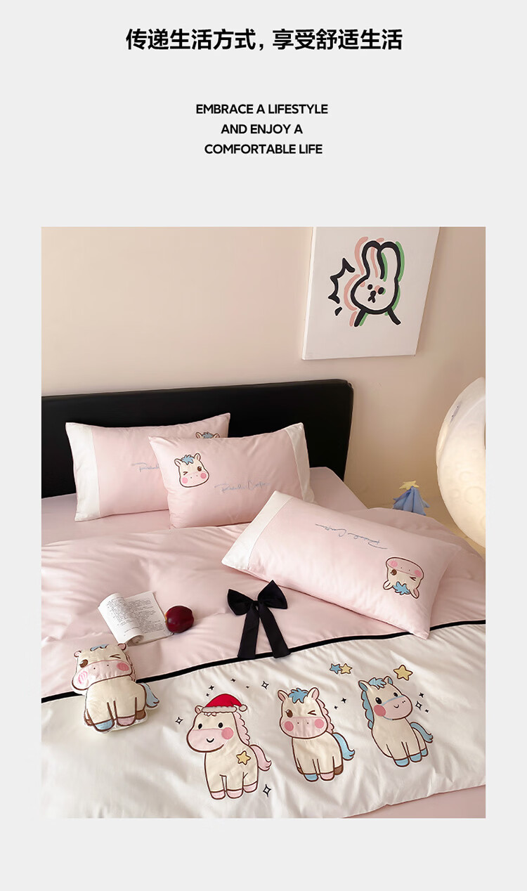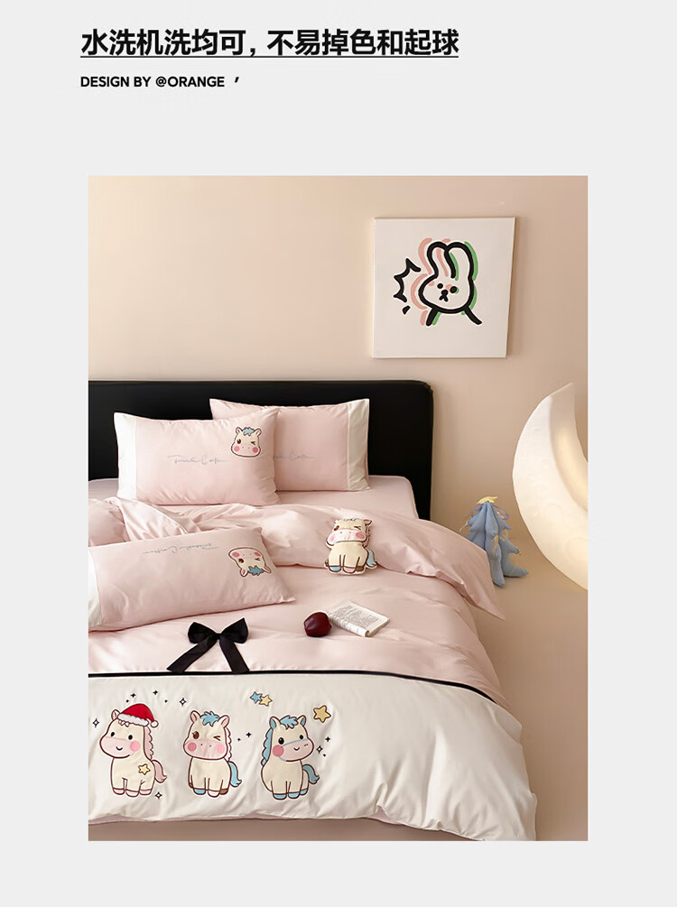 ROLAND LIVE长绒棉卡通四件套可爱风少女心被套床单全棉三件套四季床上用品 LLG 长绒棉套件-马上开心 1.2米床 床单款 【被套160*210cm】