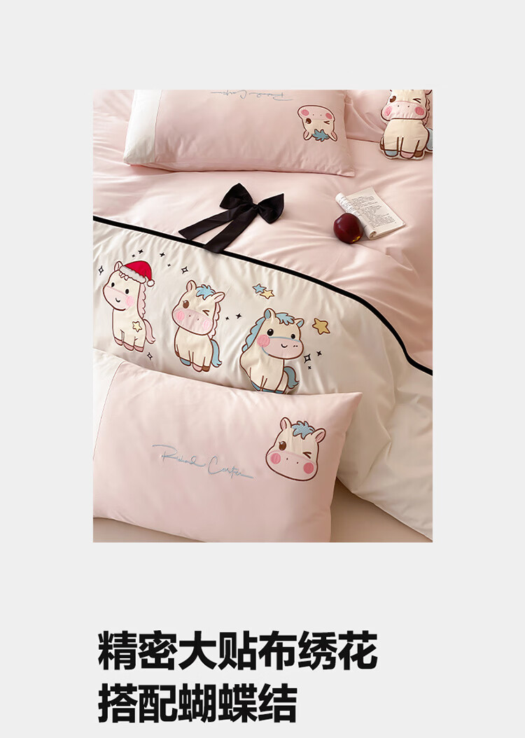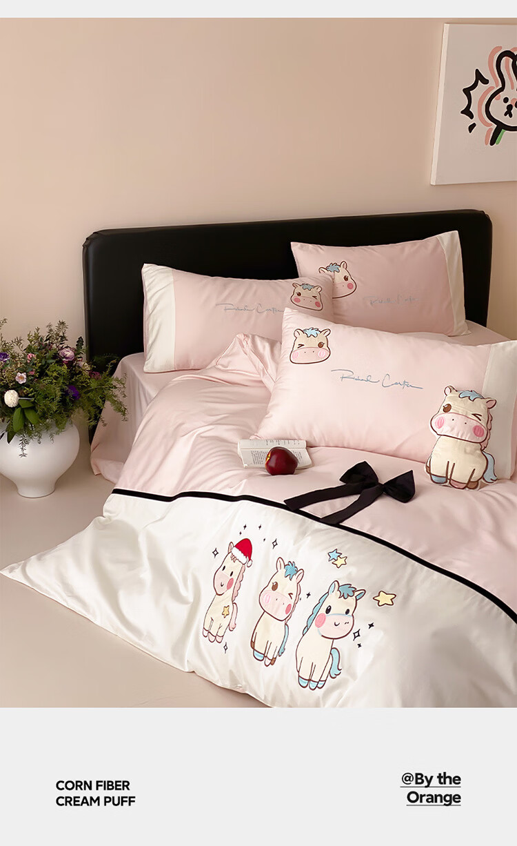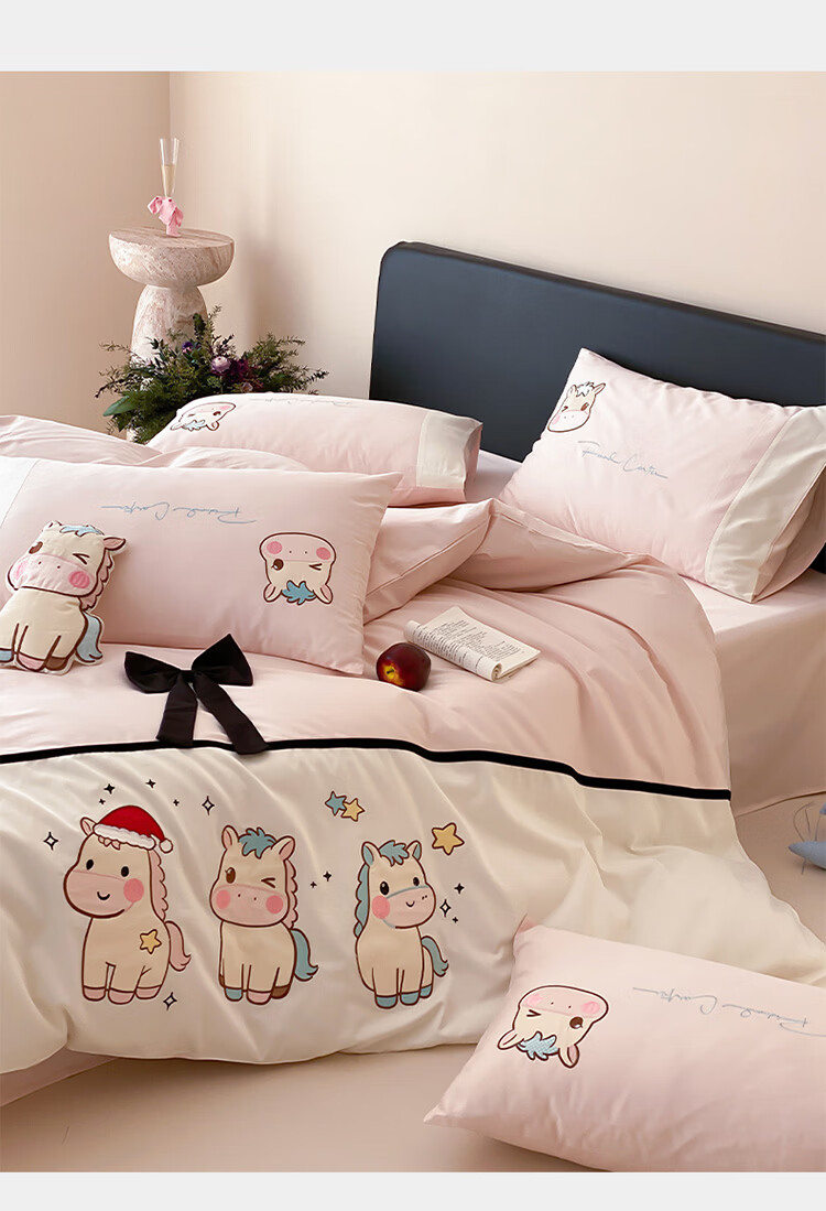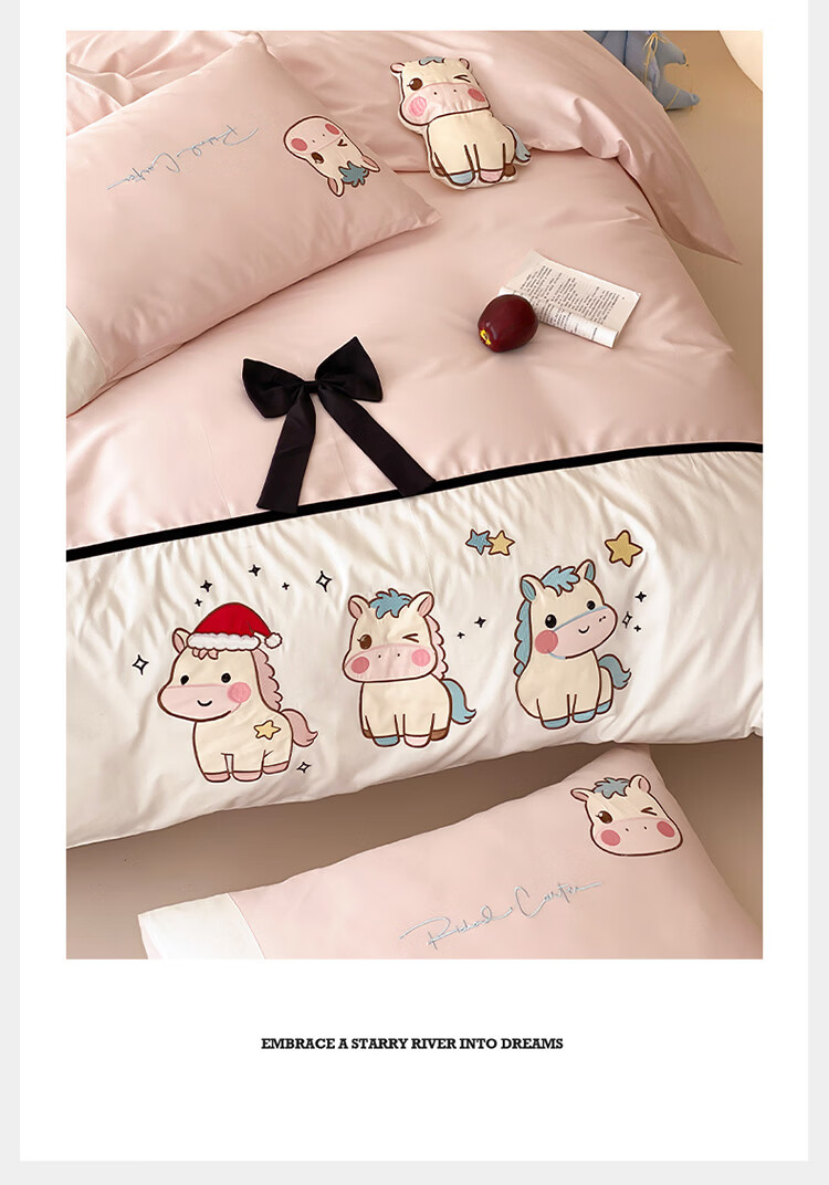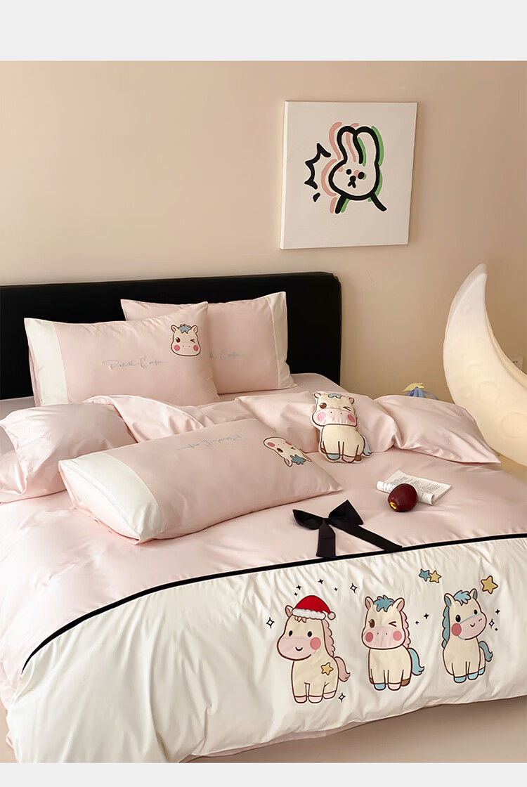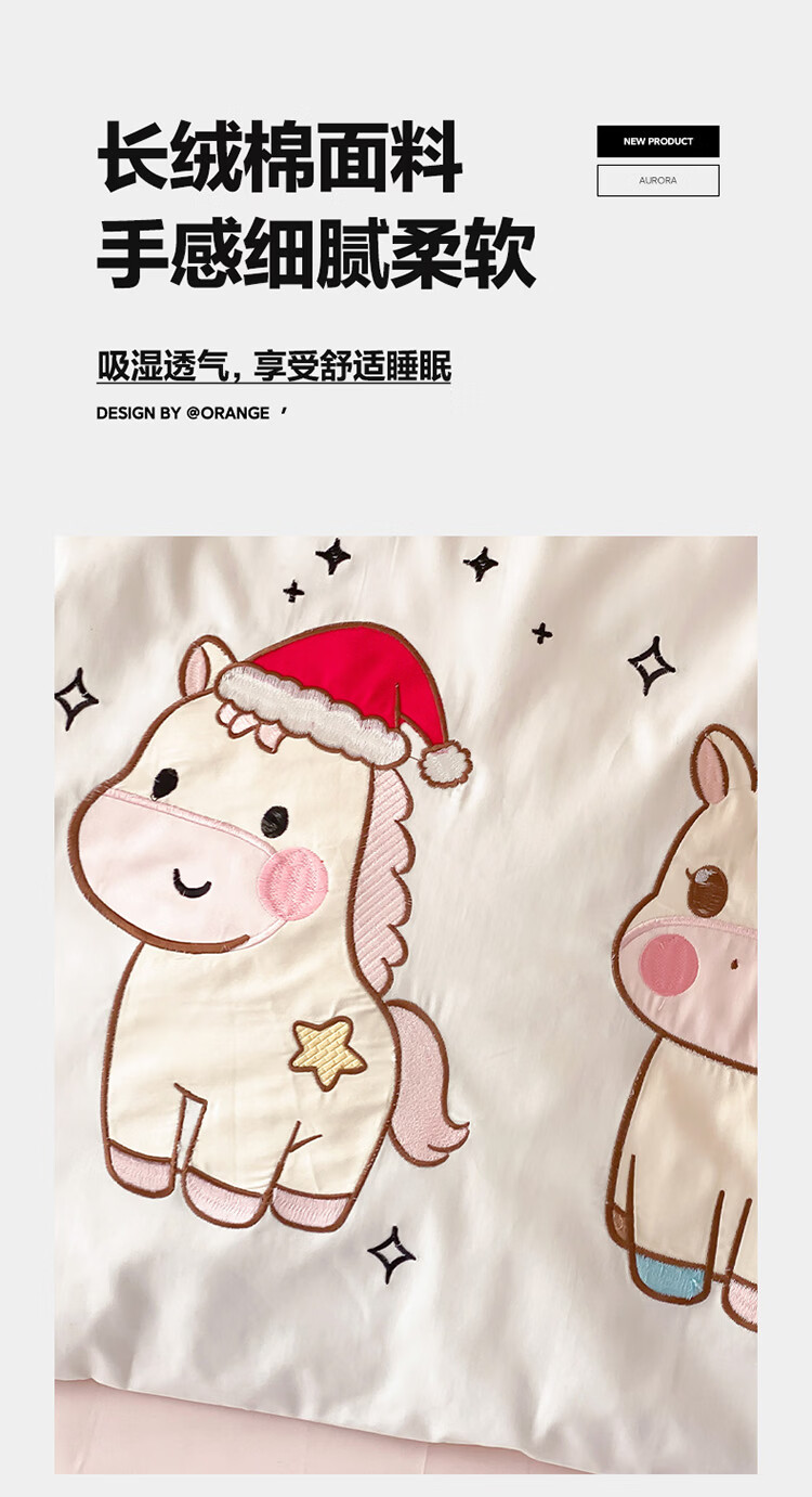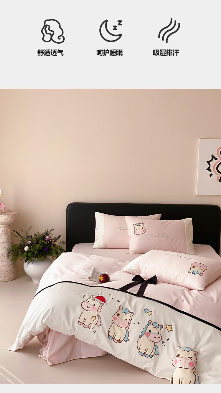 ROLAND LIVE长绒棉卡通四件套可爱风少女心被套床单全棉三件套四季床上用品 LLG 长绒棉套件-马上开心 1.2米床 床单款 【被套160*210cm】