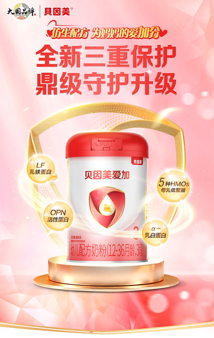 贝因美(Beingmate)大国品牌爱加12-36月幼儿奶粉3段800g*6 含乳铁蛋白+HMO+OPN