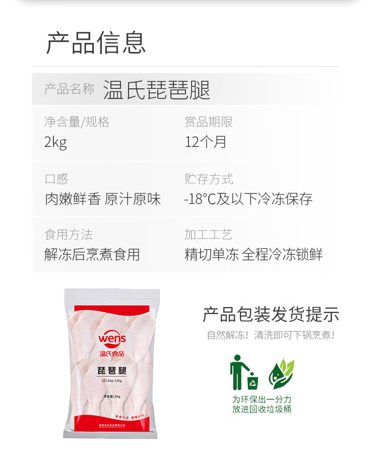 温氏鸡腿4斤 鸡肉冷冻琵琶腿大鸡腿奥尔良鸡腿烧烤食材 减脂早餐食材